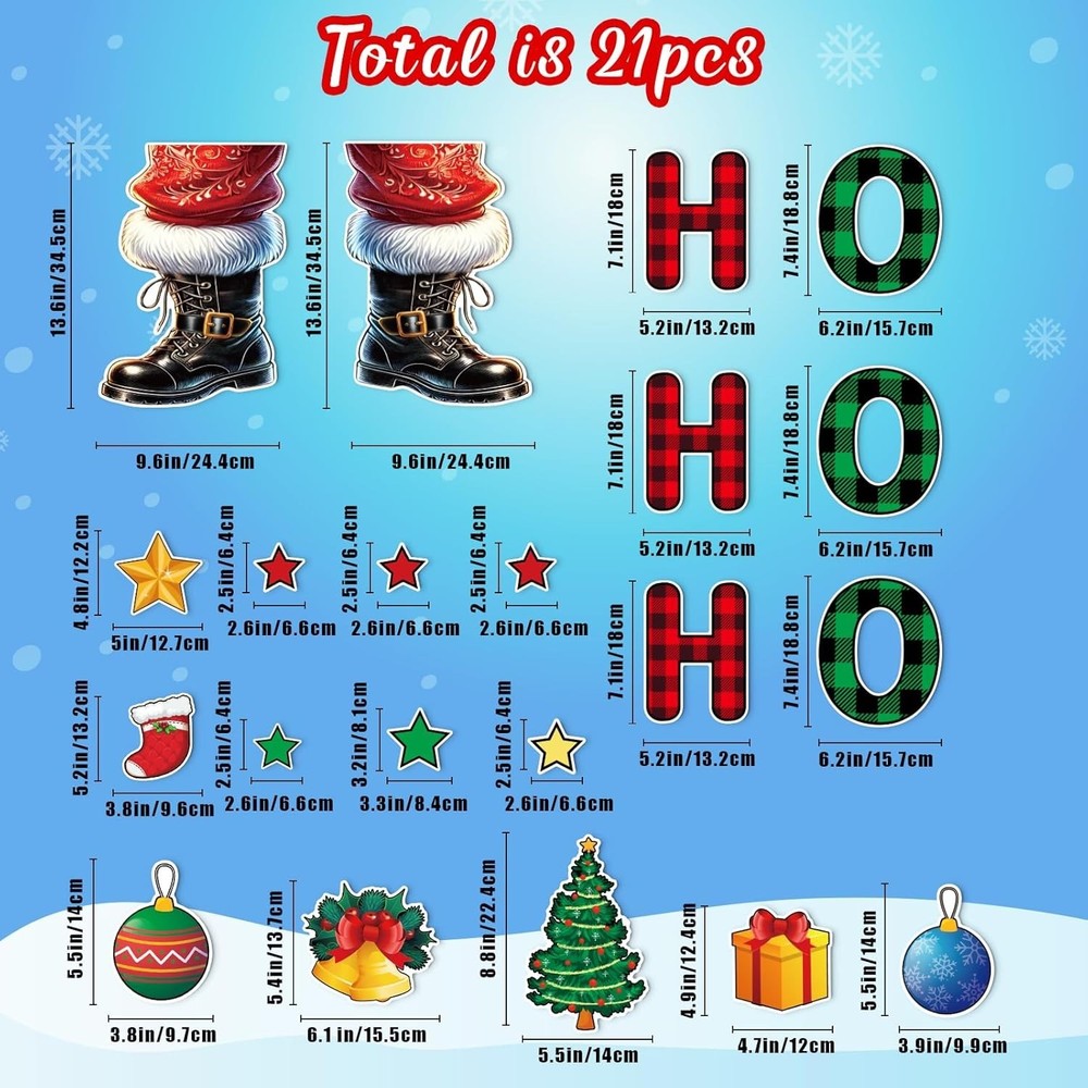 21PCS Christmas Garage Door Decorations Magnets - Santa Merry Xmas Holiday Refrigerator Fridge Kitchen Decor Christmas garage door decorations: You will get 21pcs christmas magnets, including 2 santa clauses's legs, 1 sock, 2 christmas balls, 3 letters "H", 3 letters "O" and etc Large size to visibly cover your garage door: Santa leg is "", letter H is "", letter O is "" Strong magnetic hold: They are made of festive printing and magnetic back. They are easily removable and will not hurt the surface of your garage Directly adsorb on any metal or magnetic surface: They are adjustable and removable, leaving no residue. Super cute and festive for the holidays. Share holiday joys to your neighbors with these holiday magnet: Great for your garage door, refrigerator, metal front door, dry eraser board, cabinets&more. Dress up your garage door with these cute magnets to make it more spirited this winter Christmas Magnets Garage Door Decorations Christmas Magnets Add to Cart Christmas Magnets Add to Cart Christmas Magnets Add to Cart Christmas Magnets Add to Cart Christmas Magnets Add to Cart Christmas Magnets Add to Cart Christmas Magnets Add to Cart Customer Reviews out of 5 stars 551 out of 5 stars 587 out of 5 stars 1,090 out of 5 stars 1,090 out of 5 stars 1,090 out of 5 stars 1,090 out of 5 stars 1,090 Price $$ $$ $$ $$ $$ $$ $$