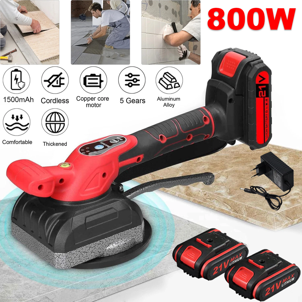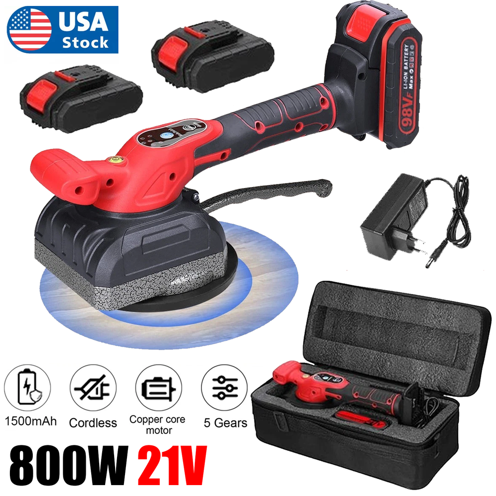 Features: Comes with shock-absorbing rubber coated handle and auxiliary handle, convenient for tile positioning, anti slip design, effortless. The use of bubble level ensures that the tiling machine is placed horizontally, improving accuracy and work efficiency. 5 vibration levels for you to adjust according to the size and thickness of the tiles. Simply press the power button to change the speed. Can adsorb on the surface of ceramic tiles made of different materials, such as marble, solid wood panels, cement walls, gypsum boards, and cream tiles. Suitable for individuals, families, or engineering teams, it can be widely used for home decoration, kitchen renovation, bathroom renovation, etc. Specification: Color: Black Speed Adjustment:5 MODES Package included: 1 X Tile Tiling Machine 2X 21V Battery