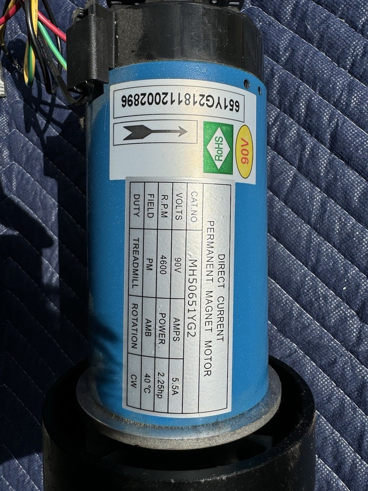 DIRECT CURRENT PERMANENT MAGNET MOTOR CAT. NO MH50651YG2 VOLTS 90V AMPS 5.5A R.P.M 4600 - POWER 2.25hp FIELD PM AMB 40 °C DUTY TREADMILL ROTATION CW Used Tested prior to disassembly