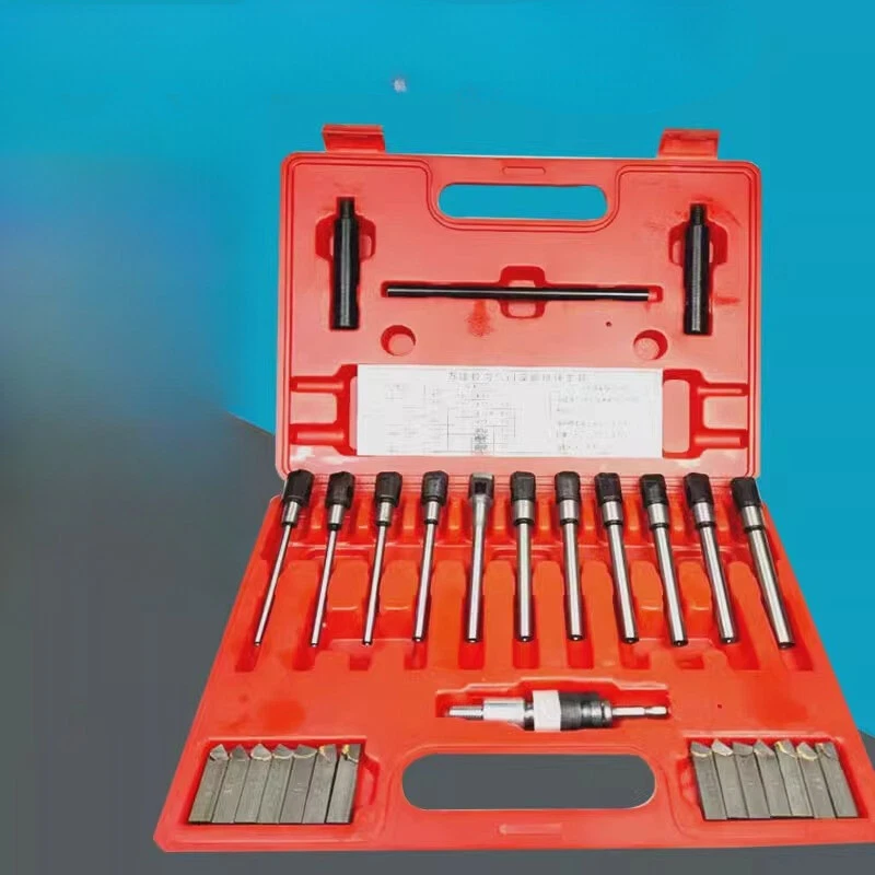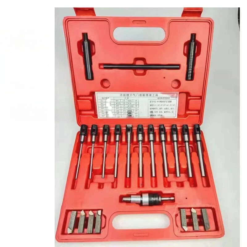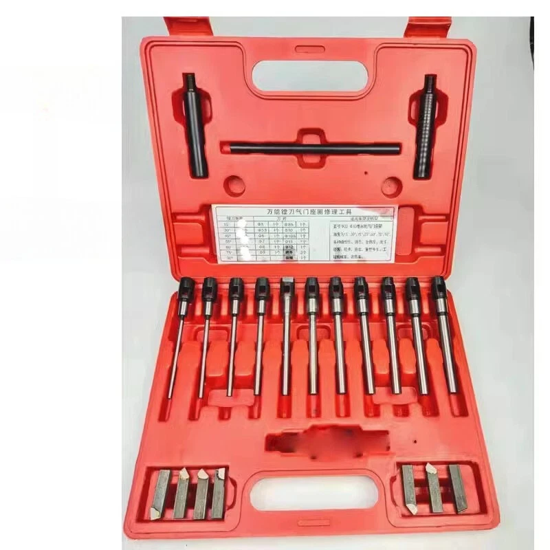 22-63mm Dia. Valve Seat Single Plane Cutting Tools Universal Boring Cutter Valve Repair Tools Description: This product is the valve seat cutter and boring Cutters. Seat cutters are almost standard equipment in any machine shop that services four-stroke engines - whether the work is small engine repair, automotive high performance,routine motorcycle maintenance, or heavy duty engine rebuilding. We believe that our product has so popular for one simple reason: it offers value. It's extremely easy to use, is accurate enough to be the tool of choice for high performance engine work, and it doesn't require a huge investment. Specification: Number of pieces: 28 Suitable for: Diameter 22-63mm valve Cutter Blade Angle: 15°, 30°, 45°, 55°, 60°, 75°, 90° Tool bar diameter: 5MM, 5.5MM, 6MM, 7MM, 8MM, 9MM, 9.5MM, 10MM, 10.5MM, 11MM, 12MM Weight: 3KG Include: 14 x Cutter Blade 11 x Cutter arbor 2 x Handle 1 x Lever