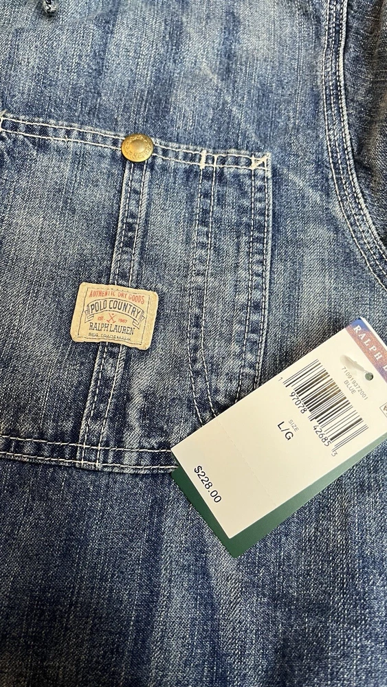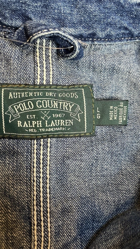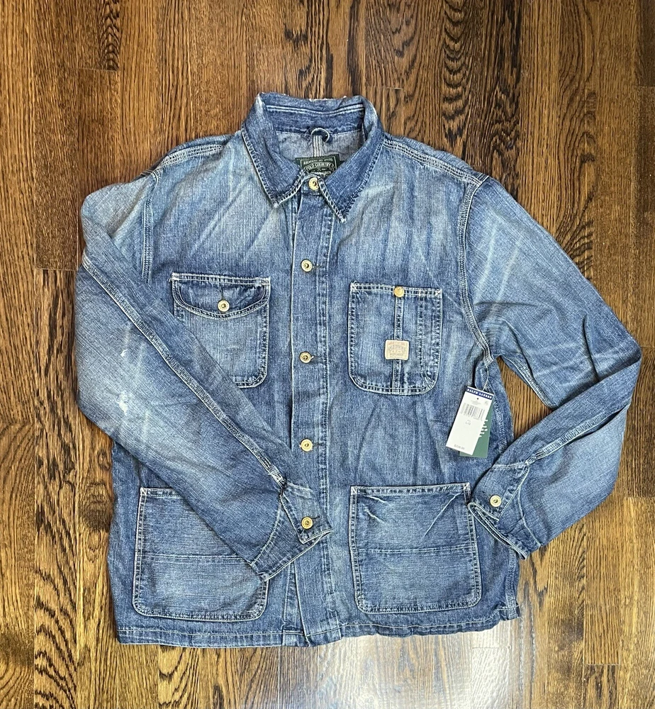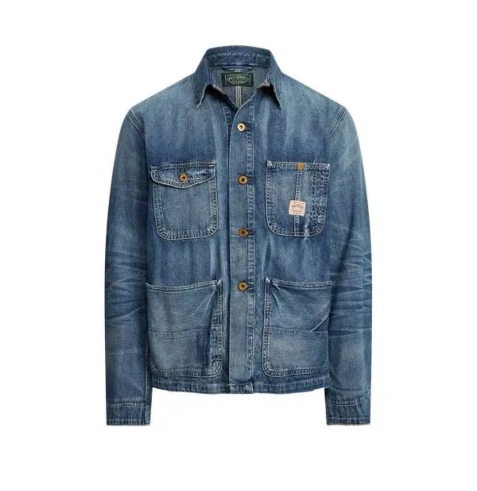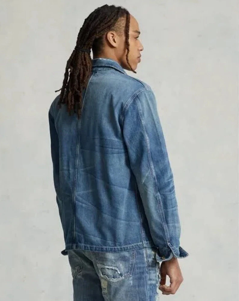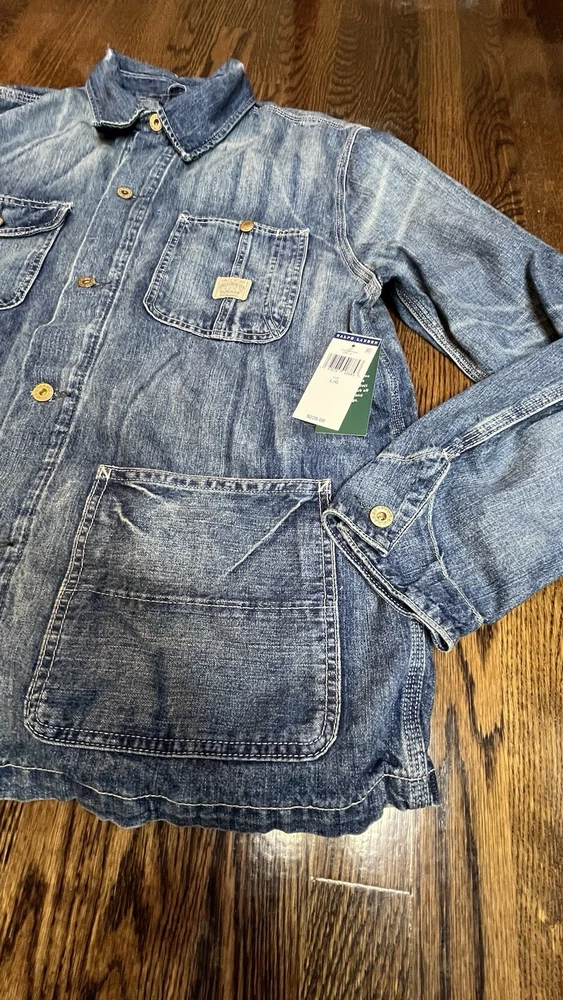 $228 Polo Ralph Lauren Denim Chore Jacket - Richland Men’s Size Large Trucker The jacket is made of high-quality denim material and comes in a stylish blue color. It is a regular fit and mid-length, making it suitable for various occasions such as travel, casual wear, and workwear. The jacket is part of the Polo Denim & Supply product line and is designed by Ralph Lauren Polo D & S. It is a great addition to any wardrobe and is sure to make a statement.