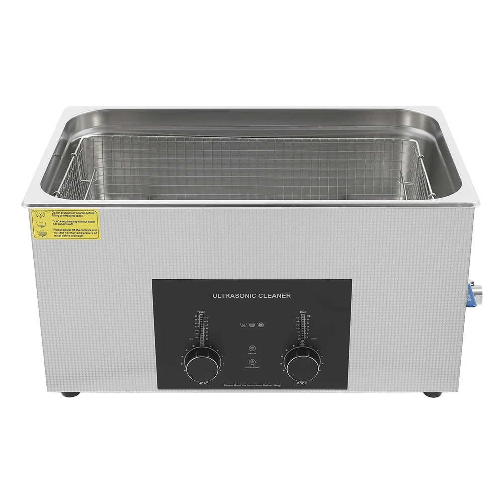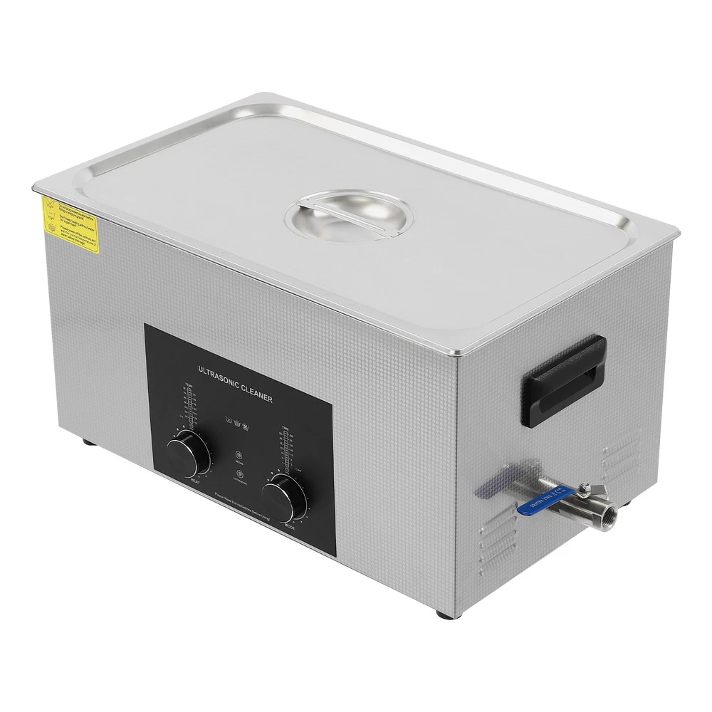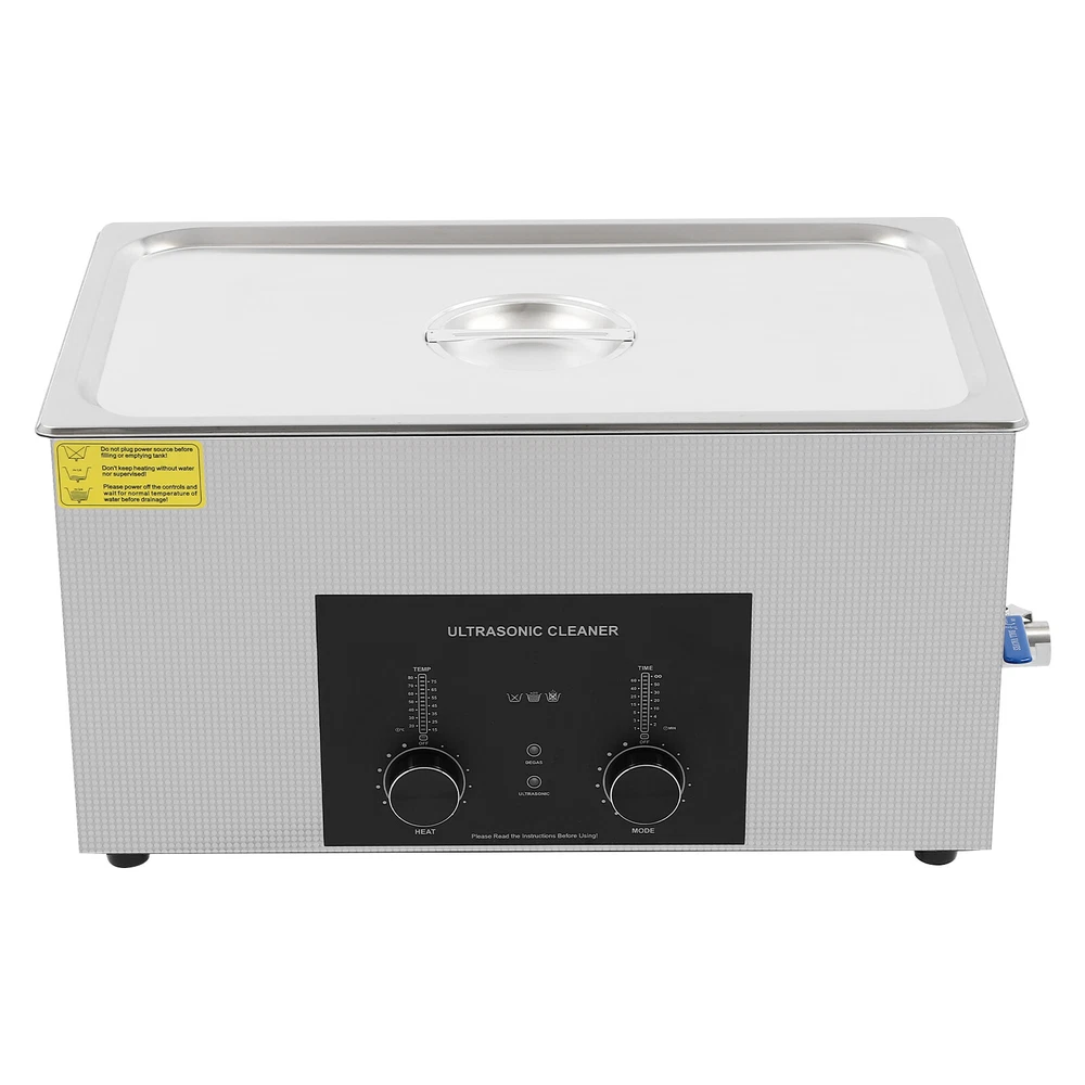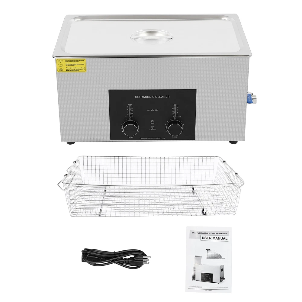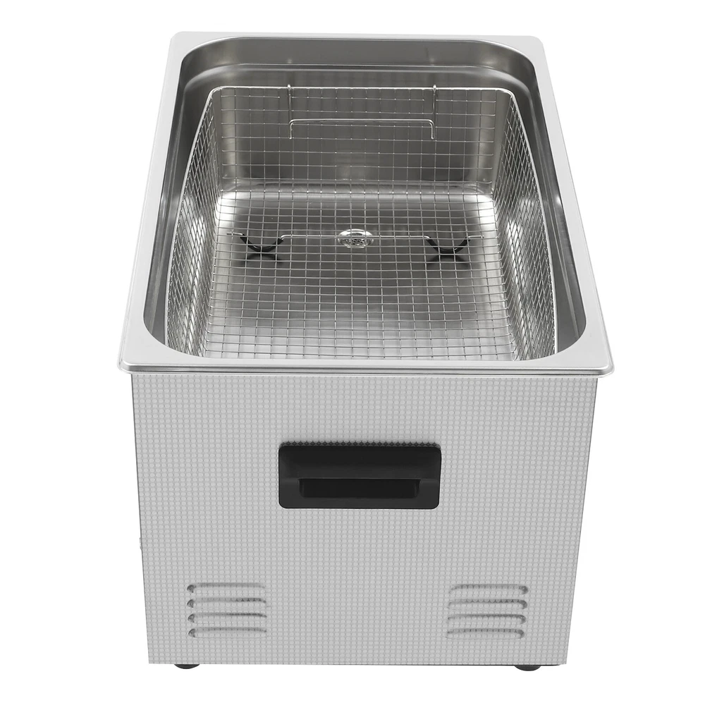 Specifications Color: Silver Style: Modern Shape: Rectangular Material: 304 Stainless Steel, 201 Stainless Steel Mount Type: Countertop Assembly Required: Yes Plug Type: US Standard Power Supply: AC100-120V, 60Hz Ultrasonic Frequency: 40Khz Ultrasonic Power: 480W Heating Power: 500W Power Cord Length: 1.5m/4.92ft Temperature Range: 15-80℃/59-176℉ Time Setting Range: 1-60min Inner Capacity: 22L/5.81Gal Effective Capacity: 17.5L/4.62Gal Drain Valve Diameter: 1/2" Product Inner Size: 50*30*15cm/19.69*11.81*5.9in Cleaning Basket Size: 46.5*26.5*8.7cm/18.3*10.43*3.43in Packaging Size: 66*42*35.5cm/25.98*16.54*13.98in Gross Weight: 12.47kg/27.49lbs Net Weight: 10.4kg/22.93lbs Package Included 1* Ultrasonic Cleaning Machine 1* Cleaning Basket 1* Power Cord 1* English Specifications Color: Silver Style: Modern Shape: Rectangular Material: 304 Stainless Steel, 201 Stainless Steel Mount Type: Countertop Assembly Required: Yes Plug Type: US Standard Power Supply: AC100-120V, 60Hz Ultrasonic Frequency: 40Khz Ultrasonic Power: 480W Heating Power: 500W Power Cord Length: 1.5m/4.92ft Temperature Range: 15-80℃/59-176℉ Time Setting Range: 1-60min Inner Capacity: 22L/5.81Gal Effective Capacity: 17.5L/4.62Gal Drain Valve Diameter: 1/2" Product Inner Size: 50*30*15cm/19.69*11.81*5.9in Cleaning Basket Size: 46.5*26.5*8.7cm/18.3*10.43*3.43in Packaging Size: 66*42*35.5cm/25.98*16.54*13.98in Gross Weight: 12.47kg/27.49lbs Net Weight: 10.4kg/22.93lbs Package Included 1* Ultrasonic Cleaning Machine 1* Cleaning Basket 1* Power Cord 1* English Manual Description This ultrasonic cleaner's high-frequency ultrasonic waves can delve into microscopic crevices, breaking down grease and stains adhering to jewelry, spectacles, tableware, braces, and other miniature, intricate items. It features a knob-type timer and temperature control design for a simple operation that simplifies cleaning tasks, bringing technological convenience to your daily life. Key Features Quality and Reliability : The product is made of 304 stainless steel and 201 stainless steel, which is resistant to rust, corrosion, and deformation, giving the product a long service life and excellent working performance. Efficient Cleaning: Different from other cleaning technologies, 40Khz ultrasonic technology can remove dirt on the surface of objects, and penetrate blind holes, and cracks, thus thoroughly cleaning the dirt that cannot be cleaned by hand without damaging your belongings. Moreover, the degas mode can eliminate ultrasonic fatigue and improve cleaning results. Adjustable Design: The product comes with knob-type temperature (59-176℉) and time control (1-60min) to meet the cleaning needs of different objects. Large Capacity: The 4.62gal effective capacity and large cleaning basket (18.3*10.43*3.43 inches) can easily hold and clean most of your watches, jewelry, and more. Efficient Heat Dissipation: The heat dissipation windows and the powerful cooling fan can accelerate heat dissipation, reduce failure rate, and increase service life. Safety Guarantee: The product is equipped with a fuse, when the circuit is overloaded, it will automatically fuse to stop the power supply, avoiding damage to the machine and injury to you. Simple Operation: Equipped with an intuitive and user-friendly operational interface, this product simplifies activation and adjustment of cleaning time and temperature settings, making it accessible to you. Easy to Clean: The fingerprint-resistant stainless steel shell, simple structure, and smooth surface make it more convenient for daily cleaning. Details Cleaning Basket: It can reduce scratches during cleaning to better protect your valuables items, and can also be used to drip-dry items. Side Handles: They make it convenient to move the machine. Drain Valve: It allows you to drain standing water and cleaning fluids more easily. Top Lid: It can well seal the machine to reduce heat loss and noise. Meanwhile, the handle on the top allows you to easily pick up the lid. Sturdy Feet: They prevent the product from sliding and enhance stability during operation. Application It can be used in homes, laboratories, the jewelry industry, industry, electrical industry, hospitals, and more. It is specially used for cleaning jewelry, eyeglasses, watches, dentures, dental instruments, clocks and watches, motorcycle parts, automobile parts, bicycle parts, hardware, tools, engine parts, and more. Notes Please check the size carefully before ordering. Please note that the heating is turned on when the preset temperature is higher than the actual temperature. Please note that the ultrasonic cleaning process can also slowly heat the cleaning liquid, so the temperature of the cleaning liquid is likely to be higher than the preset temperature. 304 stainless steel material makes the device resistant to weak acids and weak alkalis. However, please don't use strong acids or strong alkali. Please do not place items directly on the bottom of the cleaning tank and please put items into the washing basket for cleaning. It needs to be filled with 2/3 of the water and please avoid dry-burning. Please read the operating manual and label completely before use. And pay particular attention to the safety instructions included. Please allow the slight color difference caused by the shooting light and 1-3cm error due to manual measurement, and make sure you do not mind before you order. Payment Delivery details Terms of sales About us Contact us Payment We accept ebay payment 。 Fees such as import duties, taxes are not included in the item price or shipping costs. These charges are the buyer's responsibility. Delivery details Shipping: 2-9 working days to: USA Terms of sales We maintain high standards of excellence and strive for hundred percent customer satisfaction. Feedback is very important to us. We hope that you contact us immediately before you give neutral or negative feedback, so that we can address your concerns. It is impossible to address i