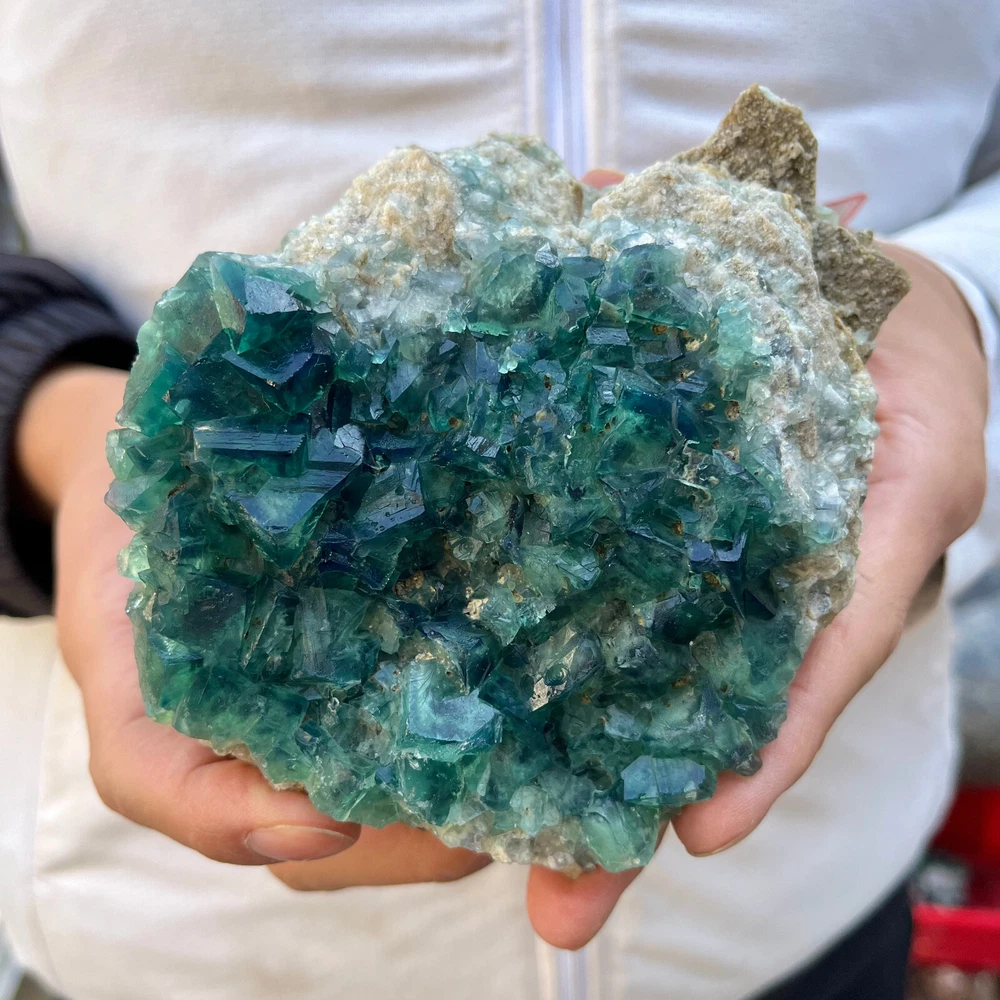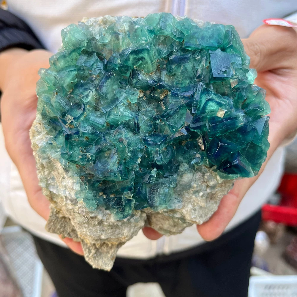 Amazing blue green hues in the fluorite. Item got here super quickly and it was wrapped completely in bubble wrap and tape. It looks exactly like the picture. It’s a solid chonk of a rock with interesting white flecks of crystal on the bottom. A+ transaction!!!