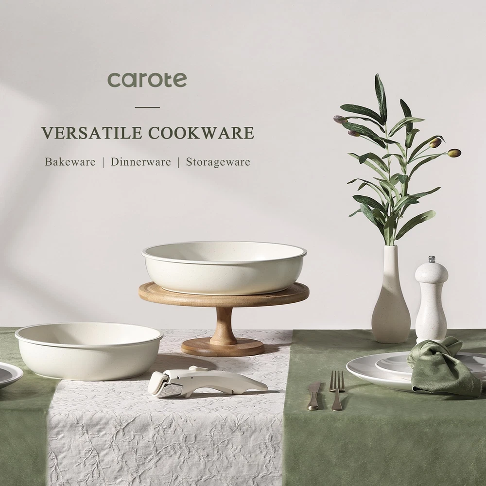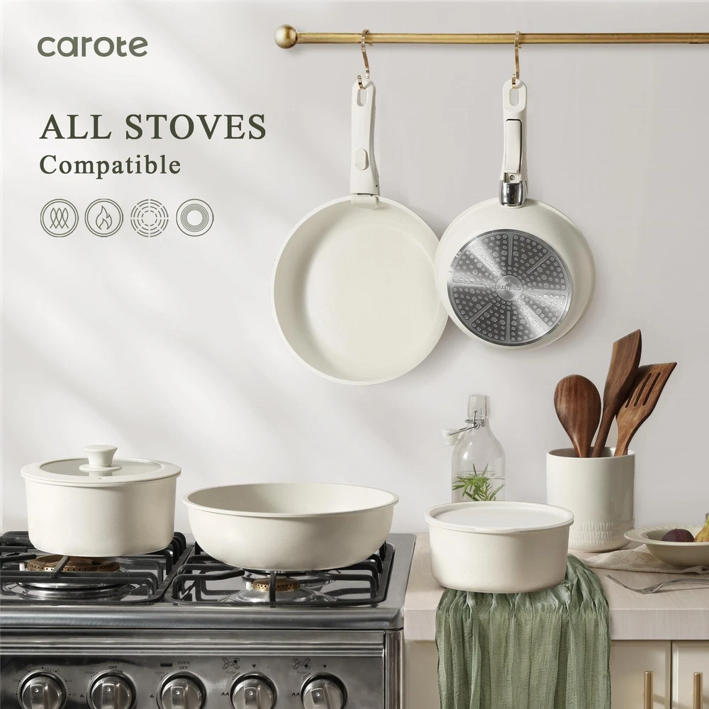 πππ π πͺππππππ-ππππ πͺπππππππ : Optimal storage and easy stacking with the handles off saves up to 70% more space of detachable handle pots and pans set. πππ π ππππ-ππππ πͺπππππππ: Cleanup with ZERO elbow grease thanks to the nonstick granite. As both a cookware set and a dinnerware set, 1-time cleaning for all. π΄πππππππππππ πͺπππππππ πΊππ: Removable handle for the ultimate versatilityβ go from ALL kinds of stoves to the oven, to the grill, to the fridge, and onto the table in a click. πππ πππβπ πͺπππππππππ ππ πΈππππππ: Balanced convenience-rich features, rapid&even heat transfer, and nonstick performance as the same as other cookware sets. πΎππππ-ππππ πΊππππππ: Each cookware passes strict multi-inspection process. In case you received defected items caused by delivery, please don't hesitate to reach out, you will be guaranteed to get a solution or a new replacement. π¨ππ-ππ-πππ πΊππ: This cookware set includes 12''/10''/9'' fry pans, 4qt/2qt saucepans, 4qt saute pan, 4qt casserole, 2 removable handles, 9''/10'' silicone lid, 9''/7'' storage lids, 6*pan protectors, silicone turner, silicone spoon, steamer.