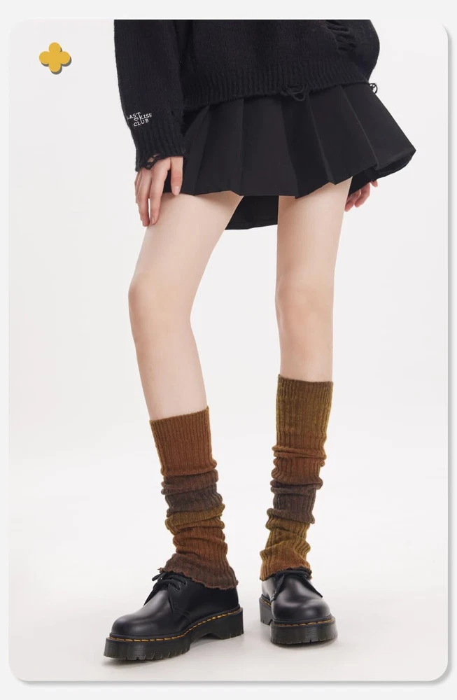 Made of 9% wool,35% nylon, 37% acrylic fibers, 19% polyester, features warm and stretchy, not itchy at all 58cm of length, it's about to cover your knee. Stretchy circumference 17 inches, free size fits most women and girls Vintage Y2k style baggy leg warmers easily match with leather shoes, boots, sneakers, leggings, skirt, sweater, coat for Kawaii and Trendy Space dye knitting leg warmers, different colors different style, make you the most unique in anywhere These stylish leg warmers are also the best gift for girl friends, daughters, colleagues or family members