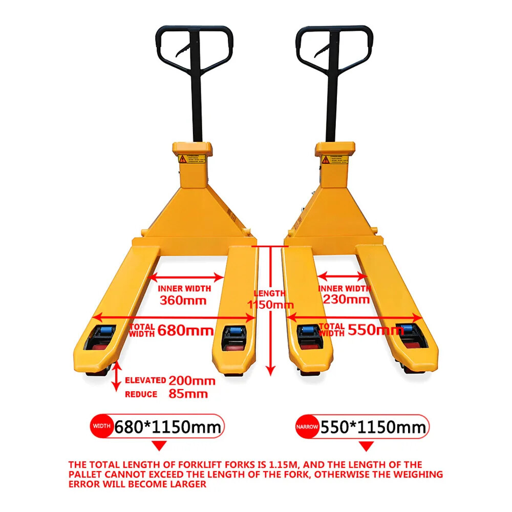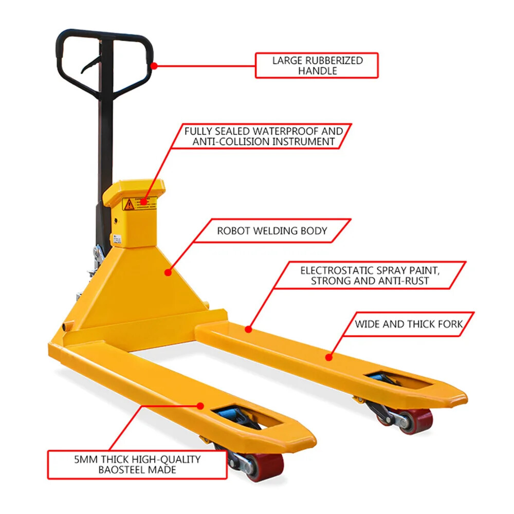 2/3 Tons Manual Hydraulic Truck Weighing Forklift Electronic Scales Intelligent Rugged and d urable waterproof and anti-collision dustproof, IP68 waterproof level, do not fear the wind and rain aluminium alloy instrument shell, high strength anti-impact.