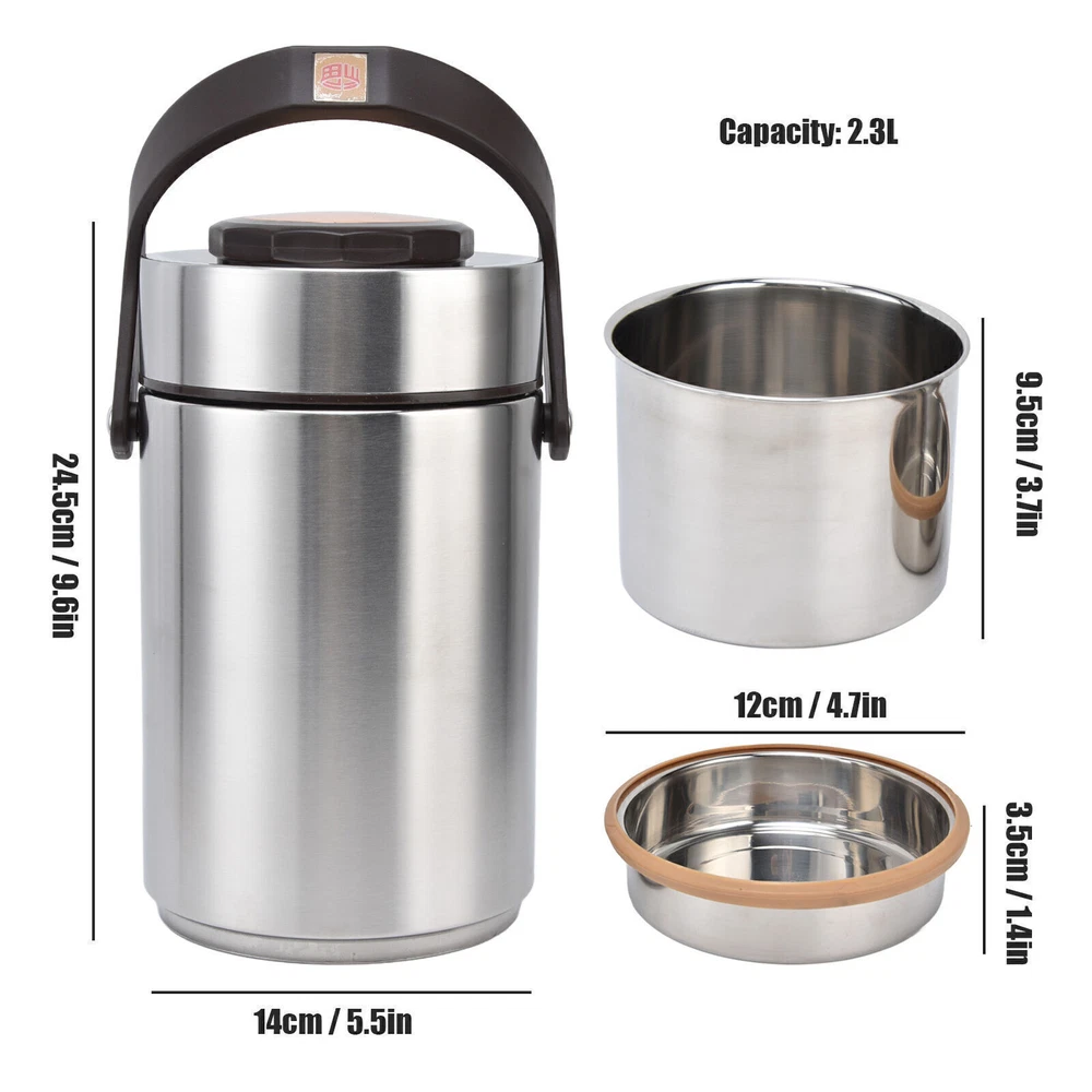 Feature: 1. Stainless Steel Material: 304 stainless steel container adopts high density materials, double wall vacuum technology, leakproof, reinforced stainless steel tank. 2. Good Thermal Insulation: Insulated lunch containers can reduce heat loss and improve thermal insulation, keep your family meals warm, long term storage. 3. Double Vacuum Design: The hot food container adopts double vacuum internal design, stainless steel inside and outside, with excellent temperature control and long term durability. 4. Healthy and Safe: Insulated stainless steel that won't leach chemicals into your food like other materials when heating food to guarantee family health. 2300ml capacity. 5. Easy to Clean: The wide mouth makes the vacuum insulated food jar easy to fill and pour out, convenient to clean. Suitable for work, travel, picnic and outdoor use. Specification: Item Type: Stainless Steel Vacuum Insulated Food Jar Material: Stainless steel Color: Stainless Steel Color Capacity: 2300ml Barrel Total Height: Approx. 24.5cm / 9.6in Barrel Diameter: Approx. 14cm / 5.5in Food Grid Diameter: Approx. 12cm / 4.7in Dishes Grid Height: Approx. 3.5cm / 1.4in Rice Grid Height: Approx. 9.5cm / 3.7in Weight: Approx. 1460g / 51.5oz Package List: 1 x Bento Lunch Box 1 x Vegetable Bowl 1 x Rice Bowl All the items will be dispatched within one business day by Airmail after the payment is clear. Most times you will receive your order within 10-30 business days after we transfer your package to the delivery company. We cannot guarantee the delivery timeframe if the post office has any unexpected delays due to holiday,weather,customs, or other conditions. Some countries like Russia, Brazil, or some European countries may take up to 50 days or longer for delivery. We appreciate your patience if you haven't received items in 30 days(Russian customers may need more patience by reason of the local delivery system and/or customs). If you are concerned in any way, please feel free to contact us via ebay message instead of leaving negative/neutral feedback or opening a dispute . We will do our best to solve any problem(resend or refund any missingitem). Customs duty is obligation and liability of citizens in yourresponsible for any tax and custom duty incurred. Generally, thedelay or failure delivery is sometimes caused by the policy of different customs. Our listing price includes the value of goods,packaging cost,and export taxes,not including international duties. duties,taxes,and charges are not included in the item price or shipping fee. The duties are buyers' responsibility. Please check with your country's customs office determine what these additional costs will be prior to your purchase. All disputes arising from the duties will be submitted to ebay for solution. Any questions, pls. contact us via ebay message or email us. We will reply your message within 48 hours. If you do not receive our reply within 48 hours, pls. post a message again because sometimes our message system may block some emails. If you are satisfied with our service, pls. kindly leave us a positive feedback and give us the Detailed Seller Rating with all " 5 " in very area. Our aim is to provide Level Customer Service, your recognition will encourage us greatly and serve you better. We strive to keep all our customers satisfy. We will do our up most to exceed your expectations in customer service, communication and dispatching of your orders.