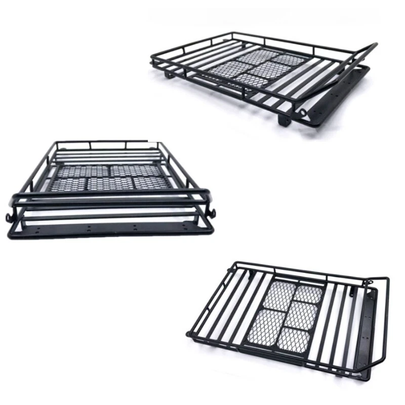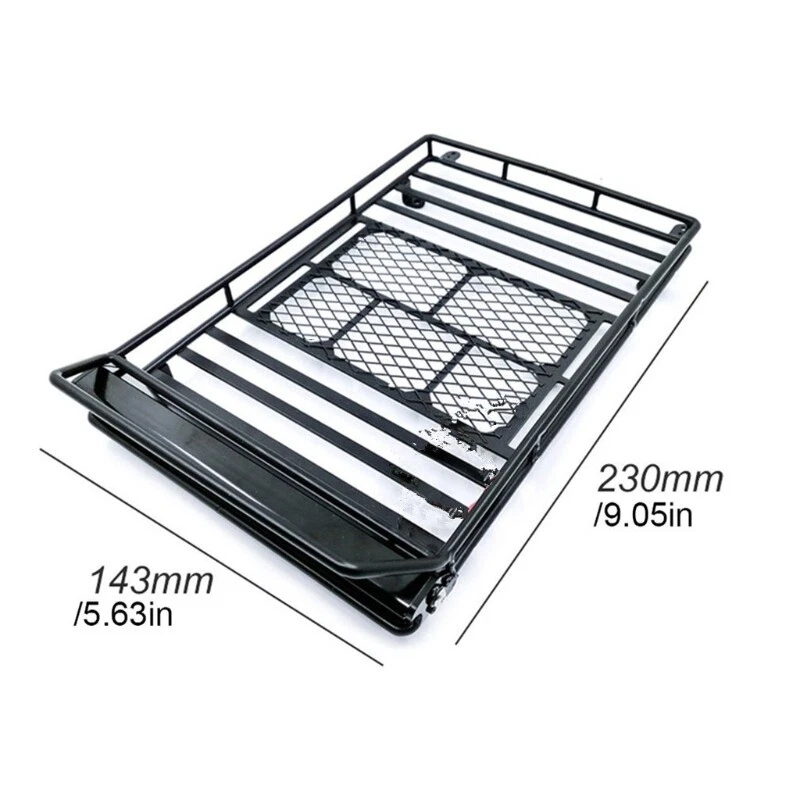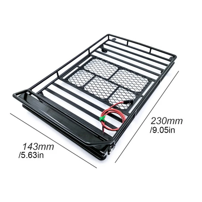 230x143mm Luggage for Carrier Roof Rack for 1/10 Crawler Car Axial SCX10 T Features: and high The product is metal materials, strong and durable, not easy to deform. High simulation accessories will make your remote control car look cool and real. It is a good accessory to upgrade your remote control car. Exquisite workmanship, a single product that enhances the overall texture, giving you a different game When it is out of jam, it can be used to transport spare tires or other parts for easy replacement at any for time. The roof rack of remote control car is suitable for 1/10 remote control crawler car, suitable for Axial SCX10 90046. Specifications: Metal Weight: 376g/344g Size: 230x143mm/9.05x5.63inch Color: Black Type: With Light/Without Light Package Includes: 1x Car Roof Rack note: 1.Please allow 1-2cm errors due to manual measurement, make sure that you do not mind before you order. 2.Due to the difference between different monitors, the picture may not reflect the actual color of the item. 3.This product is not a luggage rack for a real car, it's a luggage rack for a remote control toy car.