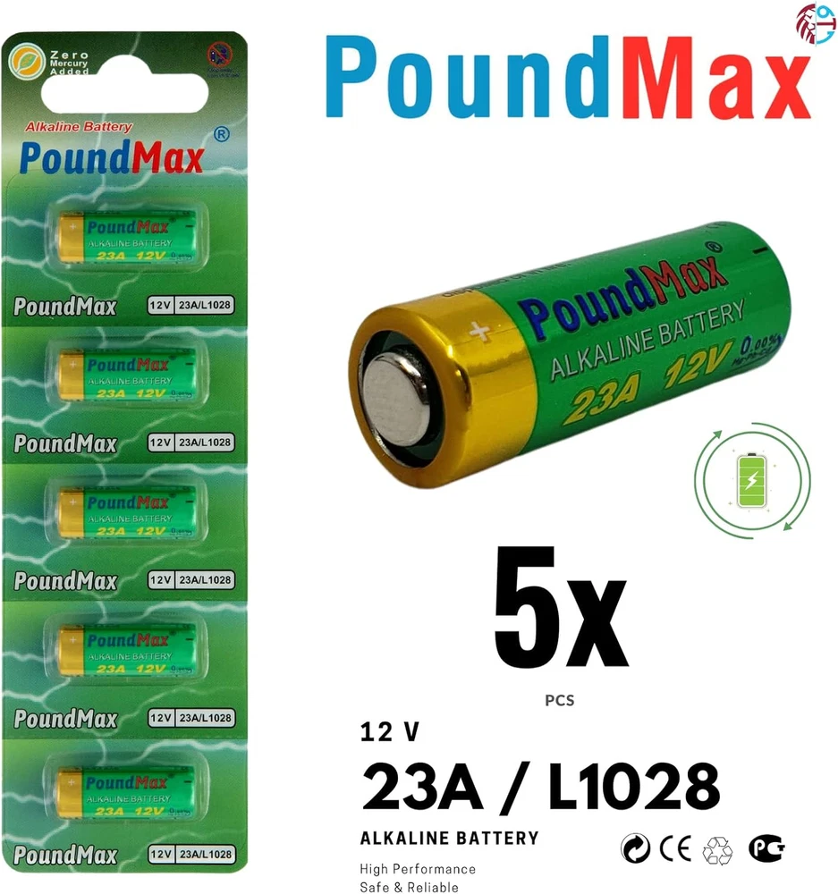 Store New Arrivals Add to Favorite View Feedback Contact 23A / L1028 Batteries 12V Alkaline Battery Combo Pack - 5 Count Description Item model number 23A / L1028 Unit Count 5.0 Count Style Single Battery Cell Composition Alkaline Product Dimensions 7 x 2 x 0.25 inches Item Weight 0.317 ounces Batteries 5 A batteries required. Recommended Uses For Product Watch Number of Batteries 5 A batteries required. Reliable long-lasting power Operating temperatures (-22°F to +140°f) Long shelf life. Used to power Garage Door Openers Remote Controls, Doorbells, Car Alarms Remote Controls, Burglar Alarms Remote Controls, Lighters, Keyless Entry Access Control Devices, Toys, and other Electronic Devices (Check your device for required battery model) 12 V voltage Equivalents: Energizer A23 12V Duracell MN21, GP23AE, 21/23, A23S, 23A, 23AE, V23GA, MN21B2PK, A23bpz, MN21, GP23A, LRV08, L1028, RVO8, MS21, E23A, K23A, 8LR932, 8LR23, VR22, 8F10R, EL12, 23GA PoundMax 5 Pack x Super Alkaline 23AE/A23/LRV08/MN21 12V Alkaline Security Batteries ABOUT US We offer the best prices around on high quality products. Our E-store includes media such as books, movies, music and games while offering electronics, toys, sporting apparel, clothing, tools, general home, garden items and more. SHIPPING We are always working hard to ensure your package arrives as soon as possible. Please understand that some factors like weather, high postal traffic, and the performance of shipping companies are outside of our control. We offer free shipping to the lower 48 states and ship within 2 business days of payment, usually sooner. We do not accept P.O. Boxes. Please provide a physical address. RETURNS We offer a 30-Day Return Policy on items which you are not completely satisfied with. You have the option for a full-refund or an exchange of the item. No returns are available on items shipped outside of the USA. PAYMENT We accept PayPal. CONTACT US This page content is yet to come Please ad us to your favorite seller and visit again later Thank You CUSTOMER SATISFACTION We try our very best to make sure every customer is completely satisfied. If there's a problem, message us! We're happy to help.