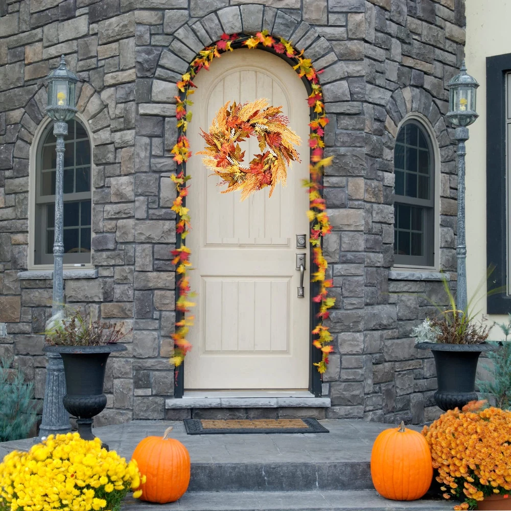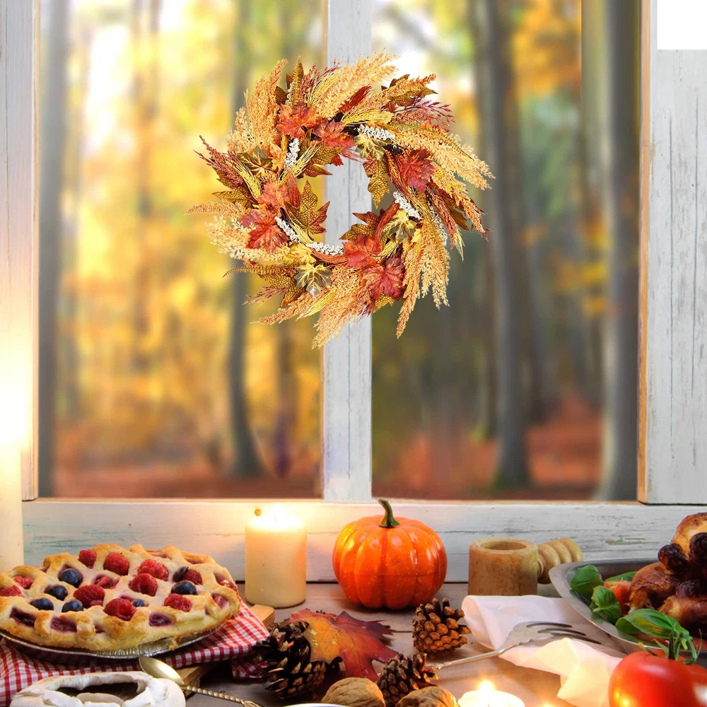 fall door wreath 24 inch Fall Wreath Wreaths for Front Door Farmhouse Wreath for Front Door Autumn Wreath for Thanksgiving Wall Window Home Decor Orange Wreath front door wreath farmhouse harvest wreath for front door 【High-quality Material】 Artificial fall wreath, handcrafted and more real. Uses environmentally friendly material, exquisite and durable. Simple elegant and comfortable color, vivid natural form, create an artistic romantic atmosphere. Light up your space with our energetic fall reef for door. 【Durable】 This wheat wreaths for front door have UV protection and helps prevent fading will look great for years to come. Silk leaves and wood-like shape base made it last long years. No hassles with needle clean-up or maintenance are required. A must-have thanksgiving wreaths for fall season outdoor. 【Size】 This thanksgiving decorations measure 24" in diameter, orange and brown design, symbolizing the year of the autumn harvest. The fall wreaths for front door outside is filled with beautiful artificial foliages and fake wheat spikes is the perfect harvest time decoration! Realistic leaves in various stages of fall color and berries complete the lush fall wreath look. 【Widely Use】 This fall door wreath can be used indoors or outdoors. Hang it on the front door, living room, fireplace, cabinets, walls, windows, shelves and other places you like. If it is outdoors, it is recommended to hang it on the covered porch to avoid direct sunlight and rain. 【Warm Tips】 For best longevity, keep out of direct sunlight and rain. If there are any problems with our products, please contact us at the first time, we will reply to you ASAP.