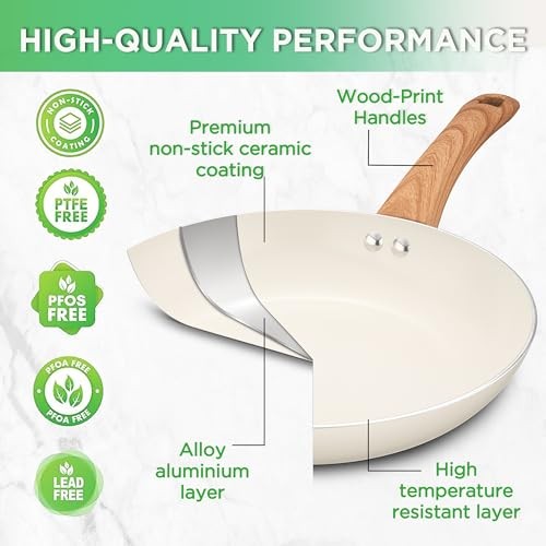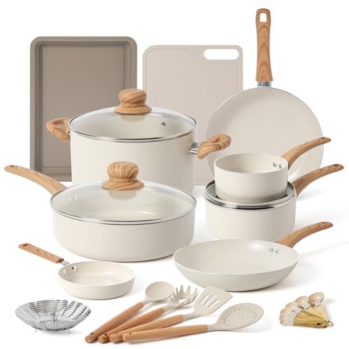 Return Policy Fast Delivery Trusted seller 23 Pcs Pots and Pans Set Nonstick, Kitchen Cookware Sets, with Frying Pan, Saucepan, Saute Pan, Lightweight Cooking Set with Stay-Cool Wood Print Handles, NO PFAS and PFOA, Light Wood Product Description Rapid & Even Heat: Ceramic pots and pans set is equipped with a durable aluminum core that allows the pot set to heat up quickly and distribute heat evenly for efficient and precise cooking results Die-Cast Aluminum Body: The reinforced die-cast aluminum construction of this kitchen pots and pans set ensures durability and reliability for long-term use while still maintaining a lightweight design Easy to Clean: Ceramic cookware set requires less oil to cook, preventing food from sticking simply wipe with a paper towel or rinse with water to save time and water, making cooking at home healthier and easier Stay-Cool Handle: The pan sets for cooking nonstick with wood grain handles are comfortable to hold and provide you with a safe and secure grip to keep your hands cool while you cook Cooking with confidence: Pot sets for cooking nonstick without PTFE, PFOA, PFAS, lead, cadmium and other toxic substances that can leach into your food Shipping Returns Payment Shipping Shipping is FREE to all addresses other than APO/PO boxes in the lower 48 states. All our stock ships from US-based warehouses. Shipped via USPS or UPS (depending on location and package weight) Unless stated otherwise, all orders will ship within 24-72 hours of your payment being processed. Check our feedback to see the great reviews of FAST shipping we offer. Returns Seller does not accept returns Payment We currently accept payment via eBay managed payments only. Once payment is cleared, we will dispatch your shipment within 1-3 business days. Please refer to the "Shipping" tab for more information regarding shipping speed to your destination.