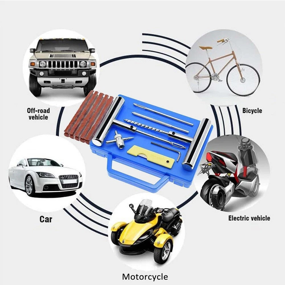 23pc Tire Repair Kit DIY Flat Tire Repair Car Truck Motorcycle Home Plug Fix 23pc Tire Repair Kit DIY Flat Tire Repair Car Truck Motorcycle Home Plug Fix Features: 🔨 SUPERIOR QUALITY'S MATERIALS : Better than any other brand, our T-handle is made of the solidest A3 steel material which is stronger than others and is hard to break. The Tire Repair Strip is used the best rubber which is durable and not easy to age and harden. 🔨 PROFESSIONAL AND ERGONOMIC DESIGN : This patch kit is strictly complied with the top production standards. Sturdy T handle is made of heavy steel, provides greater turning power and feels great in your hand. 🔨 MULTIPLE USES : This kit has extensive applicability design, which can repair more types of tires for up to 3CM punctures, like glass, piton, rock punctures of auto, motorcycles, tractors, lawnmowers, dirt bikes, trailers, jeeps, or trucks, etc. You can use it in a big truck comfortably. 🔨 EASY TO USE : Our tire plug kits have everything you need to make repair easily. This kit with T-handle and spiral probe tool, so you can pierce into easily no matter what tires you repair. The portable storage case takes up very little space. 🔨 QUICK ACTION : We care about every customer's sense of use. It is our responsibility to ensure product quality. If you have any questions about the repair kit, please contact us. 🔨 SATISFACTION GUARANTEE : If you have any questions, please feel free to contact us for online service and we will solve your problem within 24 hours. T-handle T-handle is made of the solidest A3 steel material which is stronger than others. It is not easy to break. The kit also equips the Tire Pressure Gauges with the Black Rubber Valve Stem which can measure and maintain the air pressure level of the tire after tire repairing work to ensure the safety of driving. SAVE MONEY Doing it yourself is soo cost effective No need to take it to a shop to get it patched up OPERATION METHOD OF TIRE REPAIR STEP ONE Pull out the nall STEP TWO Use threaded needles to find out the direction Remove sundries STEP THREE Put in the adhesive strip STEP FOUR Insert the adhesive strip and rotate 360 degrees Pull out the needle for the remaining centimetre STEP FIVE Cut off the extra rubber strips. STEP SIX Complete the tire repair. Specification: Item Weight:1.5lb Product Dimensions:6.7" x 5.75" x 1" Material: 40CR Q235 Color: Blue 23 piece set Package Included: 15 X Tire patching strips 1 X Reaming drill 1 X Fork drills 1 X Reaming drills 1 X Fork drill bits 1 X Utility knife 1 X Hex wrench 1 X Valve core tools Payment Delivery details Terms of sales About us Contact us Payment 1.We accept PayPal/credit/Gpay 2.All payments must be received within 10 days after auction won 3.Non-pay bidder will get a negative feedback and an unpaid alert from eBay 4.E-checks via Paypal will be hold until it is cleared Delivery details Most Items Free Shipping within the 48 States. We ship within the United States only. The term EXCLUDES the states of Alaska, Hawaii and all off-shore U.S. territories and possessions such as Puerto Rico, Guam and Virgin Islands. We do not ship to APO and FPO . Delivery Time: 4-7 business days (Varies by Destination) Shipping Carriers are responsible on the delivery time. If you have any questions or problems with delivery, please contact carrier directly Standard Order Processing time: All items will ship within 24 hours (Monday - Friday). Payment cleared/received on Friday will be shipped on the next business days (Monday or Tuesday) We are not responsible for carrier transit time. This information is provided by the carrier and excludes weekends and holidays. Note that transit times may vary, particularly during peak periods or in climate weather conditions, and that delivery times frames will need to be extended for any processing time frames in excess of 1-2 business days. Terms of sales We fully guarantee Customers benefit within 30 business days if item DOA (damage on arrival), and please contact us within 30 days from the delivery date to exchange or refund. No need click "Return", please just contact us via Ebay Message. If you insist on returning the item, please choose the reason "nolonger need it' for returning processing. You will get the replacement or refund through the communication between us. About us We strive for 100% Customer Satisfaction and high quanlity products. If you have any questions or any problems on your purchase, please feel free to contact us via Ebay Message Contact us Via eBay message system , you will get our response within 24 working hours during business days from Monday to Friday. We apologize for the late reply during the holidays or weekends. Please send all correspondence through the ebay messaging system. All Technique questions, must be asked via ebay message. Emails will be applied during business hours: 9AM to 6PM Pacific Time. Monday to Friday only (excluding Holidays). After hours emails will be replied on the next business day. Brand Unbranded Type Tire Repair Kit Placement on Vehicle As Picture Manufacturer Part Number Does not apply OE/OEM Part Number Does not apply Material 40CR Q235 Universal Fitment Yes Country/Region of Manufacture Unknown