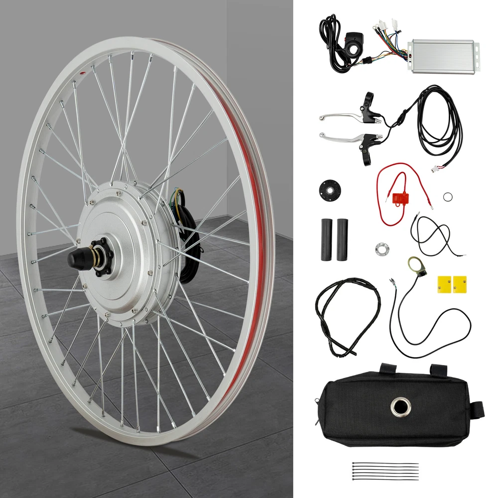24" 36V 750W Electric Bicycle Conversion Kit Front Wheel Kit Ebike Hub Motor Set 36V 750W 24 Inch Electric Bike Conversion Kit, Electric Bike Front Wheel Hub Motor Kit, E-Bike Wheel Kit Description Are you still looking for a stable front wheel for an electric bicycle? Our product uses a brushless toothed small high-speed series wheel hub motor, which comes with a handbrake that can be used with a disc brake or a V-shaped brake. Long cables and handbrake cables are more convenient to install. Come and buy now to make your cycling more efficient and labor-saving. Key Features High-quality Material: This product is mainly made of rubber, aluminum, 45 # steel, and aluminum alloy. After brushed treatment, it is not easy to rust, scratch, or fracture and can maintain superior performance for a long time. High Efficiency: The 750W brushless toothed small high-speed series wheel hub motor has an efficiency of more than 82% and can reach the maximum riding speed of 26.72 mile/h, suitable for regular bicycles used on commuting and short journey . Accurate Speed Control: The built-in 3 Hall sensors and controller can precisely control the vehicle's speed, making your driving more controllable and easier to operate. Superior Performance: With a torque of 35N. m, this product can climb up 12 ° slopes, allowing you to apply it to more terrains and travel more freely in daily life. Excellent Load-Bearing Capacity: The high-quality materials and carefully processed wheel can withstand a weight of 220.46 pounds, supporting most ordinary adults and bicycle frames without worrying about deformation or collapse. Simple Operation: You only need to control the speed through the thumb throttle, and its battery indicator lights can quickly check your battery level, making it convenient to charge on time and easy to use. Energy Saving & Safety : The handbrakes can automatically turn off the motor, saving energy, preventing the motor from overheating, and extending the product's service life. The drive system is free of moving chains or gears, which prevents friction for enhanced safety . Flexible Installation: The 4.92-foot motor cable length and 5.91-foot brake line make it easy for you to install this product on a bicycle rack, making it more flexible to install. Details Controller Bag: You can use it to store the controller and secure it on the bike for easy use. Junction Boxes: They accommodate the joints of the wires, preventing them from being exposed to the outside, making the wiring safer. Spoke Key: It can help you adjust the feeding of spokes to adapt to different riding conditions. Application This product is suitable for 24 "bicycle racks and aluminum wheels of 12", 16 ", 18", 20 ", 24", 26 ", 700c, and 28". It can be installed as a power device on various types of two-wheeled, mountain, and folding bikes. Suitable for bicycle lithium battery modification, DIY electric bicycles, electric folding bicycles, etc. Specification Materials: Rubber, Aluminum, 45# Steel, Aluminum Alloy Process: Brushed Color: Silver Style: Modern Assembly Required: Yes Installation Posituon: Front Motor Type: Brushless Toothed Small High-Speed Series Hub Motor Hand Brake Type: Disc Brake/V-Type Brake Voltage: 36V Power: 750W Efficiency: ≥82% Controller: 1*36V 750W Controller Number of Hall Sensors: 3 Recommended Battery Capacity: >12Ah Motor Shaft Diameter: M14 Motor Shaft Length: 170mm/6.69in Motor Cable Length: 150cm/4.92ft Speed: Approximately 43km/26.72mile/h Climbing Angle: 12 ° Rated Speed: 390PRM Rated Torque: 35N.m Flat Fork Min. Width: 100-110mm/3.94-4.33in Available Aluminum Wheel Size: 30.48cm/12 ", 40.64cm/16", 45.72cm/18 ", 50.8cm/20", 60.96cm/24 ", 66.04cm/26", 700c, 71.12cm/28 " Max. Load-Bearing Capacity: 100kg/220.46lbs Adapted Slot Width: 1cm/0.39in Adapted Frame Size: 60.96cm/24in Brake Line Length: 1.8m/5.91ft Hub Width: 2.6cm/1.02in Motor Diameter: 19.2cm/7.56in Product Size (D*W): 52*17cm/20.47*6.69in Package Size: 55*55*23cm/21.65*21.65*9.06in Gross Weight: 9kg/19.84lbs Net Weight: 8kg/17.64lbs Package Included 1 * 24" Front Wheel with Brushless Hub Motor 1 * Electric Controller 2 * Hand Brakes 2 * Handle Grips 2 * Junction Boxes 1 * Spoke Key 1 * Controller Bag 1* Thumb Throttle 1 * Strip Payment Delivery details Terms of sales About us Contact us Payment We accept ebay payment 。 Fees such as import duties, taxes are not included in the item price or shipping costs. These charges are the buyer's responsibility. Delivery details Shipping: 2-9 working days to: USA Terms of sales We maintain high standards of excellence and strive for hundred percent customer satisfaction. Feedback is very important to us. We hope that you contact us immediately before you give neutral or negative feedback, so that we can address your concerns. It is impossible to address issues if we do not know about them! About us Your satis faction is our ultimate goal. We work hard to earn your trust and future business. Our certified technicians have tested each item before shipping. The unit comes with 1 year limited warranty on all manufacturing defects. a) If you receive a defective item, you may return it or ask for a discount. Please contact us within 14 days after you receive the package. b) What you returned must be intact and in its original packaging as re? u. Customer is responsible for shipping costs of the returned item. c) We will cover the cost of shipping back t with the shipping rate indicated in the registration page. We will send you a new unit or refund the full payment you paid. Thank you. Contact us Business Hour Business Hour: Monday To Friday: 8:30 AM to 5:00 PM (Beijing China time) Due to time zones, our reply to your questions may not be immediately. But within above working time, we will reply your email within 24 hours. If it's non-workdays, please kindly be patient and wait till Monday. Please contact us with ebay message. Please feel free to contact us if you have any questions. Monday To Friday:
