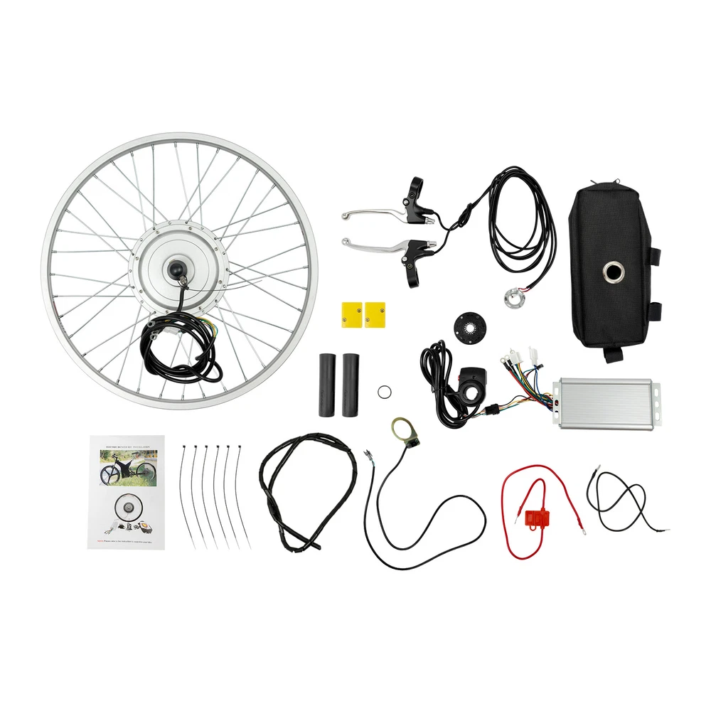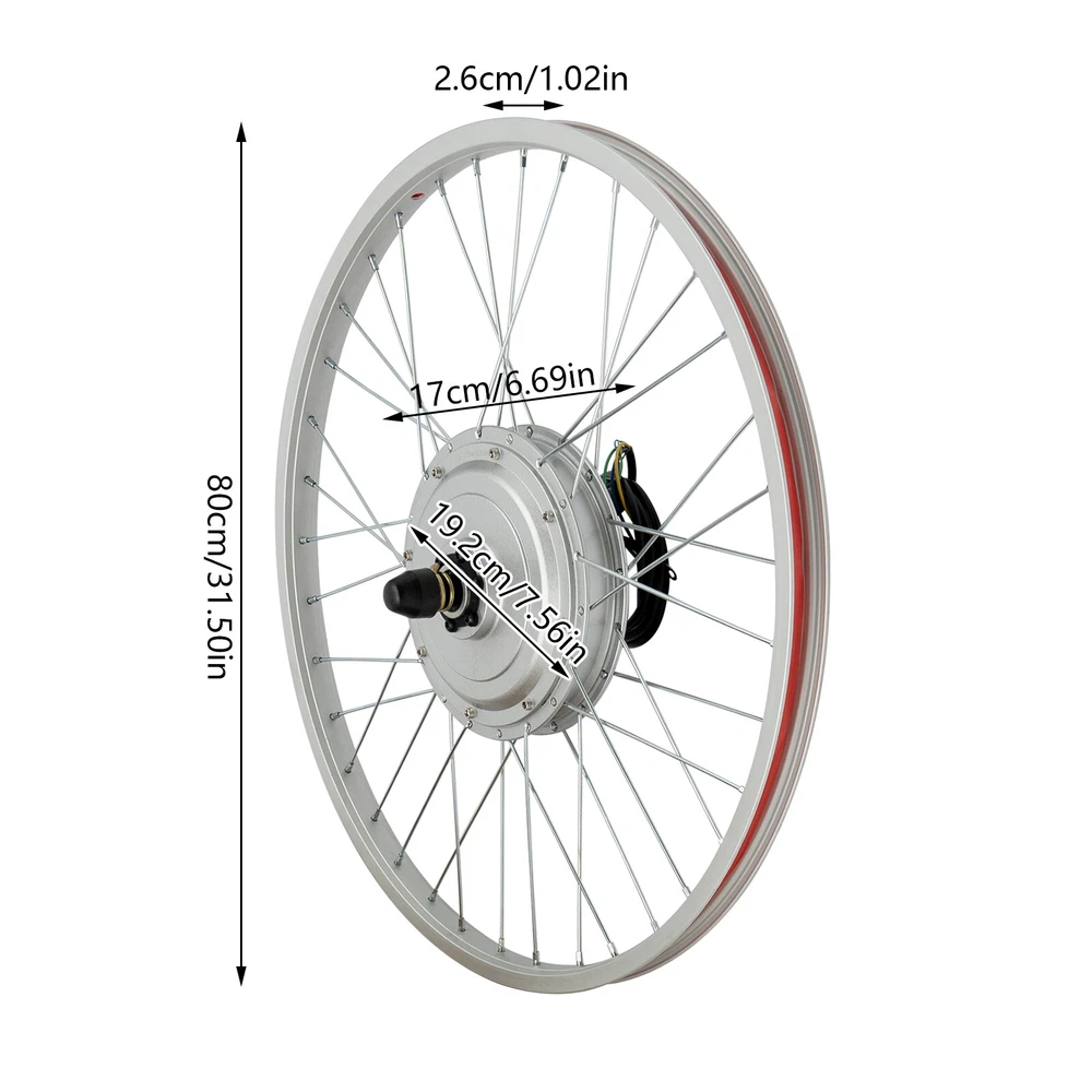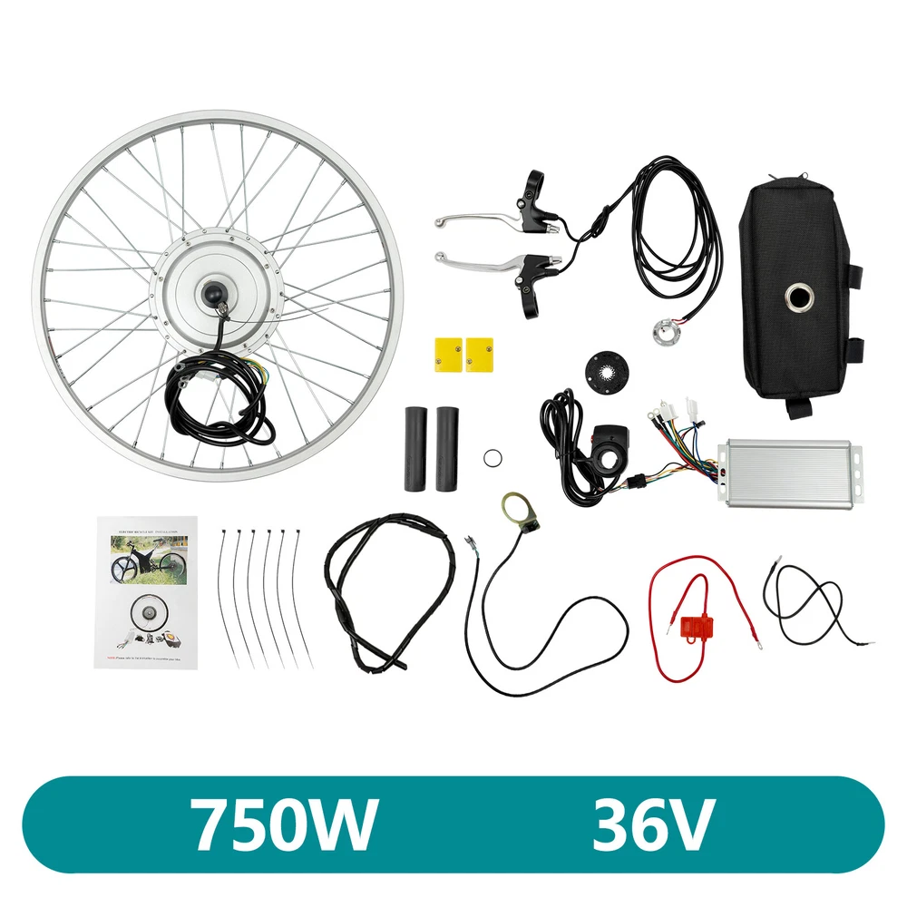 36V 750W 24 Inch Electric Bike Conversion Kit, Electric Bike Front Wheel Hub Motor Kit, E-Bike Wheel Kit Motor Type: Brushless Toothed Small High-Speed Series Hub Motor Hand Brake Type: Disc Brake/V-Type Brake Voltage: 36V Power: 750W Efficiency: ≥82% Controller: 1*36V 750W Controller Number of Hall Sensors: 3 Recommended Battery Capacity: >12Ah Motor Shaft Diameter: M14 Motor Shaft Length: 170mm/6.69in Motor Cable Length: 150cm/4.92ft Speed: Approximately 43km/26.72mile/h Climbing Angle: 12 ° Rated Speed: 390PRM Package Included 1 * 24" Front Wheel with Brushless Hub Motor 1 * Electric Controller 2 * Hand Brakes 2 * Handle Grips 2 * Junction Boxes 1 * Spoke Key 1 * Controller Bag 1* Thumb Throttle 1 * Strip 24" 36V Electric Bicycle Conversion Kit Front Wheel E-Bike Hub Motor Kit 750W 36V 750W 24 Inch Electric Bike Conversion Kit, Electric Bike Front Wheel Hub Motor Kit, E-Bike Wheel Kit Description Are you still looking for a stable front wheel for an electric bicycle? Our product uses a brushless toothed small high-speed series wheel hub motor, which comes with a handbrake that can be used with a disc brake or a V-shaped brake. Long cables and handbrake cables are more convenient to install. Come and buy now to make your cycling more efficient and labor-saving. Key Features High-quality Material: This product is mainly made of rubber, aluminum, 45 # steel, and aluminum alloy. After brushed treatment, it is not easy to rust, scratch, or fracture and can maintain superior performance for a long time. High Efficiency: The 750W brushless toothed small high-speed series wheel hub motor has an efficiency of more than 82% and can reach the maximum riding speed of 26.72 mile/h, suitable for regular bicycles used on commuting and short journey . Accurate Speed Control: The built-in 3 Hall sensors and controller can precisely control the vehicle's speed, making your driving more controllable and easier to operate. Superior Performance: With a torque of 35N. m, this product can climb up 12 ° slopes, allowing you to apply it to more terrains and travel more freely in daily life. Excellent Load-Bearing Capacity: The high-quality materials and carefully processed wheel can withstand a weight of 220.46 pounds, supporting most ordinary adults and bicycle frames without worrying about deformation or collapse. Simple Operation: You only need to control the speed through the thumb throttle, and its battery indicator lights can quickly check your battery level, making it convenient to charge on time and easy to use. Energy Saving & Safety : The handbrakes can automatically turn off the motor, saving energy, preventing the motor from overheating, and extending the product's service life. The drive system is free of moving chains or gears, which prevents friction for enhanced safety . Flexible Installation: The 4.92-foot motor cable length and 5.91-foot brake line make it easy for you to install this product on a bicycle rack, making it more flexible to install. Details Controller Bag: You can use it to store the controller and secure it on the bike for easy use. Junction Boxes: They accommodate the joints of the wires, preventing them from being exposed to the outside, making the wiring safer. Spoke Key: It can help you adjust the feeding of spokes to adapt to different riding conditions. Application This product is suitable for 24 "bicycle racks and aluminum wheels of 12", 16 ", 18", 20 ", 24", 26 ", 700c, and 28". It can be installed as a power device on various types of two-wheeled, mountain, and folding bikes. Suitable for bicycle lithium battery modification, DIY electric bicycles, electric folding bicycles, etc. Specification Materials: Rubber, Aluminum, 45# Steel, Aluminum Alloy Process: Brushed Color: Silver Style: Modern Assembly Required: Yes Installation Posituon: Front Motor Type: Brushless Toothed Small High-Speed Series Hub Motor Hand Brake Type: Disc Brake/V-Type Brake Voltage: 36V Power: 750W Efficiency: ≥82% Controller: 1*36V 750W Controller Number of Hall Sensors: 3 Recommended Battery Capacity: >12Ah Motor Shaft Diameter: M14 Motor Shaft Length: 170mm/6.69in Motor Cable Length: 150cm/4.92ft Speed: Approximately 43km/26.72mile/h Climbing Angle: 12 ° Rated Speed: 390PRM Rated Torque: 35N.m Flat Fork Min. Width: 100-110mm/3.94-4.33in Available Aluminum Wheel Size: 30.48cm/12 ", 40.64cm/16", 45.72cm/18 ", 50.8cm/20", 60.96cm/24 ", 66.04cm/26", 700c, 71.12cm/28 " Max. Load-Bearing Capacity: 100kg/220.46lbs Adapted Slot Width: 1cm/0.39in Adapted Frame Size: 60.96cm/24in Brake Line Length: 1.8m/5.91ft Hub Width: 2.6cm/1.02in Motor Diameter: 19.2cm/7.56in Product Size (D*W): 52*17cm/20.47*6.69in Package Size: 55*55*23cm/21.65*21.65*9.06in Gross Weight: 9kg/19.84lbs Net Weight: 8kg/17.64lbs Package Included 1 * 24" Front Wheel with Brushless Hub Motor 1 * Electric Controller 2 * Hand Brakes 2 * Handle Grips 2 * Junction Boxes 1 * Spoke Key 1 * Controller Bag 1* Thumb Throttle 1 * Strip Payment Delivery details Terms of sales About us Contact us Payment We accept ebay payment 。 Fees such as import duties, taxes are not included in the item price or shipping costs. These charges are the buyer's responsibility. Delivery details Shipping: 2-9 working days to: USA Terms of sales We maintain high standards of excellence and strive for hundred percent customer satisfaction. Feedback is very important to us. We hope that you contact us immediately before you give neutral or negative feedback, so that we can address your concerns. It is impossible to address issues if we do not know about them! About us Your satis faction is our ultimate goal. We work hard to earn your trust and future business. Our certified technicians have tested each item before shipping. The unit comes with 1 year limited warranty on all manufacturing defects. a) If you receive a defective item, you may return it or ask for a discount. Please contact us within 14 days after you receive the package. b) What you returned must 
