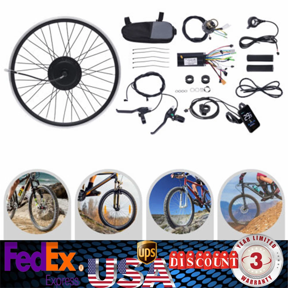 24" 500W 36V E-Bike Front Wheel Electric Bicycle Hub Motor Conversion Kit LCD