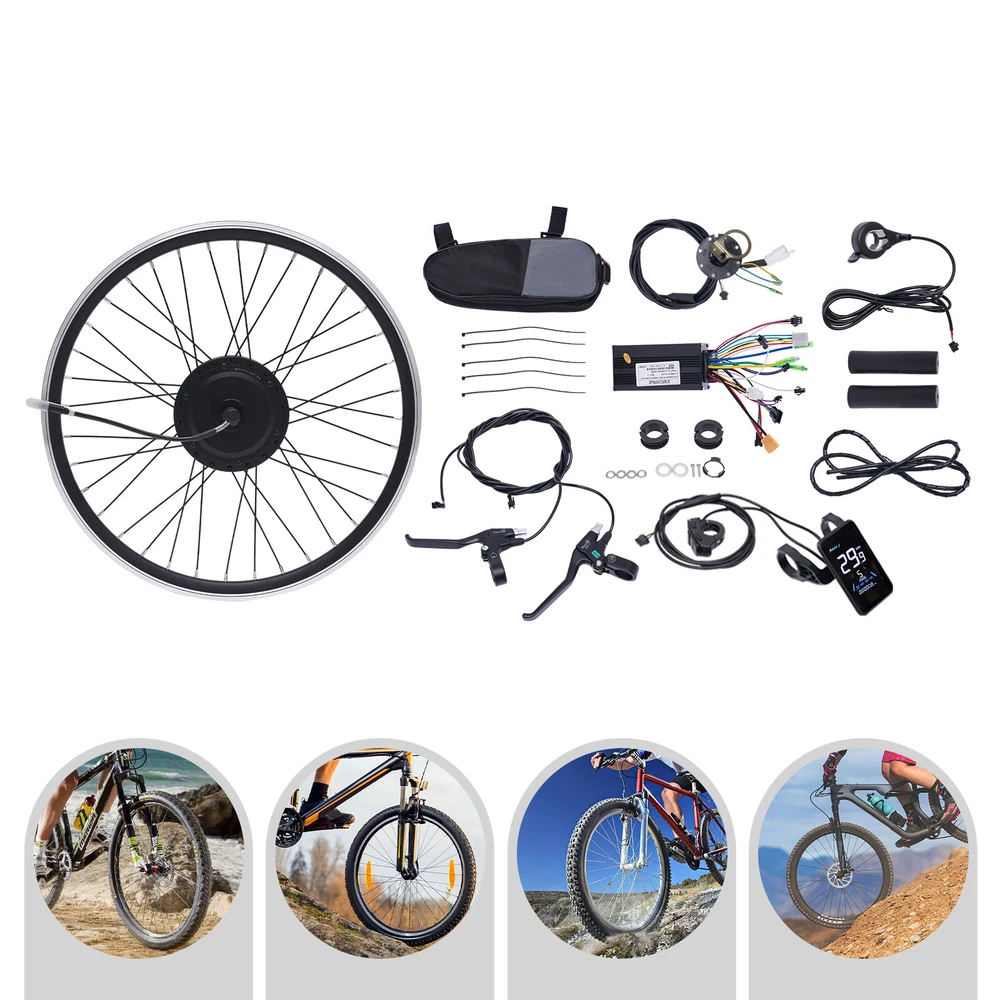 Specifications Material: Aluminum Alloy Color: Black Suspension Type: Front Special Feature: Electric Assembly Requirement: Yes Brake Type: Power-off Brake Lever (Applicable to V Brake, Disc Brake) Motor Type: Brushless Gear Motor Gear Adjustment: 5 Gears Recommended Battery: 36V 13AH or Higher Capacity Battery(Not Included) Output Voltage: 36V Power: 500W Minimum Flat Fork Distance: 100mm/3.94in Speed: 30-35km/h Display Size: 6.8*9.6cm/2.67*3.77in Packing Size: 55*55*22cm/21.65*21.65*8.66in Motor Wheel Diameter: 61cm/24in Gross Weight: 9kg/19.84lbs Net Weight: 8kg/17.63lbs Loading Capacity: 120kg/264lbs Package Included 1* Motor Wheel 1* Display 2* Brake Levers 2* Throttles 1* Padel Sensor 1* Controller 1* Thumb Knob Handle 1* Controller Bag All Accesso 24" 500W 36Volt E-Bike Front Wheel Electric Bicycle Hub Motor Conversion Kit LCD 24" 500W 36Volt E-Bike Front Wheel Electric Bicycle LCD Hub Motor Conversion Kit Application It is suitable for assembling and converting the 24in front wheel of a bicycle. It is compatible with universal disc brakes and V-shaped brakes. Specifications Material : Aluminum Alloy Color: Black Suspension Type: Front Special Feature: Electric Assembly Requirement: Yes Brake Type: Power-off Brake Lever (Applicable to V Brake, Disc Brake) Motor Type: Brushless Gear Motor Gear Adjustment: 5 Gears Recommended Battery: 36V 13AH or Higher Capacity Battery(Not Included) Output Voltage: 36V Power: 500W Minimum Flat Fork Distance: 100mm/3.94in Speed: 30-35km/h Display Size: 6.8*9.6cm/2.67*3.77in Packing Size: 55*55*22cm/21.65*21.65*8.66in Motor Wheel Diameter: 61cm/24in Gross Weight: 9kg/19.84lbs Net Weight: 8kg/17.63lbs Loading Capacity: 120kg/264lbs Package Included 1* Motor Wheel 1* Display 2* Brake Levers 2* Throttles 1* Padel Sensor 1* Controller 1* Thumb Knob Handle 1* Controller Bag All Accessories for Assembly Description Do you want to convert your favorite bicycle into an electric bicycle to enjoy its power and comfort? Then you can't miss our electric bicycle motor conversion kit. The display and pedal sensor will allow you to quickly switch between throttle control, cruise control and pedal assist sensor (PAS) to enjoy feeling the headwind on the road. It will be ideal for you! Key Features Enjoy Riding: It converts your bike into an e-bike for efficiency and convenience, allowing you to fully enjoy the fun of riding on your commute and short journeys. Complete Set: This kit contains the complete range of accessories needed to convert your bike without you having to buy them separately. The matching kit will provide you with more consistent and stable performance. User-friendly Features : According to different road conditions and personal needs, it allows 5-gear speed adjustment. At the same time, when the riding speed is maintained, pressing the button key for 2-3 seconds will enter the cruise function, making the riding process easier! Powerful Motor : With a 500w brushless gear motor, it can reach a maximum speed of 30-35KM/H. Compared to brush motors, it allows for smooth and low noise operation without replacing the brush, thus making maintenance easier. Safe and Reliable : The brake lever can cut off the power supply of the motor in case of emergency braking, so that the bicycle can stop in time to ensure riding safety. Dual Mode Controller : The motor works under Hall effect and non-Hall effect. If the component fails, the controller will switch to non-Hall effect mode and the motor will continue to work. Robust and Durable : The aluminum alloy wheel frame is very durable, stable, r ust-proof and wear-resistant , ensuring long service life and strong load-bearing capacity, up to 264lbs . Customer Service: We aim to provide quality products and services. If you have any problems, please feel free to contact us. We will reply and solve the problem for you as soon as possible. Details Practical Display: The display shows real-time speed, maximum speed, average speed, total mileage, single mileage, battery power display, assist gear/speed grading, cruise function, so that you can charge in time and intuitively keep track of its operating status. Pedal Assist Sensor: The pedal assist sensor (PAS) can sense the pedal rhythm and adjust the motor speed accordingly. It allows you to ride an electric bicycle without throttle response, which helps on long trips and reduces wrist soreness. Waterproof Controller Bag: The waterproof controller bag can safely store the controller and allow for rainy days riding. Notes While connecting the controller to the wires, please make sure that you connect the right colors to the controller. Otherwise, the controller may be broken. This kit does not include tires, batteries and chargers, which need to be purchased by customers. Please check the product size and practical voltage before purchasing. It is suitable for the front wheel of a two-wheeled bike. It cannot be used for three-wheelers or multi-wheelers. Please allow the slight color di fference caused by the shooting light and 1-3cm error due to manual measurement, and make sure you do not mind before you Feature! Stable performance, durable Features 🔥high performance,good stability🔥 MPN Does not apply Brand Unbranded Color Black Material Aluminum Alloy Voltage 36 V Compatible Brand Ebike Part Type Conversion Kit Power 500W Compatible Bike Type Electric Bicycle Suspension Type Front Special Feature Electric Recommended Battery 36V 13AH or Higher Capacity Battery(Not Included) Output Voltage 36V Number of Items / UPC Does not apply Manufacturer Warranty 3 Years Country/Region of Manufacture China