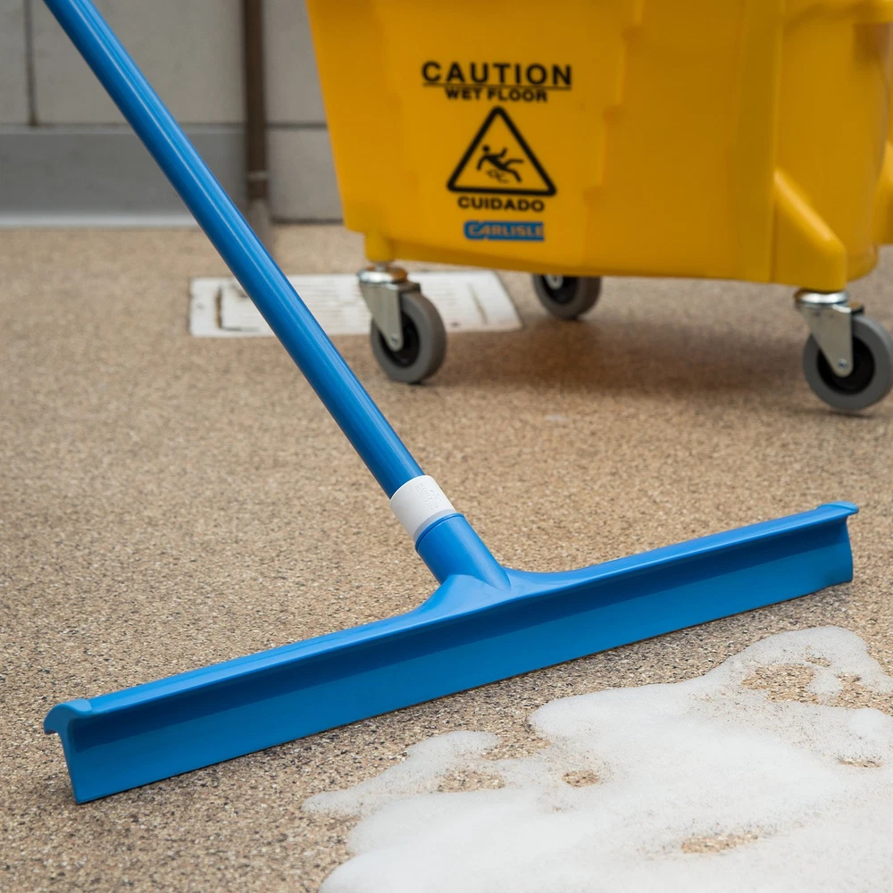 All plastic construction will not rust One-piece design superior to double foam blade Safe to use on delicate tile and marble floors Helps prevent sparks when cleaning-up fluids Great on uneven floor surfaces