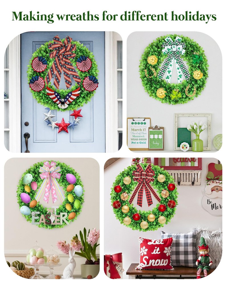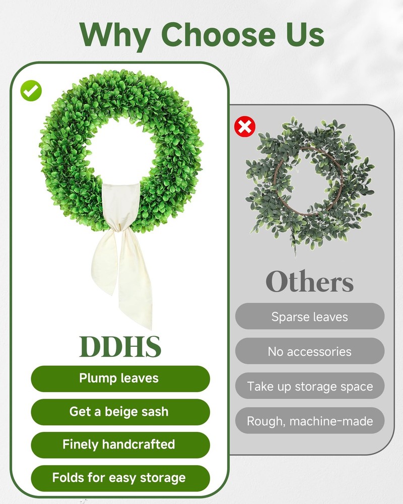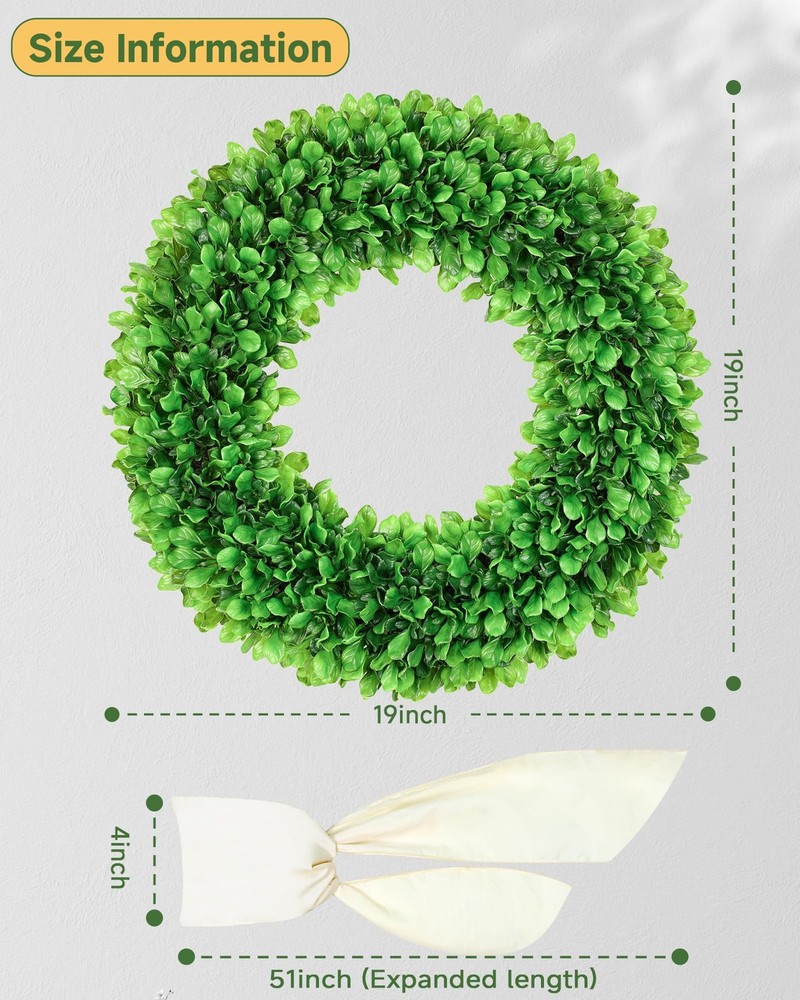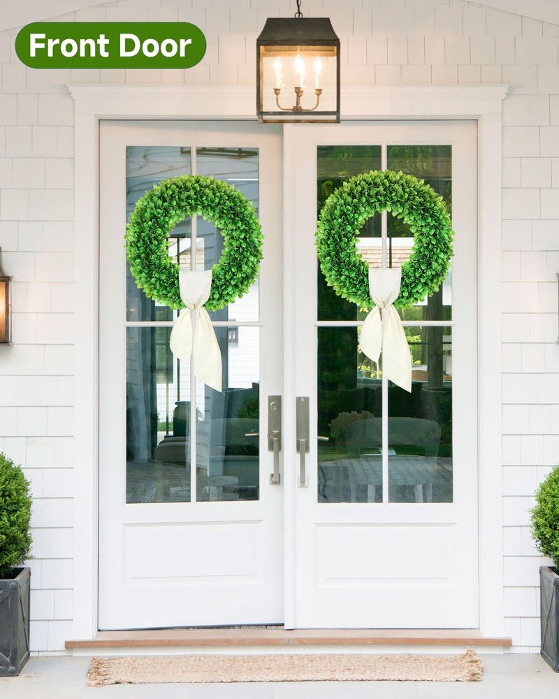 boxwood wreath summer door wreaths spring wreaths for front door st patrick's day wreath summer wreaths for front door summer wreath front door wreath summer summer wreaths 【Year-Round Wreath】Artificial spring summer wreath with a lush boxwood and grapevine base, Reuse green wreaths can easily DIY design for every season and holiday 【Handmade & Natural Look】Summer door wreath artisan-crafted with high-quality, non-toxic materials for a realistic and durable design. Boxwood wreaths each leaf and vine is arranged for a full, natural look. ensuring safety for indoor and outdoor use 【Large Wreath】Available in 24" outdoor wreaths for front door, perfect for a full, vibrant appearance. With a yellow sash and hello sign, you can change the accessories to change the style at will 【Durable & UV-resistant】Summer door wreath built to last with reinforced hooks, this outdoor wreath with stands outdoor elements. Use it for farmhouse, wedding, or everyday décor—its timeless green hue suits any setting season 【DIY Wreath】 Year round door weath add autumn maple leaves, winter bells, or spring florals to match your style. Includes a welcome hello sign for a charming touch. A thoughtful gift for home decor enthusiasts 【Tips】Should You Have Any Problem With Our Products, Please Immediately Contact Us, We Will Reach Out to You Asap