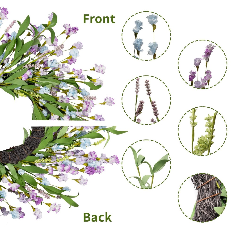 24 Inch Spring Wreath 【Material】The Spring wreaths for front door is made of EVA and paper, and the base is made of grapevines, purely handmade. No need to worry about falling or wilting. Rich color matching, suitable for any decoration scene, full of strong artistic flavor 【All Season Wreaths Decor】The garlands for decoration is suitable for living room, bedroom, dining room, fireplace, window, wall, mirror, porch, balcony, stairs, shop, office, hotel, wedding, villa, photography background and more. The Spring door wreath can be used all year round, for your home brings unlimited energy, color and perfect decorative effect 【24'' Large Door Wreath】To protect it from damage during shipping, the spring wreath is folded. The maximum adjusted size is about 24 inches. You can gently expand the flowers and stems as needed to adjust to the desired effect and shape 【Tips】Since the spring wreaths for front door is made of paper, avoid contact with rain and water. It can be used indoors and outdoors. For outdoor use, it is recommended to hang it on a covered porch out of direct sunlight, rain and snowfall to prevent the wreath from fading 【110% Satisfaction】Since the Spring door wreath are handmade, each wreath is unique, so there will be a slight variation in size and appearance. If you find any problems after receiving the goods, please click ''Contact Seller'' to contact us and we will definitely give you a perfect reply as soon as possible (within 24 hours)