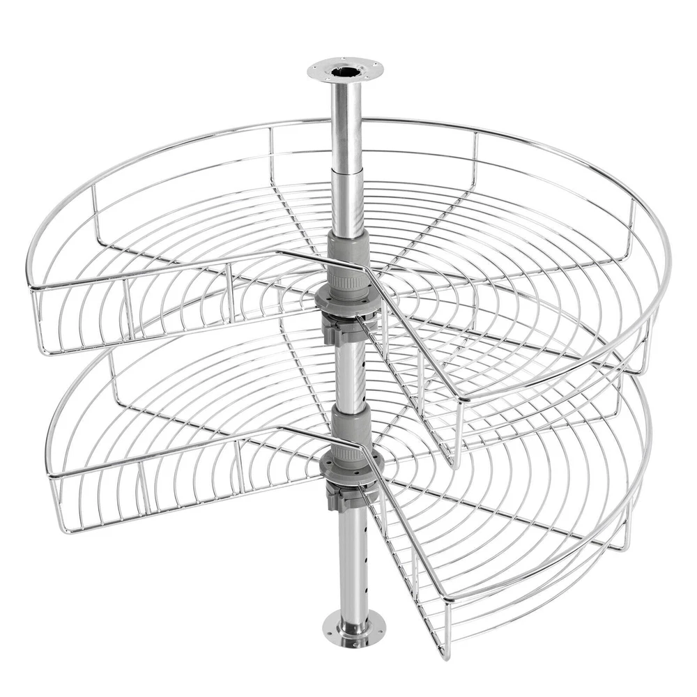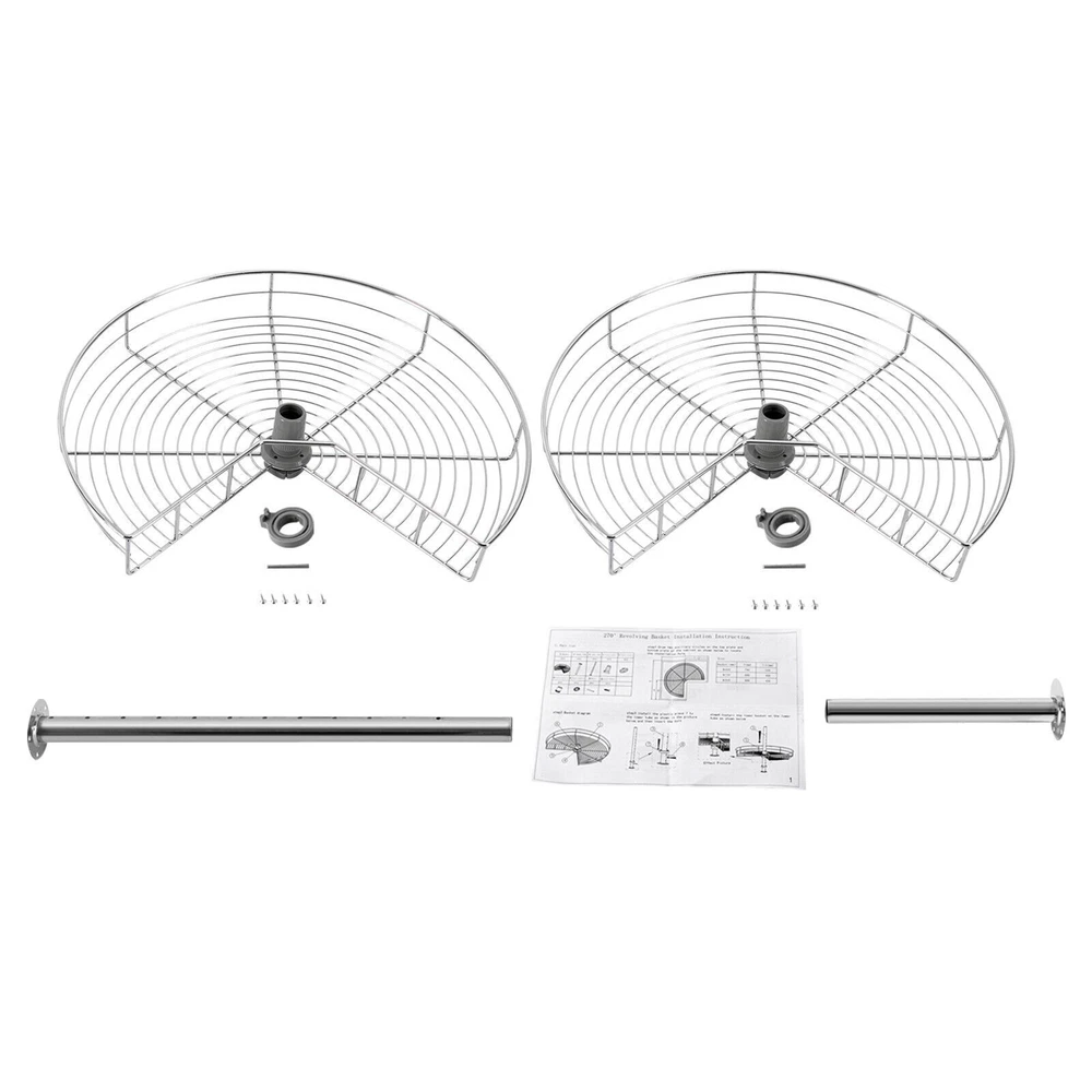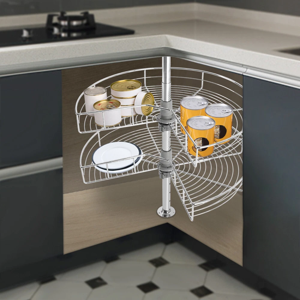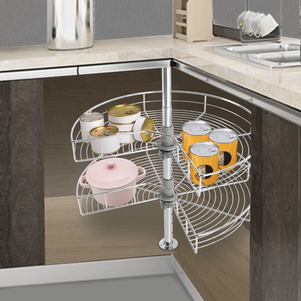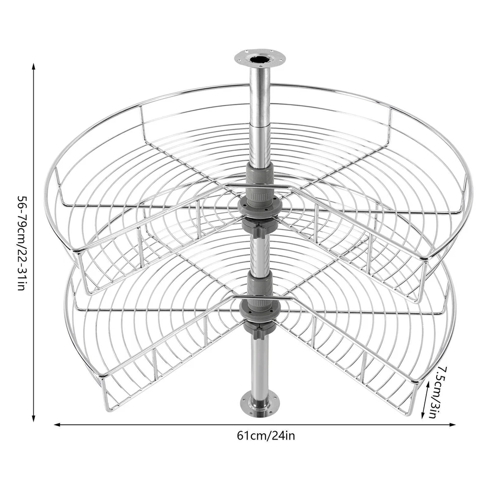 Improve Space Utilization: It makes full use of the wasted space in the corner of the cabinet so that you can easily access all the units in the kitchen, making every corner that we easily ignore become our storage space. Large Capacity: This kidney-shaped lazy corner cabinet organizer has two storage shelves with a diameter of 24 inches for sorting high bottles, cups, pans, storage cans, utensils and food. Such a large capacity can meet your daily storage needs. High Load-bearing Capacity: Each rack is woven by multiple iron rods, so it is more solid and stable, so that the product can bear 30 pounds of weight, and can easily bear kitchen appliances. Easy to Access: It uses two rotating frames. You can easily rotate it to 270° without much noise 24" Kidney Chrome 2-Shelf Lazy Susan Kitchen Base Cabinet Corner Organizer Rack Description Description Instead of complaining about the lack of space in your kitchen, you should find ways to expand the space that can be used. Our kidney-shaped lazy corner cabinet organizer makes effective use of the corner space in your kitchen, making spaces that used to be unreachable now easy to handle. All you have to do is rotate the racks without stretching your arms and the contents are instantly in front of you. It easily organizes your countertop items without taking up any countertop space, which is low-profile and down-to-earth! Key Features Improve Space Utilization: It makes full use of the wasted space in the corner of the cabinet so that you can easily access all the units in the kitchen, making every corner that we easily ignore become our storage space. Large Capacity: This kidney-shaped lazy corner cabinet organizer has two storage shelves with a diameter of 24 inches for sorting high bottles, cups, pans, storage cans, utensils and food. Such a large capacity can meet your daily storage needs. High Load-bearing Capacity: Each rack is woven by multiple iron rods, so it is more solid and stable, so that the product can bear 30 pounds of weight, and can easily bear kitchen appliances. Easy to Access: It uses two rotating frames. You can easily rotate it to 270° without much noise, then take or place items without stretching your arms. Great Durability: It is made of iron material to enhance durability and robustness. The two racks have a classic chrome finish, which contributes to their beautiful and stylish appearance, corrosion protection and rust prevention. Adjust the Height Freely: The height of the tube can be adjusted at will between 22-31inch to adapt to the cabinet space of different heights. The height of two independent racks can also be moved up and down to fix to different hole positions to adapt to different item sizes so that you can make the most of it. Easy to Install: By providing mounting holes and a set of mounting screws, it can be easily installed on the left blind or right blind cabinet. For your convenience, we also provide the installation instruction to help you install independently in a short time. Easy to Clean: The chrome-plated surface is very smooth, so simply wipe it with a soft cloth to maintain its clean appearance. Details Heightened Guardrail: Both racks are designed with 3inch heightened guardrail to effectively prevent your items from slipping. Round Edges: The edges of the two shelves are polished into round edges, which is not only fashionable but also effective to prevent scratching. Application You can install it in various cabinet corners to place pots and pans, containers, spice jars, etc. Specification Material: Iron Color: Silver Finish Type: Chrome Plated Max Load-bearing Capacity: 13.6kg/30lbs Package Size: 62*52*18cm/24.41*20.47*7.09in Each Rack Diameter: 61cm/24in Height of Each Layer: 7.5cm/3in Total Height: 56-79cm/22-31in Gross Weight: 5kg/11.02lbs Net Weight: 4.5kg/9.92lbs Package Included 2* Racks 1* Upper Tube 1* Lower Tube 1*English Manual All Accessories for Assembly Notes Please allow the slight color difference caused by the shooting light and 1-3 cm error due to manual measurement, and make sure you do not mind before ordering. Payment Delivery details Terms of sales About us Contact us Payment We accept ebay payment 。 Fees such as import duties, taxes are not included in the item price or shipping costs. These charges are the buyer's responsibility. Delivery details Shipping: 2-9 working days to: USA Terms of sales We maintain high standards of excellence and strive for hundred percent customer satisfaction. Feedback is very important to us. We hope that you contact us immediately before you give neutral or negative feedback, so that we can address your concerns. It is impossible to address issues if we do not know about them! About us Your satis faction is our ultimate goal. We work hard to earn your trust and future business. Our certified technicians have tested each item before shipping. The unit comes with 1 year limited warranty on all manufacturing defects. a) If you receive a defective item, you may return it or ask for a discount. Please contact us within 14 days after you receive the package. b) What you returned must be intact and in its original packaging as re? u. Customer is responsible for shipping costs of the returned item. c) We will cover the cost of shipping back t with the shipping rate indicated in the registration page. We will send you a new unit or refund the full payment you paid. Thank you. Contact us Business Hour Business Hour: Monday To Friday: 8:30 AM to 5:00 PM (Beijing China time) Due to time zones, our reply to your questions may not be immediately. But within above working time, we will reply your email within 24 hours. If it's non-workdays, please kindly be patient and wait till Monday. Please contact us with ebay message. Please feel free to contact us if you have any questions. Monday To Friday: 8:30 AM to 5:00 PM (Beijing China time) Due to time zones, our reply to your questions may not be immediately. But within above working time, we will 