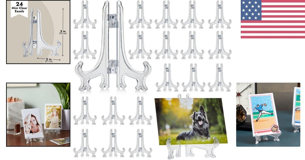 24 Pack 3-Inch Clear Mini Easels - Perfect for Trading & Baseball Card Displays ‹ › ‹ › ‹ › ‹ › ‹ › ‹ › ‹ › ‹ › ‹ › ‹ › ‹ › 24 Pack 3-Inch Clear Mini Easels Perfect for Trading & Baseball Card Displays Features: Showcase your photos, artwork, sports trading cards, collectibles, and baseball cards. Made from high-quality, sturdy plastic for reliable support. Great for table settings to hold table numbers or name cards at weddings, banquets, and special celebrations. Dimensions: Each easel measures 3 x 4 inches when unfolded. Comes in a convenient pack of 24 stands for versatile displaying options. Benefits: Enhances the presentation of your cherished moments and collectibles. Ideal for both personal and professional use, including events and showcases. Compact and lightweight, perfect for bookshelves, tables, and desks. Sturdy enough to support not just cards, but small plates and coasters as well. Versatile design complements various display themes and occasions. Why Choose Our Mini Easels? Transform your displays into stunning visual statements with our 24 Pack of 3-Inch Clear Mini Easels. Perfectly sized to showcase everything from trading cards to table settings at prestigious events, these easels are crafted from high-quality plastic, ensuring stability and elegance. Whether it's for a wedding reception or your home collection, these mini easels offer the perfect balance of functionality and style. Order your pack today and elevate your display experience effortlessly! Watch our video to see these mini easels in action! Shipping Free & Fast Shipping - We offer free shipping to most of the USA with a normal delivery time of 3-7 days. However, due to the current situation, additional delivery time (up to 3 weeks) may be required for some items. Alternative Carriers - We may use alternative carriers (e.g. USPS, FedEx, UPS, etc.) to ensure your package arrives safely and on time. Due to the use of multiple carriers, we are unable to provide a tracking number automatically. Handling Time - Orders are processed and shipped within 1-2 business days of receiving cleared payment. Shipping Restrictions - Shipping to Alaska, Hawaii, Puerto Rico, Guam, and other US territories may incur shipping charges or delivery restrictions. Please contact us before ordering, or your order can be refunded/cancelled. State Restrictions - There may be restrictions based on your state of purchase. For example, certain items may not be shipped to California due to state regulations. Contact for Tracking Updates - If you require tracking updates or have any concerns about the delivery of your order, please feel free to contact us, and we will be happy to assist you. Return 30-Day Hassle-Free Returns - We want you to be completely satisfied with your purchase. If you are not, you can return the item within 30 days of receiving it for a full refund or exchange. Easy Return Process - To start a return, simply contact us and we will provide you with a prepaid return shipping label and detailed instructions. Restocking Fee - There are no restocking fees for returns. However, the buyer is responsible for return shipping costs if the return is not due to a seller's error. Refund Processing Time - Refunds will be processed within 5 business days of receiving the returned item in its condition. Payment We accept all major credit cards, PayPal, and Apple Pay for your convenience. Your payment information is secure and encrypted to ensure a safe and seamless transaction. Please complete your payment within 3 days of purchase to avoid any delays in shipping. Feedback Your feedback is extremely important to us. We strive to provide the best products and customer service possible. If you are satisfied with your purchase, please take a moment to leave us a positive review. If you have any concerns or issues with your order, please contact us before leaving negative feedback. We are committed to resolving any problems and ensuring your satisfaction. Contact Us If you have any questions or concerns, please feel free to out to our customer support team. You can contact us through the eBay messaging system. We are available Monday to Friday, 9:00 am to 5:00 pm EST, and we will do our best to respond to your inquiry within 24 hours. Buy it now and enjoy a pleasant shopping experience! Suitable for Photo Size: 3 inches Item Weight: 0.1 kilograms Unit Quantity: 24 Features: Adjustable,Durable,Easy Installation,Multi-Purpose,Great for table settings,Holds trading cards,Holds pictures,Sturdy enough for small plates,Holds name cards,Perfect for wedding receptions,Ideal for banquets,Suitable for catering events,Great for special celebrations Type: Display Easel Item Height: Mini Easel Display Stand Item Width: Mini Easel Display Stand Item Length: Mini Easel Display Stand Material: Plastic Size: Small Color: Clear Style: Modern Mounting: Free Standing Department: Adults Finish: Painted