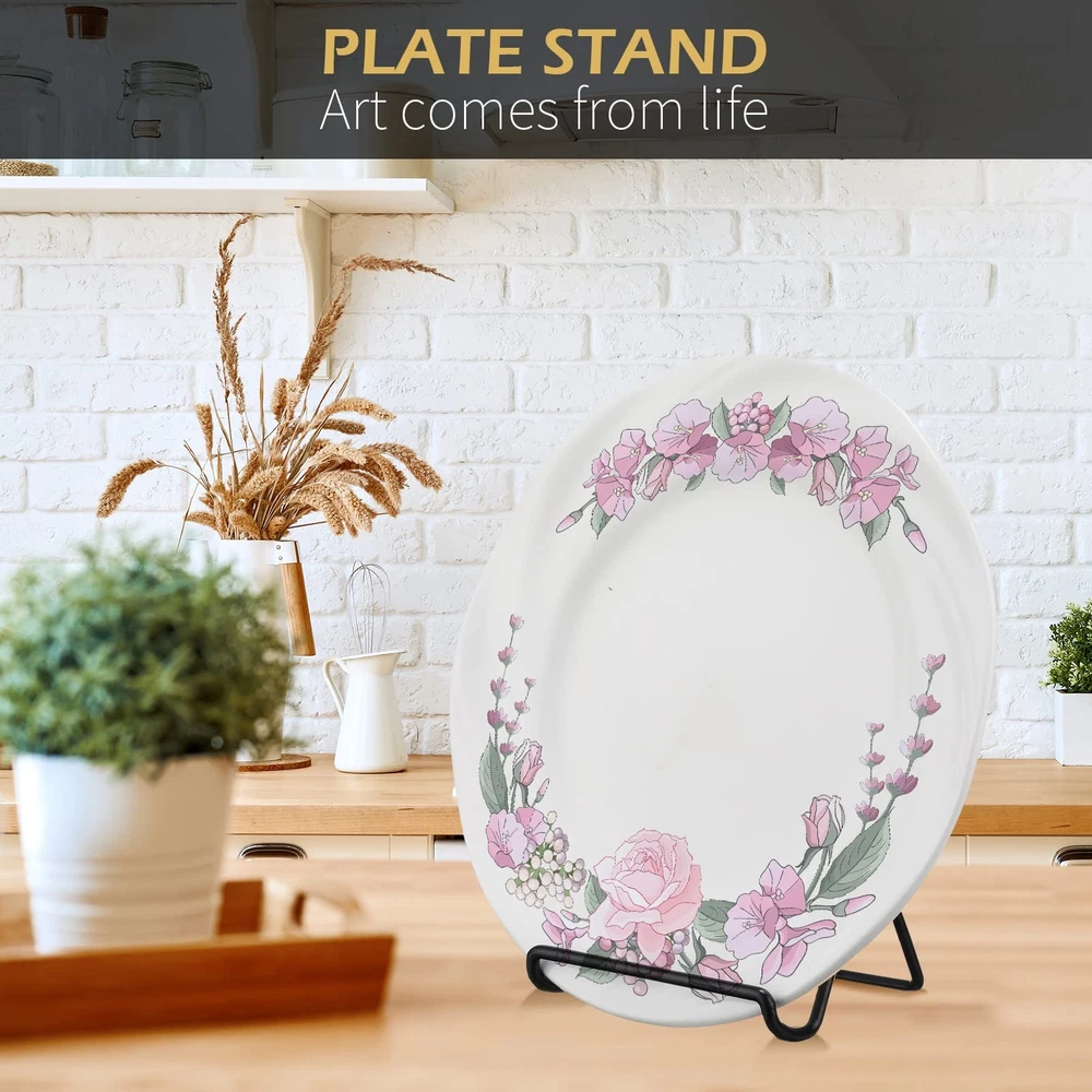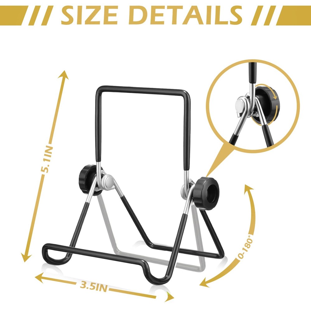 Features: Nice gift choice: The plate stand is qualified and useful, you can send it as a gift for your family, friends, students, teachers, classmates, coworkers, helping them to organize the paintings, books, plates, pictures and so on. Simple and delicate design: The wire stands adopt classic black colors and matched with silver, look simple and elegant. Meanwhile, the picture holder stand can be adjusted and folded, giving you a convenient using experience. Specifications: Material: metal Color: black and silver Size: 13 x 9 cm/ 5.12 x 3.54 inches Package includes: 24 x Adjustable easel stands Notes: Manual measurement, please allow slight errors on size. The color may exist a slight difference due to different screen displays. Package List: you will receive 24 pieces of book holders for display, 3 metal rods can be folded and adjusted to help you place your books, plates, leaflets, pictures and so on, meeting your different using and replacement demands Quality Material You Can Count: this picture stands for display is made of quality and strong metal material, reliable and strong, not easy to bend, with nice load bearing performance, the can adjustable tabletop book rack is suitable for placing your books, paintings, plates safety Portable and Easy to Use: the frame holder stand is designed with simple lines; It is not only a simple desk bookshelf, but also suitable for home decoration and commercial store decoration; The book easel display stand measures about 13 x 9 cm/ 5.12 x 3.54 inches, convenient and portable, easy to fold into the bag Foldable and Adjustable: there is a screw on the plate display stands, by turning the screw you can fold and adjust the frame, you can according to your own preferences or range of horizontal, vertical placement of your products, the picture stand can provide you with 0-180 degrees arbitrary angle adjustment Wide Range of Usages: the adjustable plate stands are practical and simple designed, you can use the them to display your items, such as paintings, pictures, cards, plates, records, books, etc., suitable for stores, events, exhibitions, offices, classes, home and so on