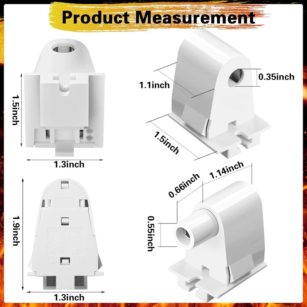 Applicable Ranges: the maximum wattage of the fluorescent tombstone is 660W and the maximum voltage reaches 600V, which can adapt to different kinds of T8, T10, and T12 single pin fluorescent tubes Stable and Reliable: the single bulb light fixture is made of PBT material, flame resistant, heat resistant, wearproof, and safe to use, which will not cause flame hazard, so you can use it with confidence Easily Snapping in: these fluorescent lampholder can directly connect to 18 gauge power wires, applying for both dual end power and single end power tubes; You can easily snap the tube into the mouth and complete the installation Proper for Fluorescent and LED Bulbs: the fluorescent lamp holder is suitable for FA8 single pin light tubes and 8 ft single pin LED bulbs, an efficient and nicely matching lamp replacement part for your broken lamp holders A Large Number of Quantities: the package includes 24 pairs tombstone base holder socket connectors for T8, T10, T12 single pin fluorescent tubes, sufficient quantity to meet your needs on retrofitting and replacements