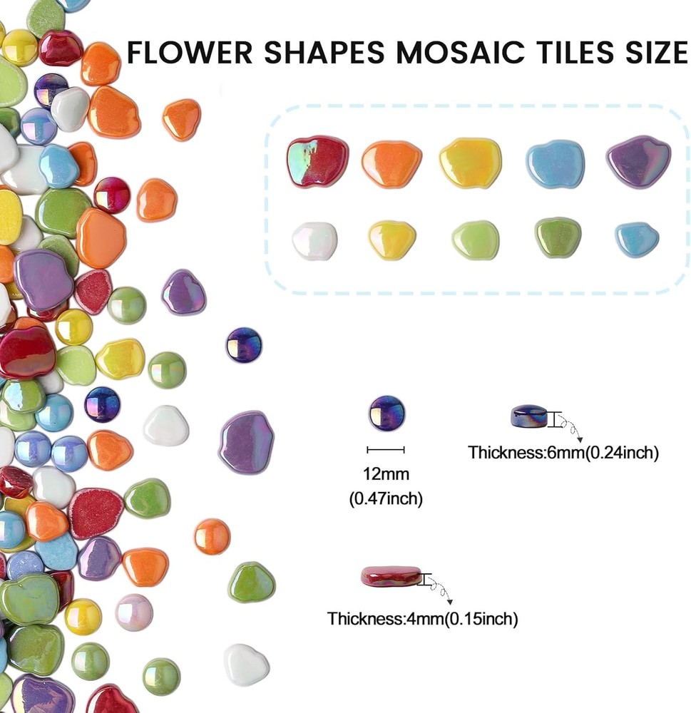 Free eBay listing template designed by dewiso.com Youway Style Flower Mosaic Tiles for Crafts Bulk,1LB Iridescent Mosaic Tiles Supplies, Petal Mosaic Pieces for Garden Decoration,DIY Glass Mosaic Crafts FREE AND FAST SHIPPING! About this item Premium Material: Made of glass; mosaic glass pieces suitable for mosaic art and crafts works Color Variety: Versatile color mix, including blue, green, yellow, orange, red, white and more Petal Shapes:Multi Petal Shapes,454 g floral glass tiles for mosaics can make up flowers, blossom; smooth edge and save time in cutting material Iridescent Finish: Iridized surface, shiny and attractive flower tile; special accents in mosaic making projects Wide Application: Suitable for mosaic craft kits like mosaic coaster, mosaic photo frame, mosaic lamp; DIY mosaic kits for adults like mosaic stepping stone, mosaic art works, mosaic table; Holiday mosaic decoration like halloween and christmas home decorations Product We offer a 30-Day Return Policy on items which you are not completely satisfied with. You have the option for a full-refund or an exchange of the item. No returns are available on items shipped outside of the US . Shipping We offer Free Shipping to the US and ship within 2 business days of payment, usually sooner. We use UPS express shipping. That's why your products are usually delivered within 3 days . Contact We try our very best to make sure every customer is completely satisfied. If there's a problem , message us! We're happy to help. 24/7 live chat available.