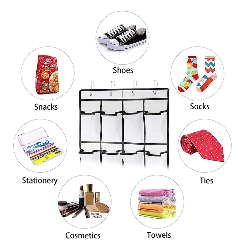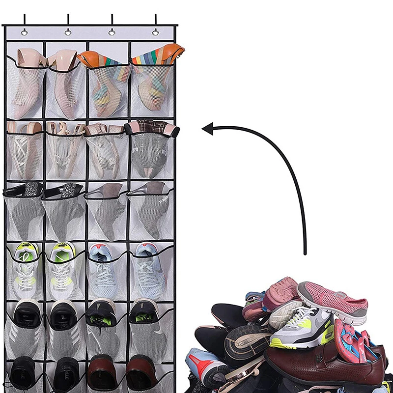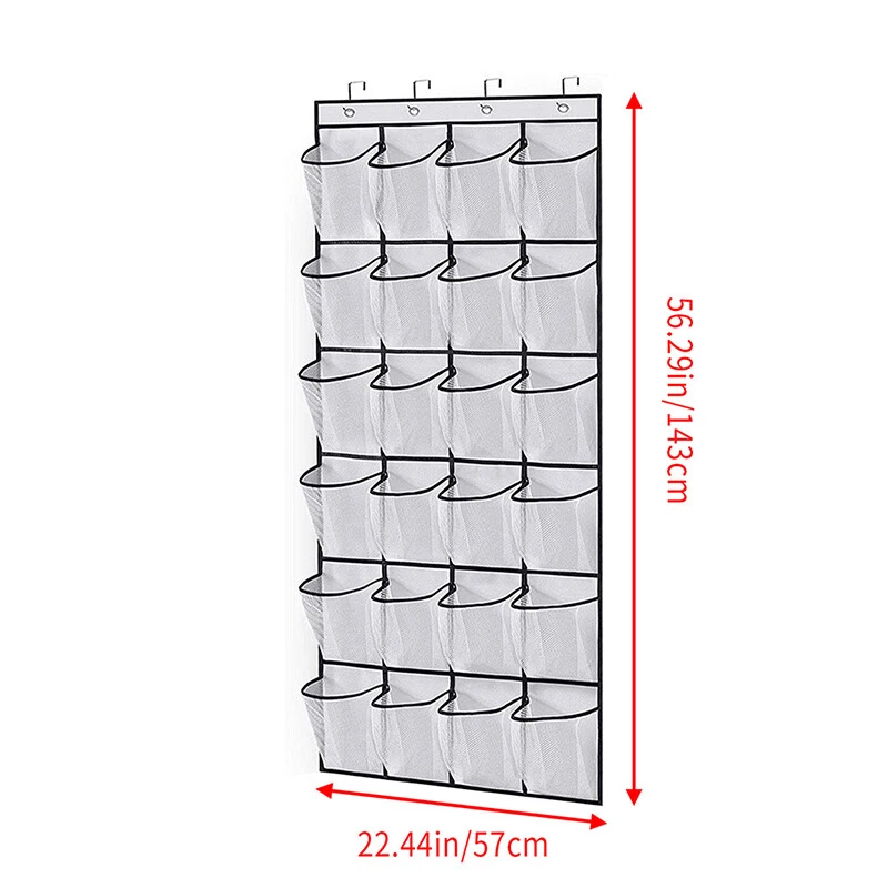 Description: Product Name: Storage Hanging Bag Material: Non-woven Fabric Size: 43*57cm Color: White Pockets: 24 Features: There are 24 roomy pockets more convenient than 20 pockets shoe organizer. Each pocket measures 7.8"H x 5.4"W x up to 2" depth. Very spacious for shoes like sandals, running shoes . The mesh pockets make it easy to see items even in a dim closet. There are 4 holes in the top and 4 hooks fit them. It can be fold to small size, works well for travel cruise cabin door, bifold door. Package includes: 1 Pcs Storage Hanging Bag Notes: 1. Please allowed 1-3mm differences due to manual measurement, thank you! 2. Due to the difference between different monitors, please understand that the picture may not reflect the actual color of the item