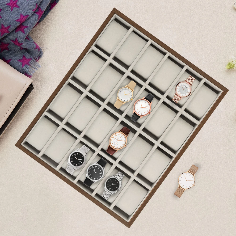 Features: Made of wooden watch display tray with exquisite workmanship. Tastefully protects, stores, and organizes your watches,bracelet. Best for displaying your watches whatever in a shop or on your dressing table. 24 Slots Wood Watch Box Jewelry Storage Case Organizer Display Box Holder Tray Specification: Material:wooden+Flannel 24 Slots: Length:33cm/12.9" Width:39.8cm/15.7" Height:4.5cm/1.8" [Conversion: 1cm=0.3937 Inch, 1 Inch=2.54 Cm] Features: Made of Wooden Watch Display Tray with Exquisite Workmanship. Tastefully Protects, Stores, and Organizes Your Watches,Bracelet. Best for Displaying Your Watches Whatever in a Shop or on Your Dressing Table. Package Included: 1 X Watch Display Tray(Watch Not Included) Payment Delivery details Terms of sales About us Contact us Payment We accept ebay payment 。 Fees such as import duties, taxes are not included in the item price or shipping costs. These charges are the buyer's responsibility. Delivery details Shipping: 2-9 working days to: USA Terms of sales We maintain high standards of excellence and strive for hundred percent customer satisfaction. Feedback is very important to us. We hope that you contact us immediately before you give neutral or negative feedback, so that we can address your concerns. It is impossible to address issues if we do not know about them! About us Your satis faction is our ultimate goal. We work hard to earn your trust and future business. Our certified technicians have tested each item before shipping. The unit comes with 1 year limited warranty on all manufacturing defects. a) If you receive a defective item, you may return it or ask for a discount. Please contact us within 14 days after you receive the package. b) What you returned must be intact and in its original packaging as re? u. Customer is responsible for shipping costs of the returned item. c) We will cover the cost of shipping back t with the shipping rate indicated in the registration page. We will send you a new unit or refund the full payment you paid. Thank you. Contact us Business Hour Business Hour: Monday To Friday: 8:30 AM to 5:00 PM (Beijing China time) Due to time zones, our reply to your questions may not be immediately. But within above working time, we will reply your email within 24 hours. If it's non-workdays, please kindly be patient and wait till Monday. Please contact us with ebay message. Please feel free to contact us if you have any questions. Monday To Friday: 8:30 AM to 5:00 PM (Beijing China time) Due to time zones, our reply to your questions may not be immediately. But within above working time, we will reply your email within 24 hours. If it's non-workdays, please kindly be patient and wait till Monday. Please contact us with ebay message. Please feel free to contact us if you have any questions.