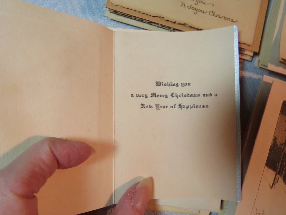 Lot of 24 vintage Christmas cards are from the 1920s to 1930s or so and are unused. There are 4 each of 6 different design cards, all with Christmas scenes, I think they are block prints, but not sure. The cards do not have any marks on them to show what company made them or where they were made. They all have the original envelopes. The cards are from the 1930s or so and are unused, but they do have some discoloration from age and the envelopes have dark areas where the glue has darkened the paper. A few cards are not flat, the horizontal edges are a bit curled.