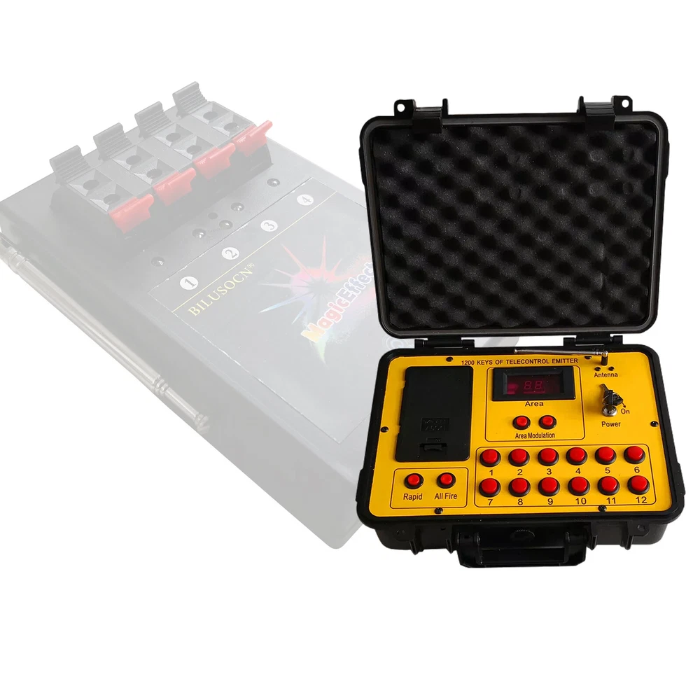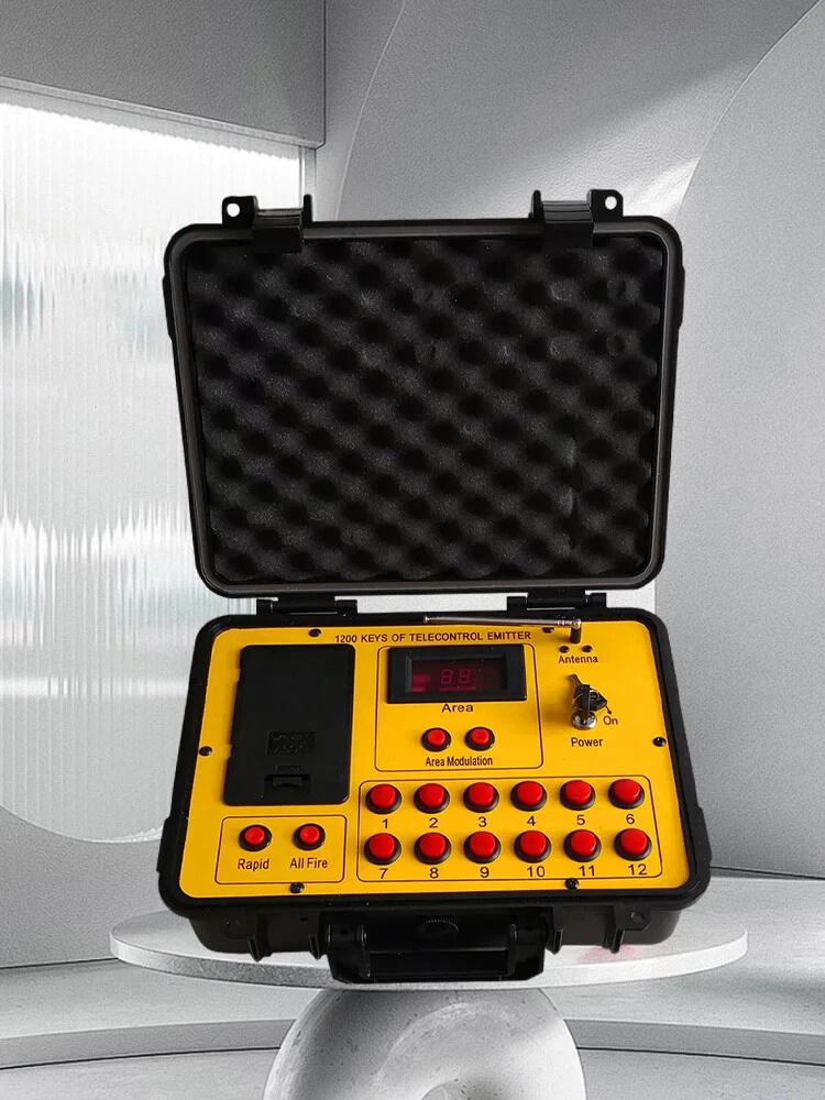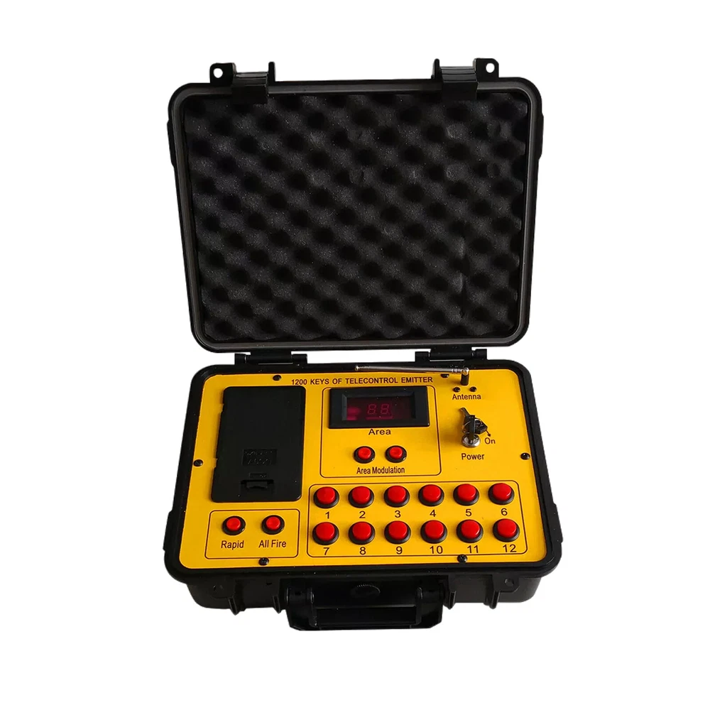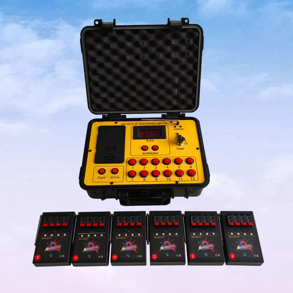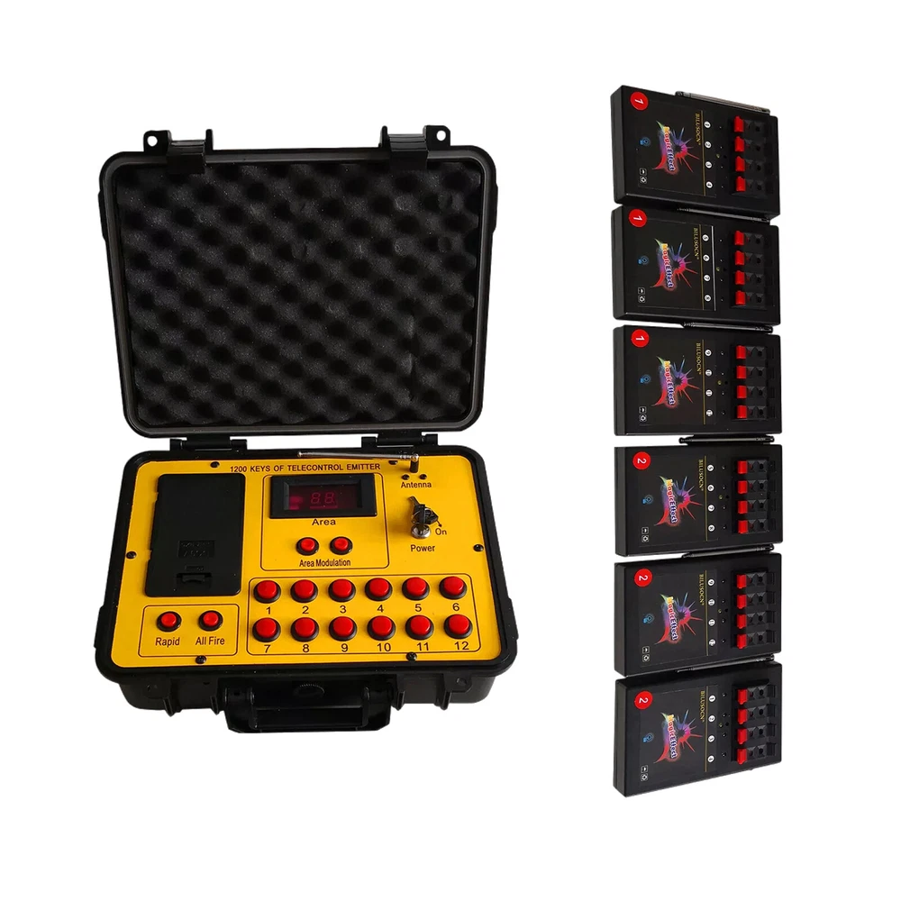 Product Description Long distance control 24 cues Wireless Fireworks Firing system,1200-Channel Remote Telecontrol, Come with Package Case Electronic Remote control Programmable Firing Equipment Waterproof Thank you for purchasing our 24 channel remote firing system. We are sorry we could not include batteries but this is not allowed when shipping by air freight. However, we are sure you will appreciate the value of our product. Your purchase includes 6 receivers and one transmitter to give you a total or 24 channels. Power: Receiver: 4 AA batteries Transmitter: 6pcs battery Range: 300meters (984 feet) The receivers are very economical. They can be used independently. If one fails, the others will continue to operate. This system is expandable. Simply purchase more receivers from the website below. The receivers come pre-programed for your convenience however they are reprogrammable. Locate a small hole in the center of the receiver and insert a paperclip or similar object. The receiver will flash then press a corresponding key on the remote. Now the receiver has been paired with the remote. Caution! 1. Handle your product with care avoid shaking and dropping it. 2. Keep the receiver as far away from your fireworks as possible to avoid damage. 3. Remove batteries before storage. 4. Store your product in a clean dry area away from containments. Frequency 433MHz This device complies with part 15 of the FCC Rules. Operation is subject to the following two conditions: (1) This device may not cause harmful interference, and (2) this device must accept any interference received, including interference that may cause undesired operation. Payment: The buyer is responsible for any applicable import duties and local taxes. Usually there's not any charges for small parcel. But please verify with your customs before making your purchase. Return: If you are not completely satisfied with your purchase, simply return the item to us in its original condition within 14 days of receipt. We will issue a full refund on receipt, excluding the return delivery charge. About US: We are a professional foreign trade e-commerce company, mainly engaged in foreign trade B2C platform business. Our foucs includes instrument meters and accessories, household items, car accessories, Led lighting etc. Our company is energetic and creative and wish to bring you great service and amazing experience.