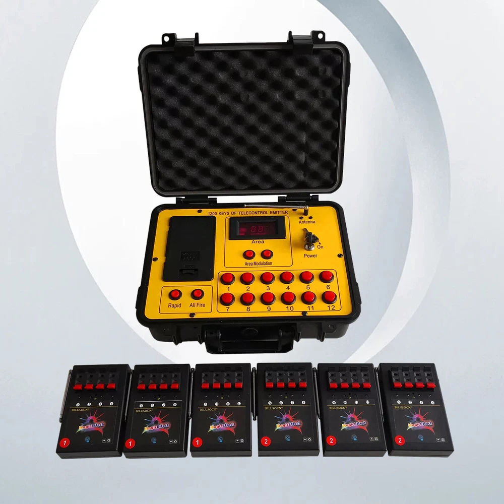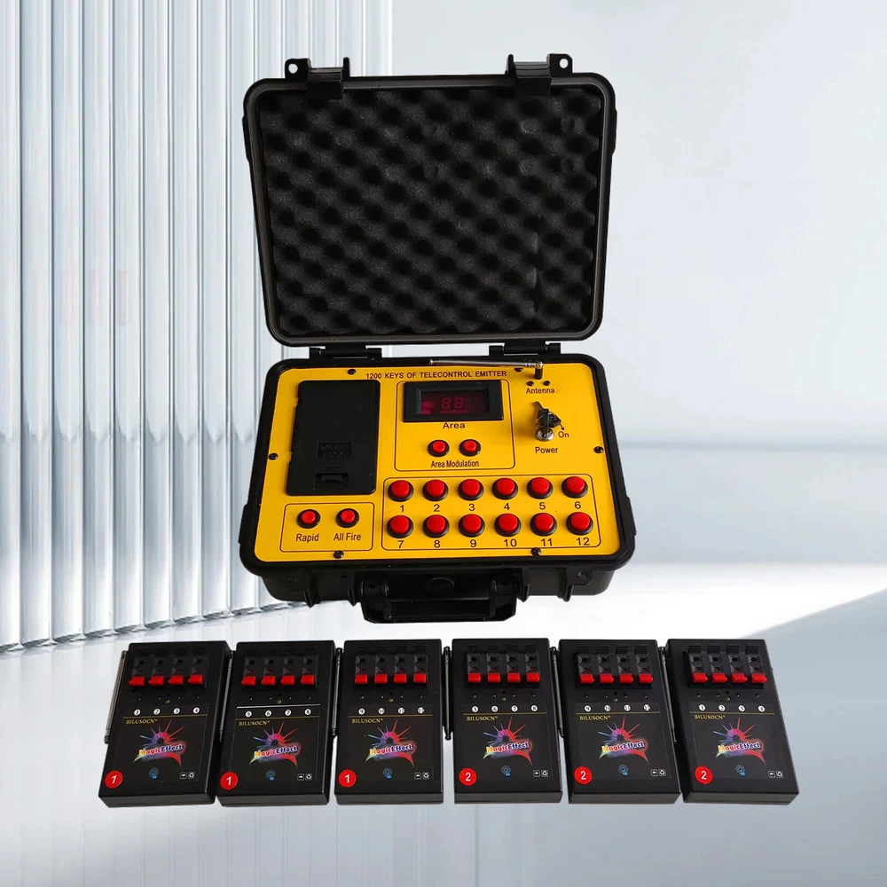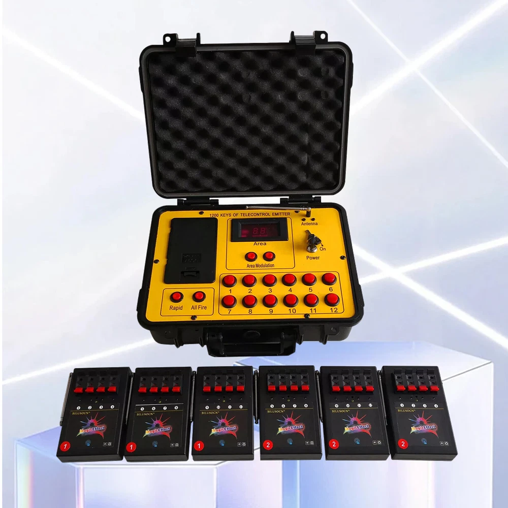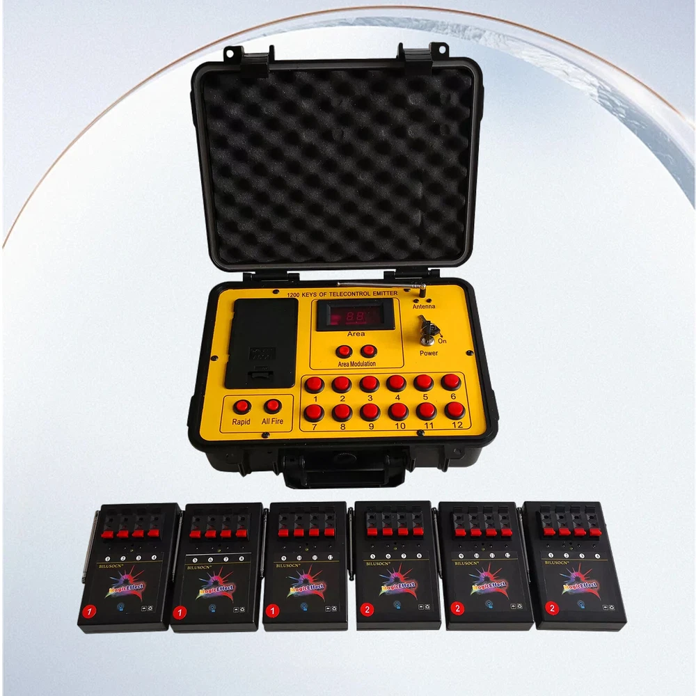 Product Description Long distance control 24 cues Wireless Fireworks Firing system,1200-Channel Remote Telecontrol, Come with Package Case Electronic Remote control Programmable Firing Equipment Waterproof Thank you for purchasing our 24 channel remote firing system. We are sorry we could not include batteries but this is not allowed when shipping by air freight. However, we are sure you will appreciate the value of our product. Your purchase includes 6 receivers and one transmitter to give you a total or 24 channels. Power: Receiver: 4 AA batteries Transmitter: 6pcs battery Range: 300meters (984 feet) The receivers are very economical. They can be used independently. If one fails, the others will continue to operate. This system is expandable. Simply purchase more receivers from the website below. The receivers come pre-programed for your convenience however they are reprogrammable. Locate a small hole in the center of the receiver and insert a paperclip or similar object. The receiver will flash then press a corresponding key on the remote. Now the receiver has been paired with the remote. Caution! 1. Handle your product with care avoid shaking and dropping it. 2. Keep the receiver as far away from your fireworks as possible to avoid damage. 3. Remove batteries before storage. 4. Store your product in a clean dry area away from containments. Frequency 433MHz This device complies with part 15 of the FCC Rules. Operation is subject to the following two conditions: (1) This device may not cause harmful interference, and (2) this device must accept any interference received, including interference that may cause undesired operation. Payment: The buyer is responsible for any applicable import duties and local taxes. Usually there's not any charges for small parcel. But please verify with your customs before making your purchase. Return: If you are not completely satisfied with your purchase, simply return the item to us in its original condition within 14 days of receipt. We will issue a full refund on receipt, excluding the return delivery charge. About US: We are a professional foreign trade e-commerce company, mainly engaged in foreign trade B2C platform business. Our foucs includes instrument meters and accessories, household items, car accessories, Led lighting etc. Our company is energetic and creative and wish to bring you great service and amazing experience.