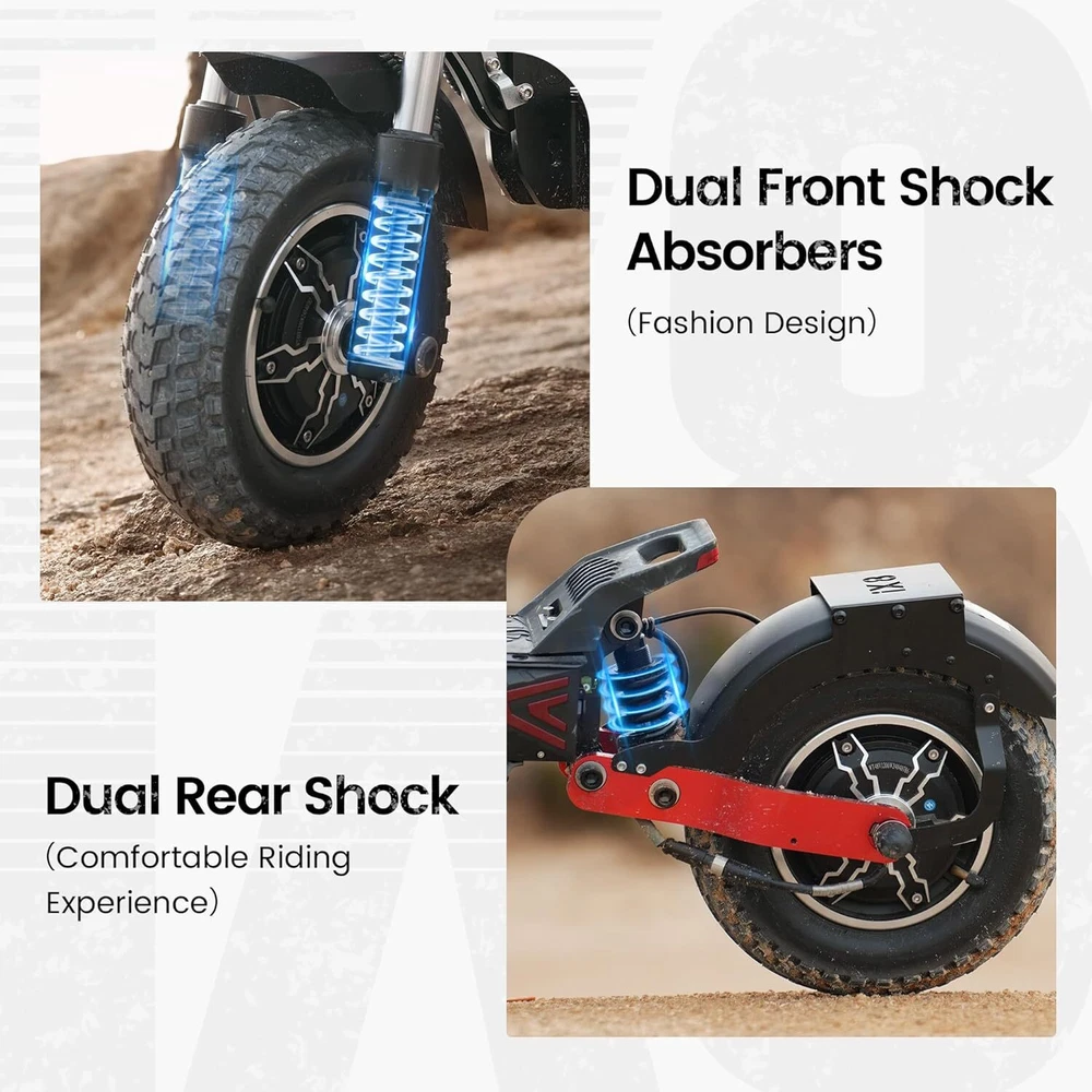 2400W Folding Electric Scooter 38Mph Max Speed 12'' Off-Road Tires 8 Speed Modes Description: 【Versatile Speed and Dual Motor Power】 Experience ultimate flexibility with dual-drive switching. Single drive speeds range from 9 to 31 mph, while dual drive delivers exhilarating speeds up to 38 mph. Powered by dual 1200W motors, effortlessly conquer steep hills and challenging terrains.Additionally, it comes with a custom waterproof black Y-shaped bag for added convenience and style 【Long-Lasting Battery and Range】 Equipped with a robust 48V 20Ah battery, our adult scooter electric offers a reliable range of 40-43 miles on a single charge. Perfect for longer commutes and extended adventures, ensuring you stay powered throughout your journey. It is certified to UL2272 【Advanced Lighting and Safety Features】 Ride safely day or night with the U5 round headlight, turn signals on both sides of the deck, colorful side light strips, and a safety tail light. The escooter's front and rear disc brakes, along with electronic power cut-off brakes, provide reliable and responsive stopping power 【Comfort, Control, and Durability】 The 12-inch inflatable off-road patterned tires and front sleeve plus rear red spring suspension offer excellent grip and shock absorption for various terrains. Designed to support up to 330 lbs (150 kg), our scooter is built for durability and strength 【Why Choose iScooter】 Because we prioritize quality and technical excellence in every electric scooters adult we produce. With our one-piece pre-installation design, you won't need to assemble anything upon receiving your iX8. Plus, we offer a 360-day or 180-day warranty on different parts, get in touch with us for fast and professional service – your satisfaction is our priority. Before embarking on your first ride, make sure to fully charge your e scooters for optimal performance FAQS: At iScooter Electric we are passionate about providing dedicated customer support, so you get total peace of mind with every electric scooter. Q1.How long does it take to deliver? The United States delivery time is 2-5 business days. We are working hard to ensure all orders arrive in a prompt and timely manner. Countries Shipping Time Ship By Western United States 2-4 Business Days UPS / FEDEX Eastern United States 3-5 Business Days UPS / FEDEX Q2:The front light and screen will be automatically shut off? A:To save and protect the battery, when the scooter is stationary for 5-10 minutes, it will automatically enter power-save modes and turn off. Q3:Unable to accelerate? A:1. For your safety, by default, we designed for this, "Non-zero startup", it only needs one initial speed to start. Or you can connect "Minibot" APP, then, if you turn on Zero Start. 2. Error code (visible on LCD), please contact us to replace a throttle. Q4:Motor hall Faults? A:Take off the screws on the bottom of the scooter, then check the controller and replug the hall wire connecting terminal. Q5:Controller Faults? A:Take off the screws on the bottom of the scooter, then check and replug the controller connecting terminal. Q6:Unable to power on? A:1. Unplug your charger from the port, then click the power button to turn on your scooter. 2. Use the multimeter to measure the voltage of the battery, if the voltage is from 30-42V, it means there is no problem with the battery. If the voltage is lower than 30V, the scooter maybe not be turned on. Q7:Not charging? A:1. Check your charging cable and charging port for signs of damage, like breakage. Don't use damaged accessories. 2. Use the 220V ACA of the multimeter to measure the voltage of the charger and charger port, if there isn't reading, your scooter probably needs to replace the charger or charger port. if there is a reading, it probably needs to replace the battery. Q8:Scooter seems to make noise? A:It may be the disc brake noise. To remove the disc brake noise:First make sure the scooter is turned off. 1. Loosen two screws on the pump (not the screw on the rocker). 2. Adjust the position of the disc brake pump to ensure that the brake disc is in the middle of the two brake pads. 3. Keep the brake disc and brake pad not touching each other. 4. Hold the disk brake pump in the desired position, then retighten the screws to the pump. Or contact customer service to get an operation video. Q9:The speed and range are not as same as described? A: The speed and range will be effected by temperature of environment, the condition of road, the weight of rider(including all belongings ) Package Included: 1 x iX8 Electric scooter 1 x Charger 1 x Waterproof black scooter bag 6 x Screws 1 x Allen Wrench 1 x Manual 2 x NFC Key Tools: Adjustable wrench, screws Payment Delivery details Return Feedback Contact us Payment * We accept PayPal only * Please verify your address during checkout. We are not responsible for any wrong or undeliverable addresses. * If there is anything wrong with the checkout or you need us to combine the shipping, please kindly feel free to contact us. Delivery details 1. Items are generally shipped out the next business day after your payment has been cleared (Sat. Sun. excluded.) 2. The shipment usually takes 3-5 business days (Saturday and Sunday excluded), if you need the item urgently, please contact us for detail before purchase. * We Ship to Payment address ONLY. So please confirm shipping Address prior to your payment. We are not responsible for any wrong or undeliverable addresses. Return Products with quality problem in 30 days can be returned and refund /replaced (Item in resalable condition) Products with quality problem in 1 year can be returned and repaired. (For more details, please read our warranty policy). Feedback Contact us if you have any question, please give us a chance to serve you, negative feedback couldn’t solve anything, communication Please! Contact us Welcome back to our store! Customers satisfaction is our top priority.