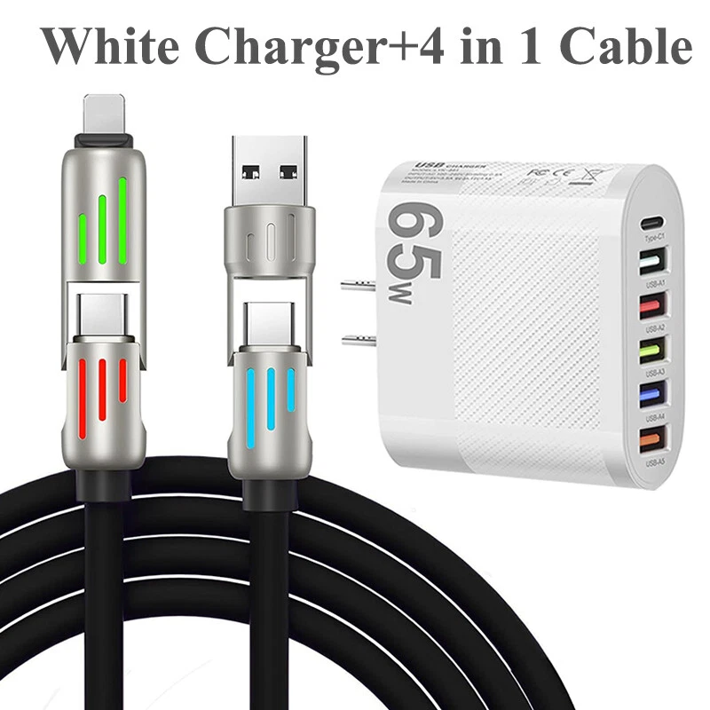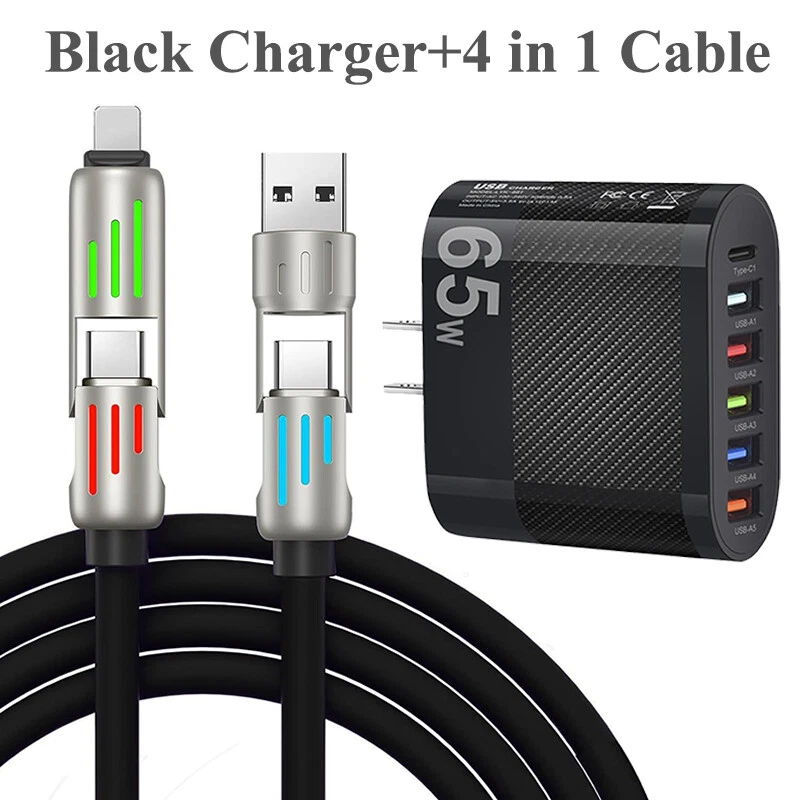 240W Fast Type C Wall Charger & 6FT 4 in 1 Cable For iPhone 16 Pro Max 15 14 13