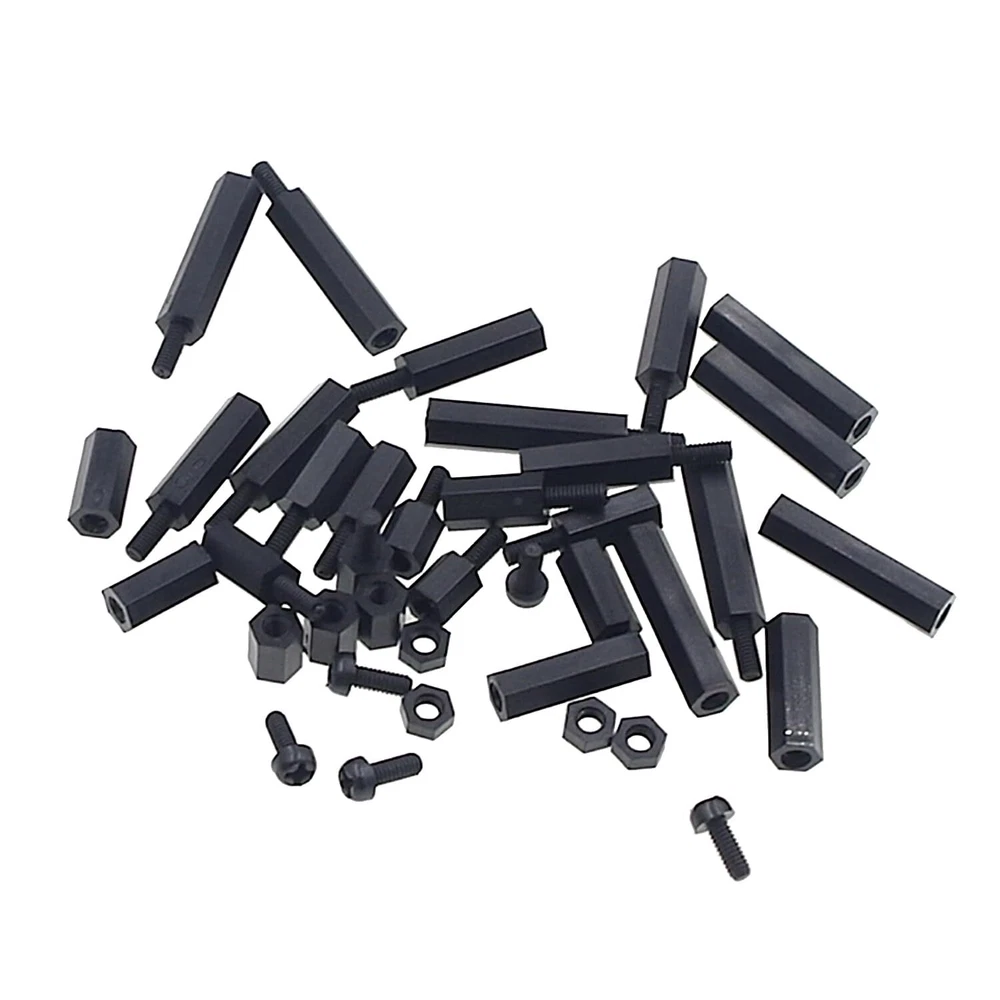 Product description: M2.5 Threaded Hex Male-Female Standoff Spacer Screw Nut Assortment Kit. Material: Nylon. 100% new, RoHS compliant. Package include: M2.5 Hex Male-Female Standoff Spacer Screw Nut total 240 pieces. Come with the plastic box: List(Type,Length / Thread,Quantity): Male to Female 6mm+6mm, M2.5 15pcs Male to Female 10mm+6mm, M2.5 15pcs Male to Female 15mm+6mm, M2.5 15pcs Male to Female 20mm+6mm, M2.5 15pcs Female to Female 6mm, M2.5 15pcs Female to Female 10mm, M2.5 15pcs Female to Female 15mm, M2.5 15pcs Female to Female 20mm, M2.5 15pcs Nylon Nuts M2.5 60pcs Nylon Screw M2.5x6mm 60pcs Packing contents: 240pcs M2.5 Nylon Hex Standoffs Screws Nuts Packed in a plastic box. M2.5 Black Nylon Hex Spacers Standoffs/ Screws/ Nuts Assorted Kit;Total 240 Pieces Come With the Plastic Box Screw Thread: M2.5/(2.5mm), Thread Pitch: 0.45mm;The Male-Female Standoffs Different length:6mm+6mm(15pcs);6mm(15pcs);10mm+6mm(15pcs);10mm(15pcs);15mm+6mm(15pcs);15mm(15pcs);20mm+6mm(15pcs);20mm(15pcs).and Nylon Screws(60pcs)/Nuts(60pcs); The Nylon Standoffs Kit For FPV Quadcopter Building,Arduino,Raspberry-Pi or other projects All Products are Made of Nylon, Strong, anticorrosive. Good Quality.Easy to install