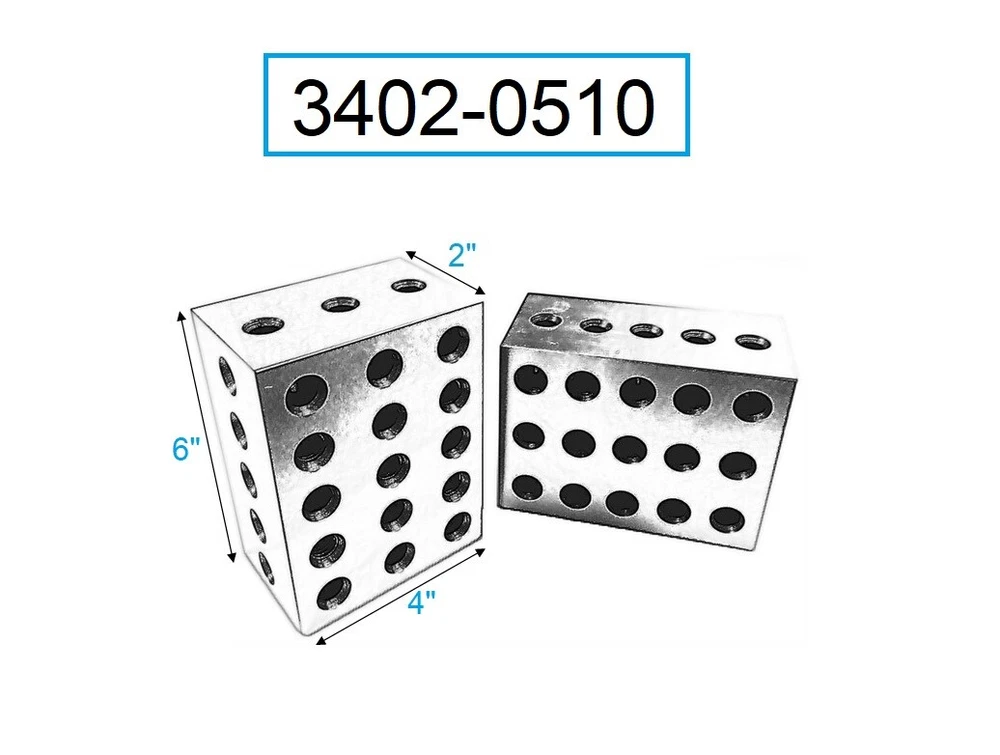 About Us Store Home Why should you buy from us? We exceed Ebay's standards for quality and service. We are an Ebay Star Seller and have over 31,000 unbiased positive feedback from unique Ebay buyers. AIR, POWER & HAND TOOLS CUTTING & CARBIDE TOOLS MACHINE TOOL ACCESSORIES MRO & SHOP SUPPLIES PRECISION MEASURING TOOLS Thank you for shopping with us! 2-4-6 Precision Matched Pair Block Set Heat treated and case hardened to HRC 55 to 60. Hardened and precision ground on all 6 sides of each block. Accuracy with squareness on all sides within .0002" per inch. 23 holes consists of 5 tapped holes that are 5/8"-11 for clamping and 18 untapped holes. Cross drilling design gives minimum weight and maximum strength. COMBINED SHIPPING We do combine shipping automatically whenever possible and will refund any overpaid shipping. You can click the Request Total button from your shopping cart after adding the items you want if it is available. Some browsers do not allow this option. If it is not available, just contact us after making your payment for your refund. INTERNATIONAL USERS Orders are shipped through the eBay Global Shipping Program and cannot be combined. We do refund any overpaid shipping from our facility to the eBay Global Shipping Center. We are not in control of the costs for shipping from there to you. TRUCK FREIGHT SHIPMENTS Click Contact seller for a freight quote prior to your purchase. 100% SATISFACTION GUARANTEED Click on Contact Seller if you have any issues at all with your purchase.
