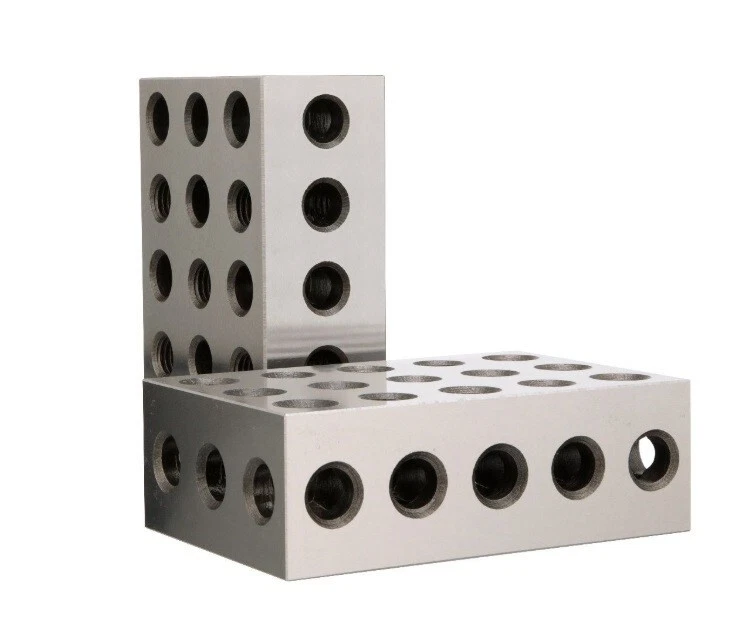 2-4-6 PRECISION MATCHED PAIR BLOCKS SET Specifications 2-4-6 Precision Matched Pair Block Set Heat treated and case hardened to HRC 55 to 60. Hardened and precision ground on all 6 sides of each block. Accuracy with squareness on all sides within .0002" per inch. 23 holes consists of 5 tapped holes that are 5/8"-11 for clamping and 18 untapped holes. Cross drilling design gives minimum weight and maximum strength. Shipping Weight: 20 lbs TOOL UP WITH AJAX TOOL SUPPLY