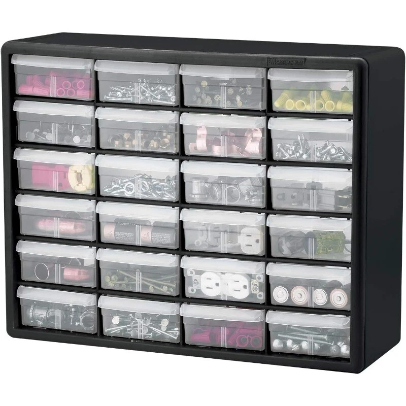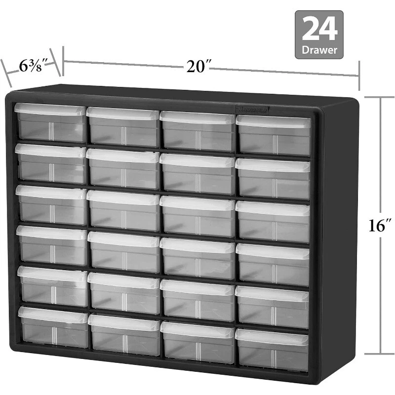 Metal Storage Cabinet with Doors and Shelves 5 Tier Metal Pantry Closet Cupboard 168.97 USD Free shipping 118" Wide Baby Gate Metal Safety Playpen Fireplace Fence for Toddler/Pet/Dog 122.17 USD Free shipping Ergonomic Gaming Recliner Adjustable Footrest PU Leather Comfortable Sofa Chair 220.96 USD Free shipping 10 Gallon Glass Aquarium Starter Kit LED Lighting Filtration System Fish Tank US 65.54 USD 69.72 USD Free shipping 6% off Ergonomic Gaming Chair w/ Footrest Reclining Video Game High Back Computer Chair 142.97 USD Free shipping Outdoor Storage Shed Galvanized Steel Tool Storage Water Resistant Lockable Door 122.19 USD 129.99 USD Free shipping 6% off 150 Piece Tool Set General Household Hand Home Repair DIY Project Maintenance 62.03 USD 65.99 USD Free shipping 6% off Mallard Floaters Decoy 12 Pack Rugged One-piece Design 73.32 USD 78.0 USD Free shipping 6% off Pink Cute Kawaii Gaming Chair for Girl Ergonomic Desk Racing Office Adjustable 135.82 USD Free shipping TV Stand for 65 Inch TV Entertainment Center with Storage Cabinets Console Table 158.85 USD 168.99 USD Free shipping 6% off Portable Training Kit for 9mm Dry Fire Laser Training System for Target Practice 121.72 USD 129.49 USD Free shipping 6% off Mini Fridge with Freezer 2.9 Cu.Ft Fridge Energy Saving Adjustable Thermostat 189.79 USD Free shipping About this item HEAVY DUTY CABINET WITH 24 DRAWERS: The 24-drawer small storage cabinet is made in the U.S.A. from rugged, high-impact plastic and measures 20" W x 6" D x 16" H; Organizer drawers - 6" x 4-1/2" x 2-3/16" GARAGE ORGANIZATION: The small parts organizer is great for garages and workshops for both homeowners and businesses; The plastic storage drawers can be used as tool box, screw organizer or for battery storage; Keep nails and other small parts accessible CLASSROOM ESSENTIALS: Teachers can use the stackable storage drawers for classroom organization; Use it as a teacher toolbox, art supply storage organizer, craft storage cabinet for scrapbook supplies, and more HOME STORAGE AND ORGANIZATION: This plastic storage cabinet offers many uses around the home; It can be a lego storage organizer, craft organizer, or sticker organizer; Use it for makeup storage and organization or for medicine and first aid supplies FEATURES: Stack cabinets securely or use keyhole slots to mount for wall storage; Finger-grip drawer pulls provide easy access; Rear stop tabs prevent contents from spilling; Drawer dividers are included and molded into the back of the cabinet Adult Oversized Mesh Camp Chair W/ Cooler Universal Sporting Camping Picnic New 33.72 USD Free shipping 1 Gallon Exterior Deck Resurfacer and Primer with Sealant Snowflake 49.91 USD Free shipping 22-Gauge 3/8 in. Pneumatic Upholstery Stapler Staple Guns Extended Nose NEW 50.04 USD Free shipping Foldable Flexi-Step Pet Steps w/ 4-Step Design and Non-Slip Treads Dog Ramps NEW 52.61 USD Free shipping Workshops Garages12-Inch 300-Pound Capacity Furniture Moving Tri-Dolly Set 33.16 USD Free shipping Mega Smart Cat Cove Enclosed Litterbox Pets Bathroom Laundry Room Durable New 49.37 USD Free shipping 18 inch 2 Claw Log Lifting Tongs Heavy Duty Steel Lumber Skidding Tongs 772 lbs 44.21 USD Free shipping 20" Indoor Rustic Metal Arabic Wall Clock Moving Analog Industrial Steampunk New 44.47 USD Free shipping PVC / Rubber Hybrid Air Hose Industrial Fitting Universal Connect Coupler Tools 27.41 USD Free shipping 31"H Extra-Wide Walk Through Metal Dog Pet Gate, with Additional Small Door 53.96 USD Free shipping Slipcover Furniture Protector Great Pets Children Sofa Stain Resistant Comfort 35.46 USD Free shipping Task Chair with Adjustable Height & Swivel 225 lb. Capacity Office Chairs 2024 51.85 USD Free shipping