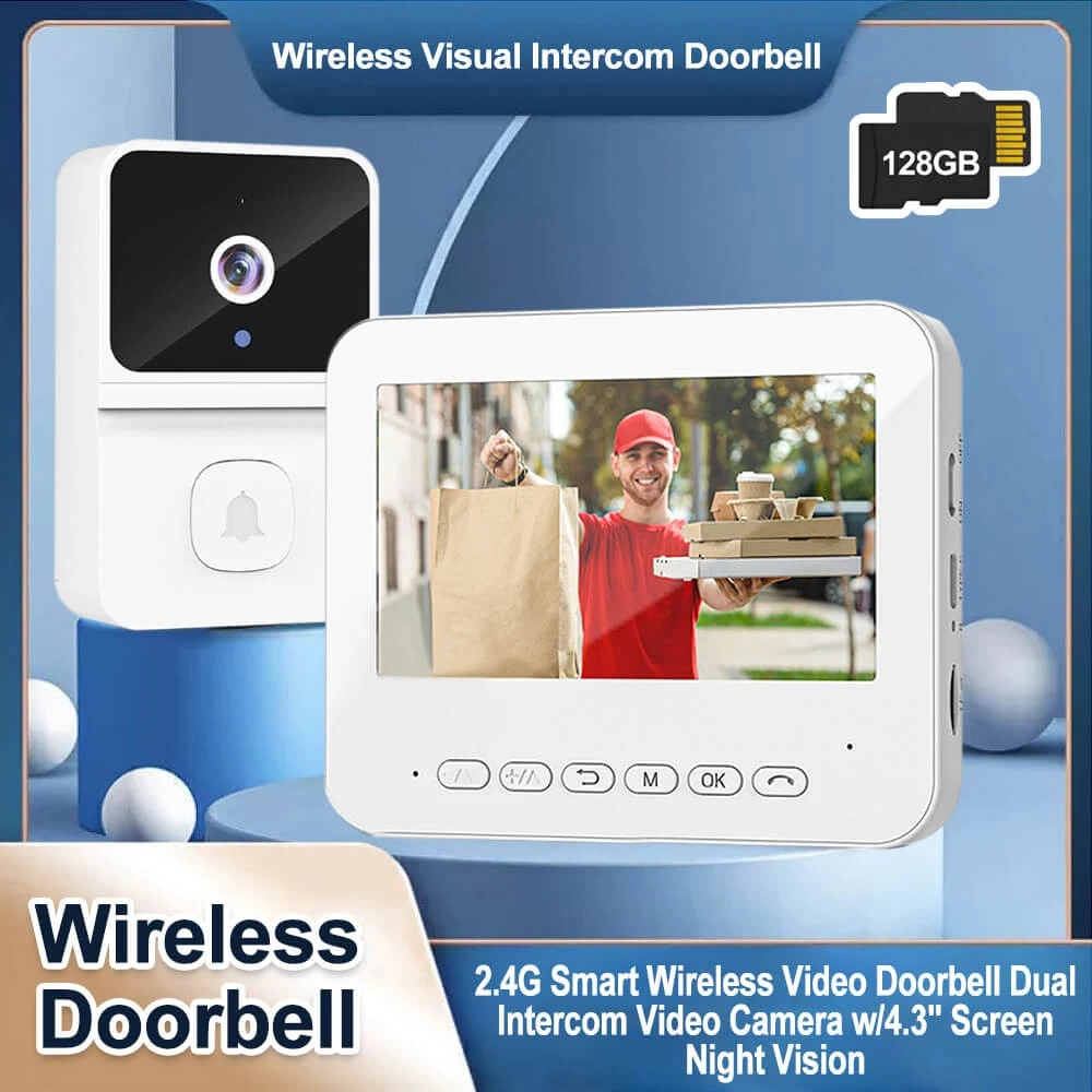 2.4G Smart Wireless Video Doorbell with 4.3 Inch Screen and Dual Intercom