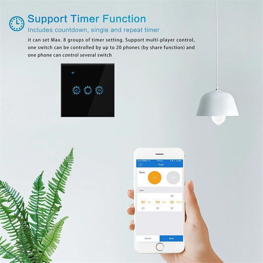SAFE & SECURE SHOPPING 100% SATISFACTION GUARANTEED FAST SHIPPING Wall Switch WiFi Smart Light Dimmer Touch Remote Control Light for Alexa US Product Description Note: 1. Need neutral wire; 2. Before buying, please check if your flush-mounted installation box is suitable; 3. Can only be used with dimmable LED bulbs. 4. 5G network connection is not supported. Descriptions: 100% brand new. Name: Wifi dimming touch remote control smart timer switch black (EU / UK universal, EWELINK scheme) Material: PC Optional Color: white/black Features: Ultra-thin luxury tempered glass panel, crystal clear and never fade, ten years is still bright and clean as new. Zero fire wire design, directly replace mechanical switches; Low power consumption standby, energy saving and safety; fast response speed, no delay; Anti-lightning, anti-surge, effective protection circuit; Wi-Fi remote, non-directional, unlimited distance, more convenient operation. Can be used with Amazon Alexa, with Google Home, IFTTT. APP remote control: As long as the mobile phone has 2G / 3G / 4G / WIFI network, users can remotely control the on / off / dimming of home appliances using the smartphone anytime and anywhere through the APP. It makes your home appliances smart in 1 second. Compatible with iOS and Android OS. Specification: Material: high quality ABS Product certificate: CE, ROHS, EMC / FCC, real safety testing Power supply mode: neutral line, live line Input voltage: AC100V ~ AC230V 50 / 60Hz Overall dimensions: 86 * 86 * 32mm Control number: 1 Load power: 2A / channel (triac contact) Transmission method: WiFi Wireless standard: WiFi (2.4G 802.11 b / g / n), does not support 5G networks. Control distance: infinite distance (under 2G / 3G / 4G / WiFi network) Applicable system: IOS 8.1 / Android4.1 and above App language: adaptive Chinese / English / Korean / German / French / Spanish / Italian / Arabic Control method: touch, voice control, mobile APP three-in-one multi-function control Suitable for the market: EU / UK APP download: eWeLink. Package list: 1 dimmer switch Payment Shipping Returns Contact US Payment Payment must be completed within 5 days. If you have any problems about payment, please contact us via ebay message. Shipping We only ship to confirmed ebay Order addresses. Please comfirm that your Order address is in line with your shipping address. Please kindly note that the combined shipping is not provided because the shipping fee is calculated by weight. Also, the each additional item means exactly the the same color and size. It takes about 7-15 working days to US; about 10-30 working days to other countries. Transit time may be a little delayed because of the bad weather and customs inspection. If you do not receive your item within 30 working days since payment finished, please contact us immediately for further assistance. Returns Items can be returned for exchange or refund within 30 days from the date you receive your merchandise. We are not responsible for any purchase after this 30-day period. Return shipping is the responsibility of buyer unless the return is a result of our mistake (i.e., your receive the wrong item). We will pay for shipping replacement back to you if an exchange is requested. Contact US Customer satisfaction is very important to us and our feedback rating reflects this satisfaction. If you have any questions, Our customer service staffs welcome feel free to contact us by EBAY message box. We strive to answer all questions and resolve any problems as quickly as possible. Copyright © 2022 Tongtool On Dec 15, 2024 at 22:45:31 PST, seller added the following information: