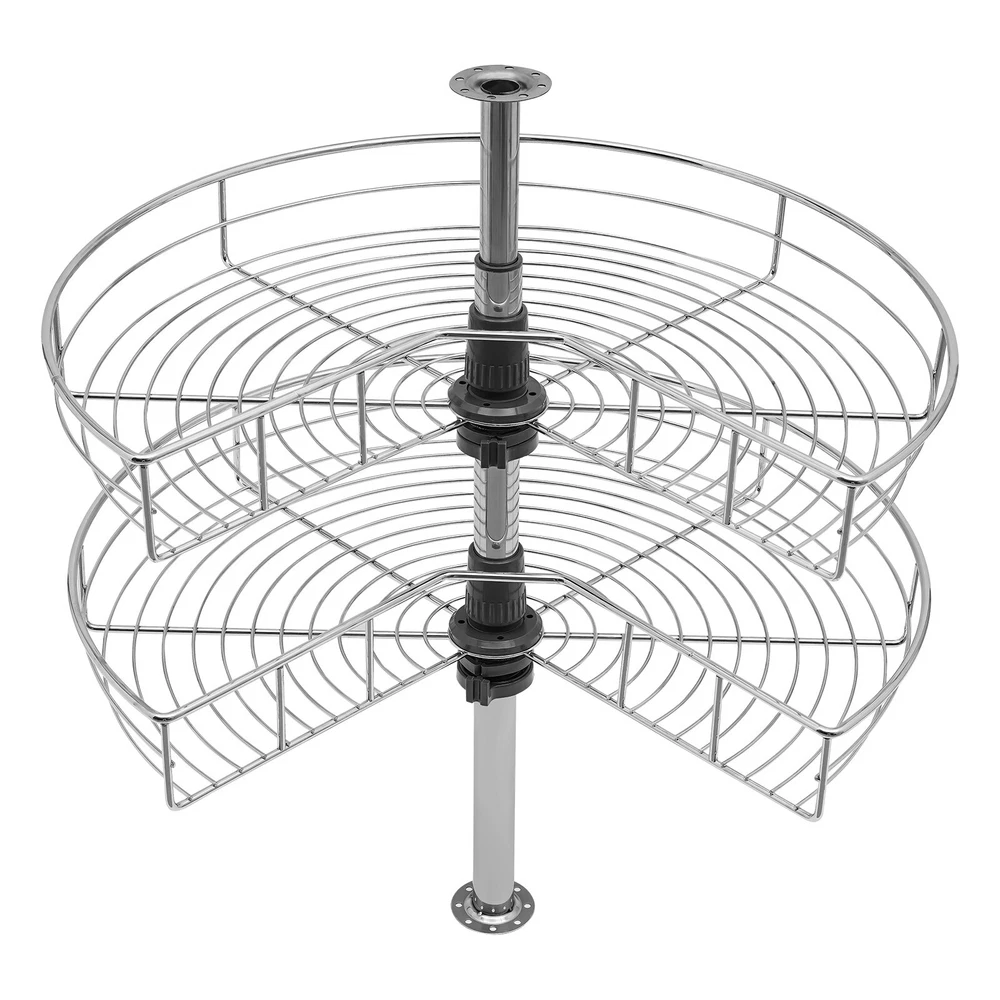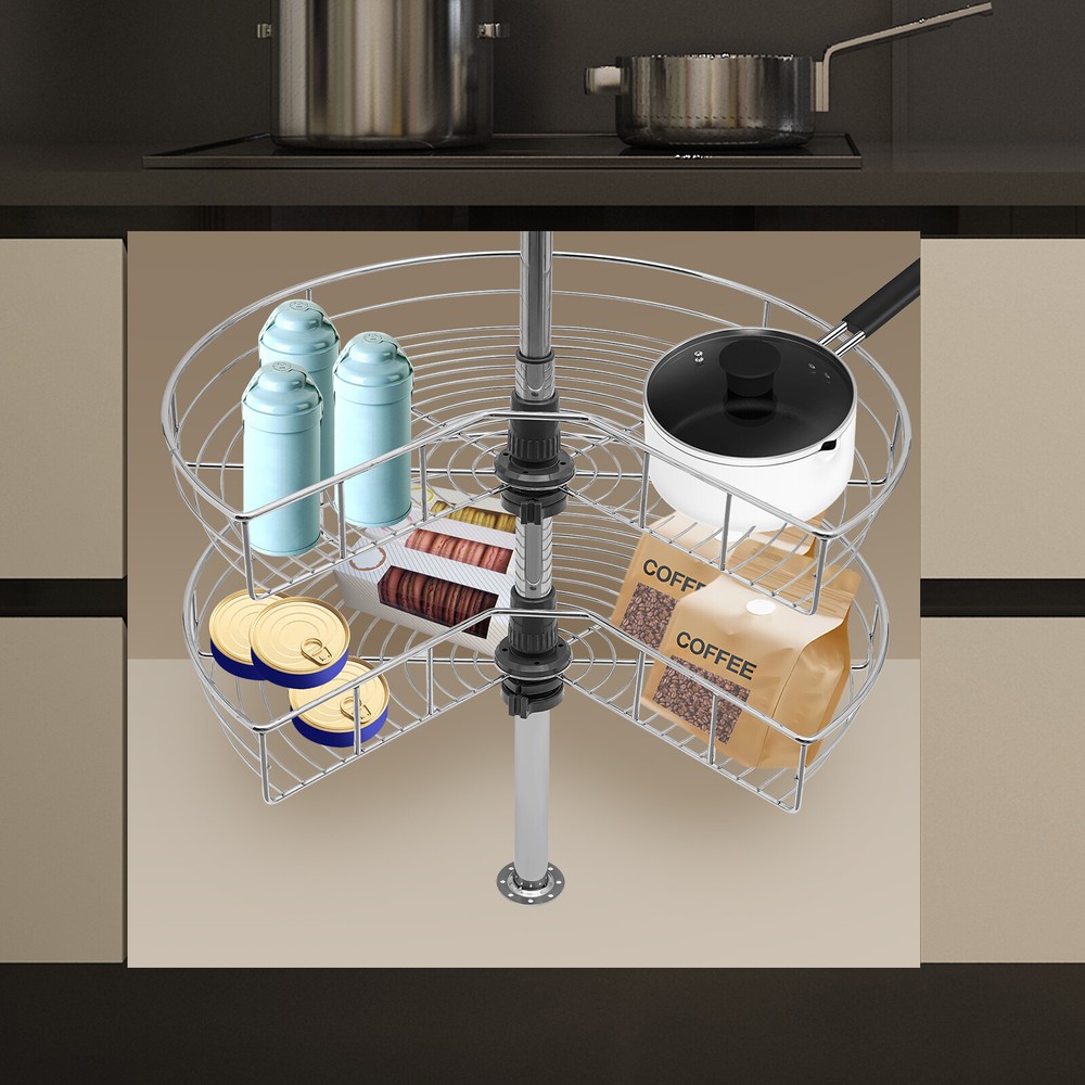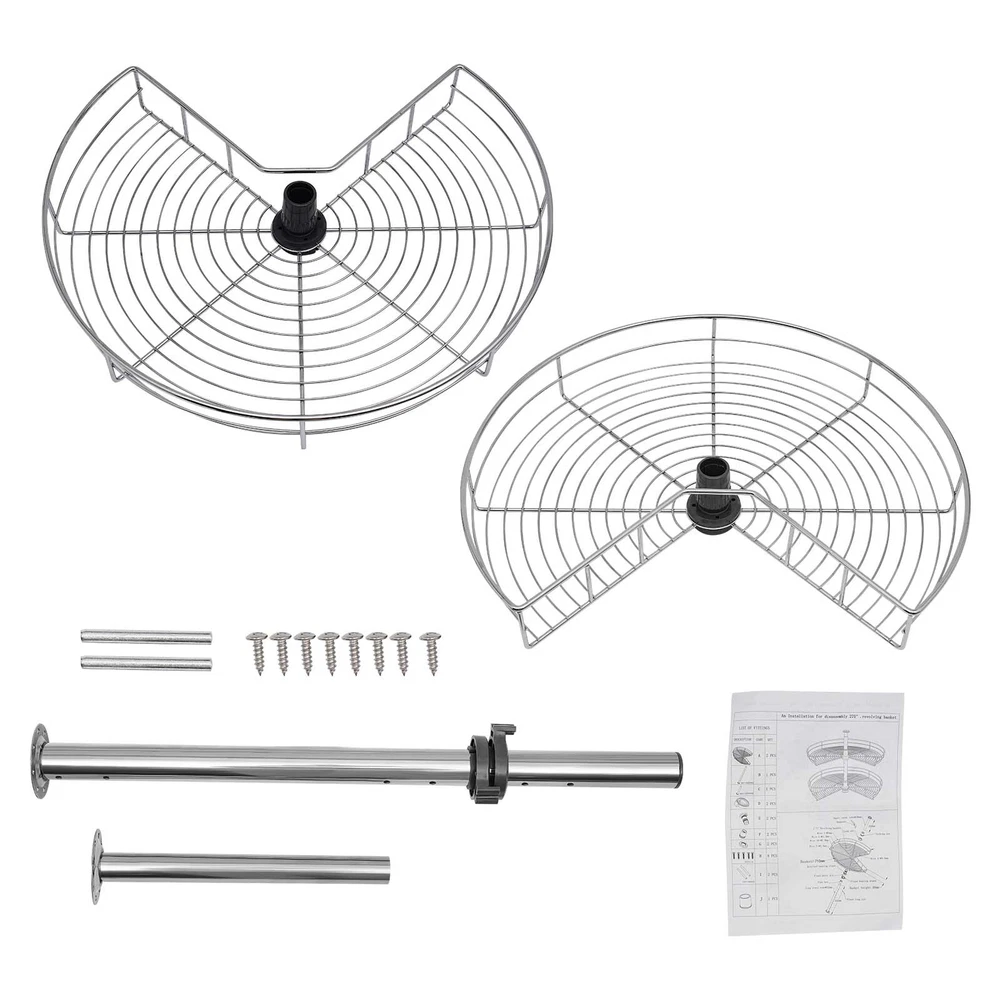 Improve Space Utilization: It makes full use of the wasted space in the corner of the cabinet so that you can easily access all the units in the kitchen, making every corner that we easily ignore become our storage space. Large Capacity: This kidney-shaped lazy corner cabinet organizer has two storage shelves with a diameter of 24 inches for sorting high bottles, cups, pans, storage cans, utensils and food. Such a large capacity can meet your daily storage needs. High Load-bearing Capacity: Each rack is woven by multiple iron rods, so it is more solid and stable, so that the product can bear 30 pounds of weight, and can easily bear kitchen appliances. Easy to Access: It uses two rotating frames. You can easily rotate it to 270° without much noise 24" Kidney Chrome 2-Shelf Lazy Susan Kitchen Base Cabinet Corner Organizer Rack Description Specification Material: Iron Color: Silver Finish Type: Chrome Plated Max Load-bearing Capacity: 13.6kg/30lbs Package Size: 62*52*18cm/24.41*20.47*7.09in Each Rack Diameter: 60cm/23.6in Height of Each Layer: 7.5cm/3in Total Height: 56-79cm/22-31in Gross Weight: 5kg/11.02lbs Net Weight: 4.5kg/9.92lbs Package Included 2* Racks 1* Upper Tube 1* Lower Tube 1*English Manual All Accessories for Assembly Key Features Improve Space Utilization : It makes full use of the wasted space in the corner of the cabinet so that you can easily access all the units in the kitchen, making every corner that we easily ignore become our storage space. Large Capacity : This kidney-shaped lazy corner cabinet organizer has two storage shelves with a diameter of 23.6 inches for sorting high bottles, cups, pans, storage cans, utensils and food. Such a large capacity can meet your daily storage needs. High Load-bearing Capacity: Each rack is woven by multiple iron rods, so it is more solid and stable, so that the product can bear 30 pounds of weight, and can easily bear kitchen appliances. Easy to Access : It uses two rotating frames. You can easily rotate it to 270° without much noise, then take or place items without stretching your arms. Great Durability : It is made of iron material to enhance durability and robustness. The two racks have a classic chrome finish, which contributes to their beautiful and stylish appearance, corrosion protection and rust prevention. Adjust the Height Freely : The height of the tube can be adjusted at will between 22-31inch to adapt to the cabinet space of different heights. The height of two independent racks can also be moved up and down to fix to different hole positions to adapt to different item sizes so that you can make the most of it. Easy to Install : By providing mounting holes and a set of mounting screws, it can be easily installed on the left blind or right blind cabinet. For your convenience, we also provide the installation instruction to help you install independently in a short time. Easy to Clean : The chrome-plated surface is very smooth, so simply wipe it with a soft cloth to maintain its clean appearance. Details Heightened Guardrail : Both racks are designed with 3inch heightened guardrail to effectively prevent your items from slipping. Round Edges : The edges of the two shelves are polished into round edges, which is not only fashionable but also effective to prevent scratching. Application You can install it in various cabinet corners to place pots and pans, containers, spice jars, etc. Notes Please allow the slight color difference caused by the shooting light and 1-3 cm error due to manual measurement, and make sure you do not mind before ordering. Payment Delivery details Terms of sales About us Contact us Payment We accept ebay payment 。 Fees such as import duties, taxes are not included in the item price or shipping costs. These charges are the buyer's responsibility. Delivery details Shipping: 2-9 working days to: USA Terms of sales We maintain high standards of excellence and strive for hundred percent customer satisfaction. Feedback is very important to us. We hope that you contact us immediately before you give neutral or negative feedback, so that we can address your concerns. It is impossible to address issues if we do not know about them! About us Your satis faction is our ultimate goal. We work hard to earn your trust and future business. Our certified technicians have tested each item before shipping. The unit comes with 1 year limited warranty on all manufacturing defects. a) If you receive a defective item, you may return it or ask for a discount. Please contact us within 14 days after you receive the package. b) What you returned must be intact and in its original packaging as re? u. Customer is responsible for shipping costs of the returned item. c) We will cover the cost of shipping back t with the shipping rate indicated in the registration page. We will send you a new unit or refund the full payment you paid. Thank you. Contact us Business Hour Business Hour: Monday To Friday: 8:30 AM to 5:00 PM (Beijing China time) Due to time zones, our reply to your questions may not be immediately. But within above working time, we will reply your email within 24 hours. If it's non-workdays, please kindly be patient and wait till Monday. Please contact us with ebay message. Please feel free to contact us if you have any questions. Monday To Friday: 8:30 AM to 5:00 PM (Beijing China time) Due to time zones, our reply to your questions may not be immediately. But within above working time, we will reply your email within 24 hours. If it's non-workdays, please kindly be patient and wait till Monday. Please contact us with ebay message. Please feel free to contact us if you have any questions. Number of Compartments 1 Size Large Bundle Description Does not apply Color Silver Custom Bundle No Material Iron MPN Does not apply Item Length 61cm/24in Brand Unbranded Mounting Cabinet Mounted Number of Shelves 2 Number of Tiers 2 Item Height 56-79cm/22-31in Features Adjustable, Easy Clean Item Width 7.5cm/3in