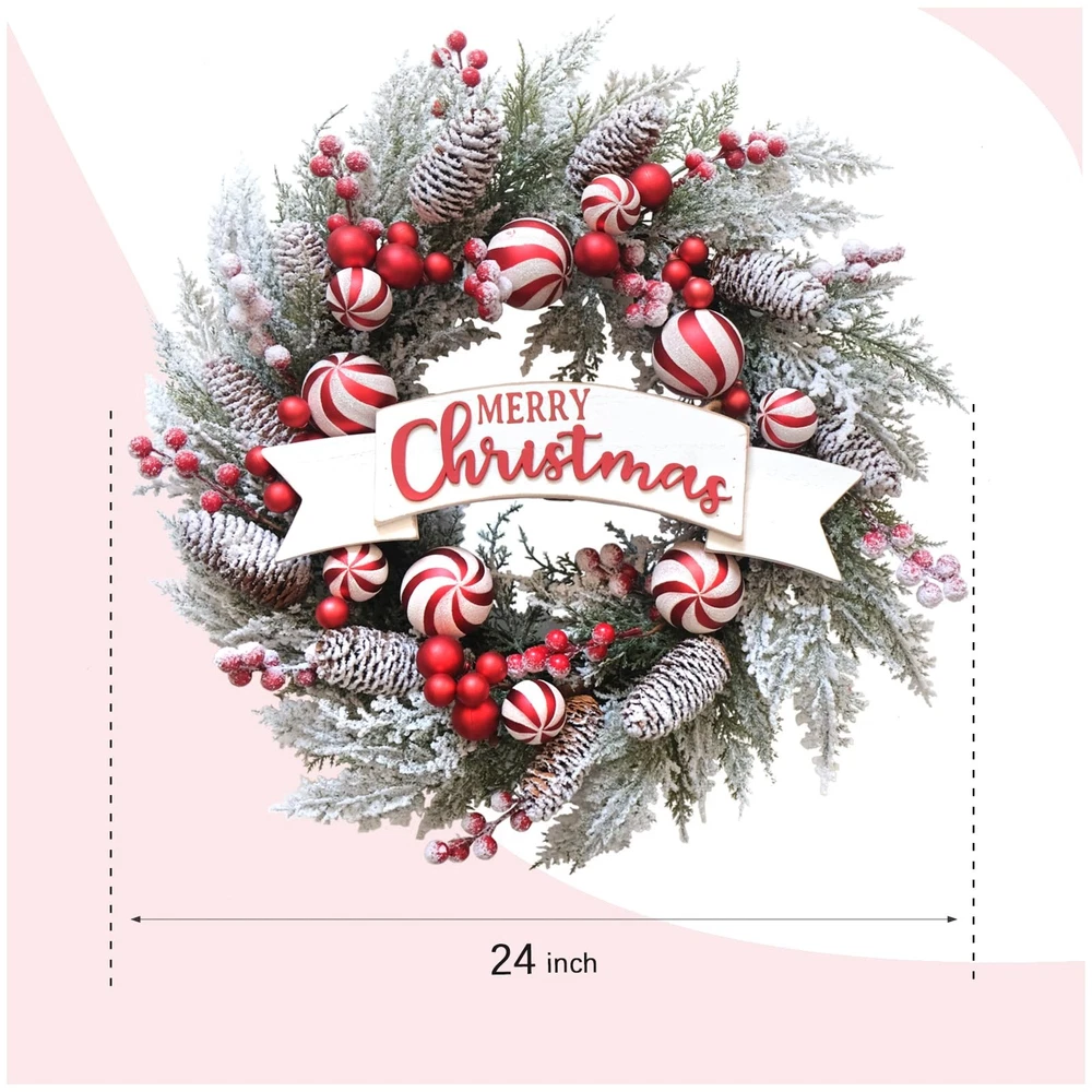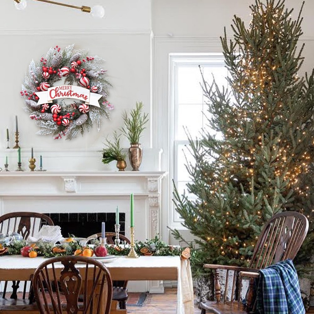 This wreath is absolutely stunning—the snow-dusted pine needles, berries, and pine cones look so real! It adds instant festive charm to my front door, and the vibrant red balls make it pop. Perfect for both indoor and outdoor use, it’s sturdy yet lightweight. Love that it works year-round, too! The optional "Merry Christmas" sign is a cute touch. Highly recommend for anyone wanting a gorgeous, hassle-free holiday decoration!