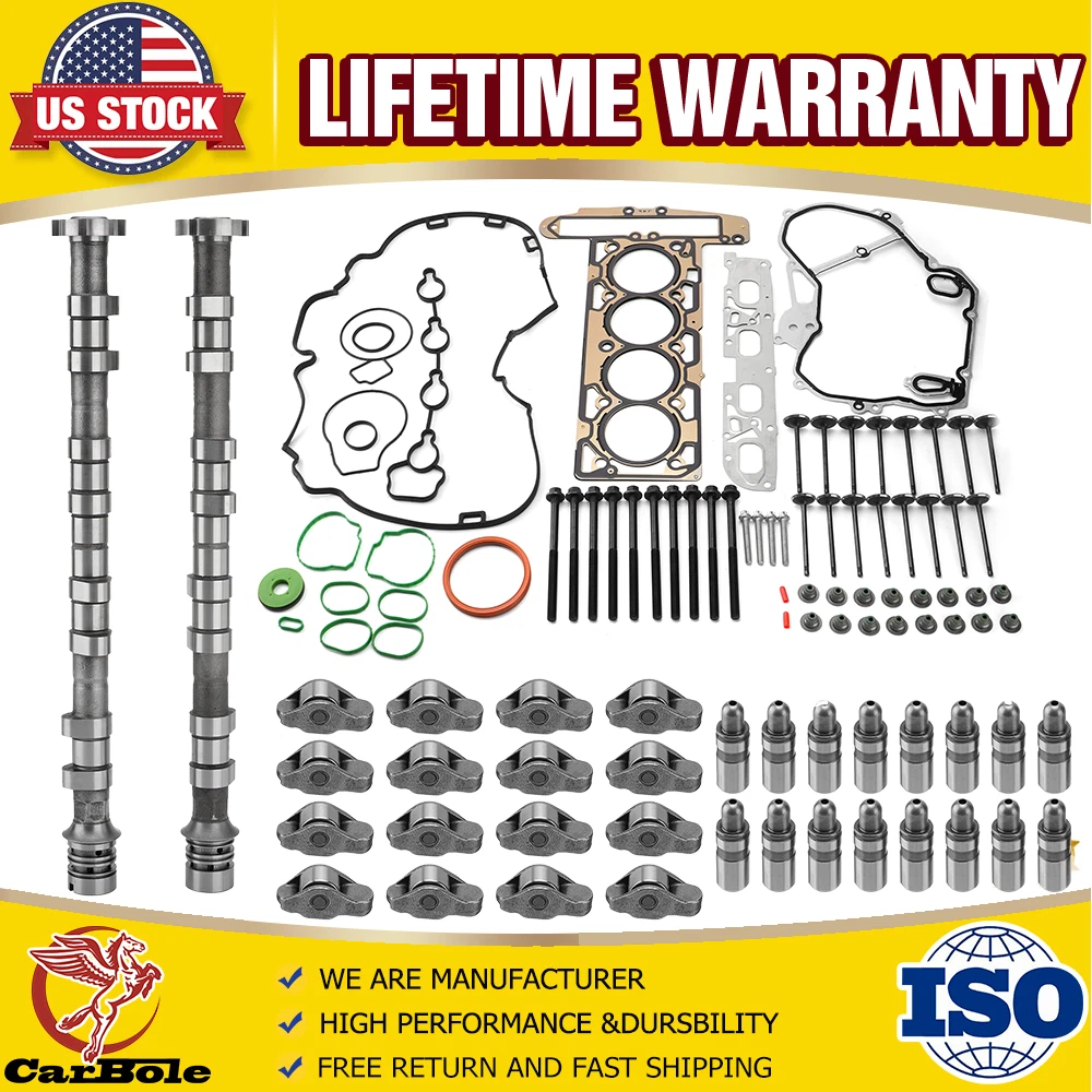 Item description: Warranty: Lifetime 100% New & 100% Tested & Fast Free Shipping. Direct fit, no modification requires, easy installation! Color:as picture show Item Specifics Type: Engine Camshaft +Head Gasket Set Item Height :3.6 Item Length :21 Item Weight :4.59 Item Width :3.6 Performance Part :No Vintage Part:No Universal Fitment:No Installation Instructions: Not included Brand: CarBole Placement on Vehicle: Front Kit or Single Part: Kit Material: Multiple Layers Steel (MLS) Head Gasket Kit Parts Included: Cylinder Head Gasket Set+ Engine Camshaft +Rocker Arms Lifters Automotiveparts_aa Best choice of motor parts 2.4L Head Gasket Seal&Intake Exhaust Cam&Rocker Arms Lifters Kit For Chevy Buick Item description: Warranty: Lifetime 100% New & 100% Tested & Fast Free Shipping. Direct fit, no modification requires, easy installation! Color:as picture show Item Specifics Type: Engine Camshaft +Head Gasket Set Item Height :3.6 Item Length :21 Item Weight :4.59 Item Width :3.6 Performance Part :No Vintage Part:No Universal Fitment:No Installation Instructions: Not included Brand: CarBole Placement on Vehicle: Front Kit or Single Part: Kit Material: Multiple Layers Steel (MLS) Head Gasket Kit Parts Included: Cylinder Head Gasket Set+ Engine Camshaft +Rocker Arms Lifters Rocker Arm Material: Steel Rocker Arm Finish: Anti-Rust Rocker Arm Type: Roller Self Aligning: Yes Mounting Type: Shaft Lifter Type: Hydraulic Material: Steel Maximum Outside Diameter: 0.472"/12.00 MM OE/OEM Part Number : Exhaust Camshaft : 12604896 Intake Camshaft: 12611996 HS54874HS,54874,HS54874,HS26517PT, DG-8614975628 Rocker Arms Lifters :12565203, MR1340 & 24100005, JB7524 Fitment: Please pay attention to the compatibility and find whether it fits your car or not. Buick Allure 2010 2.4 L4 (2384cc.) Chevrolet Captiva Sport 2012-2015 2.4 L4 (2384cc.) Chevrolet Captiva Sport 2012 2.4 L4 (2405cc.) Chevrolet Equinox 2010-2012 2.4 L4 (2384cc.) Chevrolet Impala 2014 2.4 L4 (2384cc.) Buick LaCrosse 2010-2016 2.4 L4 (2384cc.) Chevrolet Orlando 2012-2013 2.4 L4 (2384cc.) Buick Regal 2011-2017 2.4 L4 (2384cc.) GMC Terrain 2010-2012 2.4 L4 (2384cc.) Buick Verano 2012-2017 2.4 L4 (2384cc.) Year Make Model Engine 2009 - 2010 CHEVROLET COBALT 2.4L LE5/LE9 2009 - 2016 BUICK LACROSSE 2.4L LE5/LE9 2009 - 2017 BUICK REGAL 2.4L LE5/LE9 2009 - 2012 PONTIAC G6 2.4L LE5/LE9 2009 - 2012 PONTIAC SOLSTICE 2.4L LE5/LE9 2009 - 2010 SATURN AURA 2.4L LE5/LE9 2009 - 2012 SATURN SKY 2.4L LE5/LE9 2009 - 2011 SATURN VUE 2.4L LE5/LE9 2009 - 2011 CHEVROLET HHR 2.4L LE5/LE9 2009 - 2012 CHEVROLET MALIBU 2.4L LE5/LE9 2009 - 2017 CHEVROLET EQUINOX 2.4L LE5/LE9 2012 - 2015 CHEVROLET CAPTIVA SPORT 2.4L LE5/LE9 2012 - 2014 CHEVROLET ORLANDO 2.4L LE5/LE9 2010 - 2017 GMC TERRAIN 2.4L LE5/LE9 2011 - 2019 GL8 S GL8 S 2.4L LE5/LE9 2006 - 2016 LaCross LaCross 2.4L LE5/LE9 2008 - 2017 Captiva Captiva 2.4L LE5/LE9 Rocker Arms Lifters Application: For Buick Allure 2.4L(2010), Envision 2.0L(2016-2017) 2.5L(2017-2018) , LaCrosse 2.4L(2010-2016), Lucerne 4.6L(2006-2011), Regal 2.0L(2011-2017) 2.4L(2011-2012 & 2015-2017), Regal Sportback & Regal TourX 2.0L(2018), Verano 2.0L(2013-2016) 2.4L(2012-2017). For Cadillac ATS 2.0L(2013-2018) 2.5L(2013-2016), CT6 2.0L(2016-2018), CTS 2.0L(2014-2018), DeVille 4.6L(2000-2005), DTS 4.6L(2006-2011), Eldorado 4.6L(2000-2002), Seville 4.6L(2000-2004), SRX 4.6L(2004-2009), STS 4.6L(2005-2010), XLR 4.6L(2004-2009). For Chevrolet Camaro 2.0L(2016-2018), Captiva Sport 2.4L(2010-2015), Cavalier 2.2L(2002-2005), Classic 2.2L(2004-2005), Cobalt 2.0L(2005-2010) 2.2L(2005-2010) 2.4L(2006-2008), Colorado 2.5L(2015-2018), Equinox 2.0L(2018) 2.4L(2010-2017), HHR 2.0L(2008-2010) 2.2L&2.4L(2006-2011), Impala 2.5L(2016-2017), Malibu 2.0L(2013-2018) 2.2L(2004-2008) 2.4L(2008-2012) 2.5L(2013-2015), Malibu Limited 2.5L(2016), Orlando 2.4L(2012-2014). For Pontiac Bonnewille 4.6L(2004-2005), G5 2.2L(2007-2010) 2.4L(2007-2008), G6 2.4L(2006-2010), Grand Am 2.2L(2002-2005), Pursuit 2.2L(2005-2006) 2.4L(2006), Solstice 2.0L(2007-2009) 2.4L(2006-2009), Sunfire 2.2L(2002-2005). For Saturn Aura 2.4L(2008-2009), Ion 2.0L(2004-2007) 2.2L(2003-2007) 2.4L(2006-2007), L100 2.2L(2001-2002), L200 & LW200 2.2L(2001-2003), L300 2.2L(2004), LS & LS1 & LW1 2.2L(2000), SC2 1.9L(2000-2002), Sky 2.0L & 2.4L(2007-2010), SL2 1.9L(2000-2002), SW2 1.9L(2000-2001), Vue 2.2L(2002-2007) 2.4L(2008-2010). For GMC Acadia 2.5L(2017-2018), Canyon 2.5L(2015-2018), Terrain 2.0L(2018) 2.4L(2010-2017). For Oldsmobile Alero 2.2L(2002-2004), Aurora 3.5L(2001-2002) 4.0L(2001-2003), Intrigue 3.5L(1999-2002). For Saab 9-3 2.0L(2003-2011), 9-3X 2.0L(2010-2011), 9-5 2.0L(2011) Package Includes: 1* Exhaust Camshaft 1*Intake Camshaft Multiple Layers Steel (MLS) Head Gasket Valve Cover Gasket Valve Stem Seals Intake Manifold Gasket Exhaust Manifold Gasket Front Camshaft Seal O-rings Other Small Gaskets RTV Silicone 10pcs Bolt 16pcs Valve 16 x Rocker Arms & Valve Lifters (As picture show) Notes: (1)Please make sure the part numbers matches the part you are replacing. Please review the information above carefully to make sure this part fits your vehicle. (2)If you have questions on whether this part fits your vehicle, please feel free to contact us via eBay.Thank you! (3)We will process your order within 1 business day upon payment. (4)If you have any questions about quality, shipping or other problems, please contact me first via eBay message. (5)Please don't open cases or return requests without contacting me. I will give you a satisfy solution. Certificates of our Product: Our Factory: Payment PayPal: We accept Credit card, Debit card, Apple Pay, Google Pay and PayPal. Shipping We ship all items to United States only. International shipping is provided by Ebay global shipping program and is calculated once the items are placed in the shopping cart. Additional shipping fee may be charged for buyers from Puerto Rico, Hawaii, Alaska, Guam, and the U.S. military address of the United States or other remote