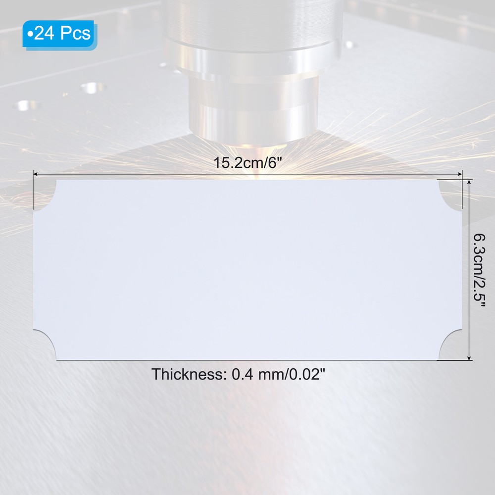 Document Our engraved nameplates are perfect for mounting on plaques, picture frames, sweaters, trophies, bags, display boxes, flag cases, and anything else.SpecificationMaterial: Stainless SteelColor: WhiteSize: 15.2 x 6.3 cm/6 x 2.5 Inch(L*W)Thickness: 0.4 mm/0.02 InchPacking List: 24 Pcs x Engraved NameplateAdvantageOur engraved nameplates are made of brushed stainless steel which is durable, stable, not easy to fade, rust, or break, and can be used for a long time. With a smooth surface, it will not scratch your skin.The right thickness makes the plate stronger and allows for deeper engraving. These elegant nameplates have a beautiful luster and a simple design. Suitable for various crafts to add brilliance.The protective film design can effectively prevent scratches. The adhesive backing design allows you to stick this nameplate anywhere without any tools and it can be firmly on the objects.InstructionPlace a metal workbench block underneath the blank stamping tags for better stamping.NOTE:1. There may be light scratches and blemishes due to shipping, but they can be polished.2. Only for laser engraving, not suitable for mechanical engraving.3. Please remove the protective film before use. 24 Pcs 6" x 2.5" Engraved Name Plate Picture Frame Label Art Tag, White Our engraved nameplates are perfect for mounting on plaques, picture frames, sweaters, trophies, bags, display boxes, flag cases, and anything else. Specification Material: Stainless Steel Color: White Size: 15.2 x 6.3 cm/6 x 2.5 Inch(L*W) Thickness: 0.4 mm/0.02 Inch Packing List: 24 Pcs x Engraved Nameplate Advantage Our engraved nameplates are made of brushed stainless steel which is durable, stable, not easy to fade, rust, or break, and can be used for a long time. With a smooth surface, it will not scratch your skin. The right thickness makes the plate stronger and allows for deeper engraving. These elegant nameplates have a beautiful luster and a simple design. Suitable for various crafts to add brilliance. The protective film design can effectively prevent scratches. The adhesive backing design allows you to stick this nameplate anywhere without any tools and it can be firmly on the objects. Instruction Place a metal workbench block underneath the blank stamping tags for better stamping. NOTE: 1. There may be light scratches and blemishes due to shipping, but they can be polished. 2. Only for laser engraving, not suitable for mechanical engraving. 3. Please remove the protective film before use. Hot Item Payment 1.We accept eBay payment . 2.Payment must be received within 7 business days of auction closing. Shipping 1.We ship to your eBay or Paypal address. Please make sure your eBay and Paypal address is correct before you pay. 2.Items will be shipped within 1-3 business day when we received payment. 3.Delivery time depends on destination and other factors. Description Policy 24 Pcs 6" x 2.5" Engraved Name Plate Picture Frame Label Art Tag, White Our engraved nameplates are perfect for mounting on plaques, picture frames, sweaters, trophies, bags, display boxes, flag cases, and anything else. Specification Material: Stainless Steel Color: White Size: 15.2 x 6.3 cm/6 x 2.5 Inch(L*W) Thickness: 0.4 mm/0.02 Inch Packing List: 24 Pcs x Engraved Nameplate Advantage Our engraved nameplates are made of brushed stainless steel which is durable, stable, not easy to fade, rust, or break, and can be used for a long time. With a smooth surface, it will not scratch your skin. The right thickness makes the plate stronger and allows for deeper engraving. These elegant nameplates have a beautiful luster and a simple design. Suitable for various crafts to add brilliance. The protective film design can effectively prevent scratches. The adhesive backing design allows you to stick this nameplate anywhere without any tools and it can be firmly on the objects. Instruction Place a metal workbench block underneath the blank stamping tags for better stamping. NOTE: 1. There may be light scratches and blemishes due to shipping, but they can be polished. 2. Only for laser engraving, not suitable for mechanical engraving. 3. Please remove the protective film before use. Hot Item Payment 1.We accept eBay payment . 2.Payment must be received within 7 business days of auction closing. Shipping 1.We ship to your eBay or Paypal address. Please make sure your eBay and Paypal address is correct before you pay. 2.Items will be shipped within 1-3 business day when we received payment. 3.Delivery time depends on destination and other factors.