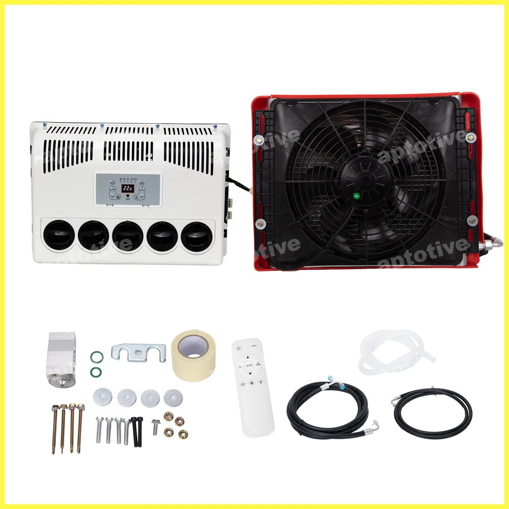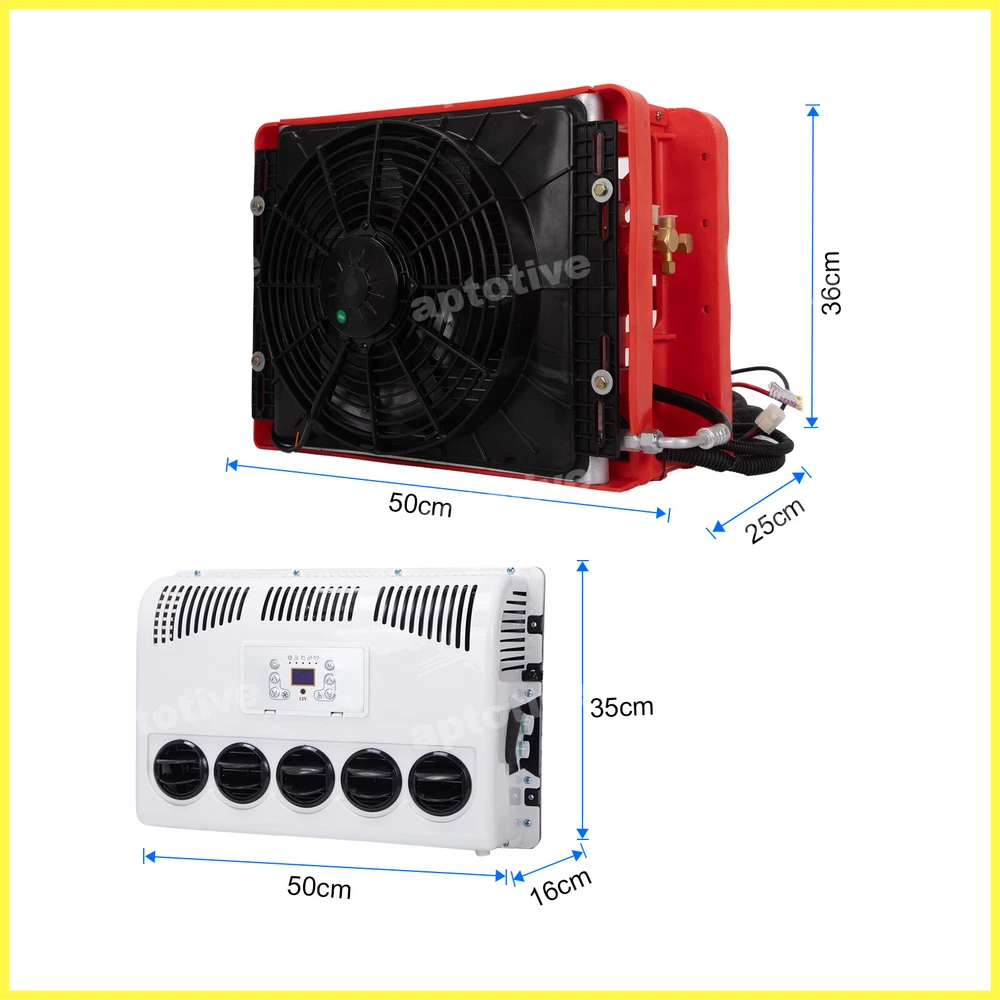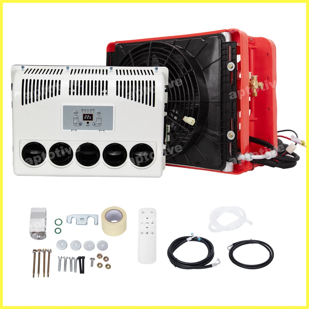 Descripton: 【 Low Noise】 The internal unit noise of the air conditioner is quite low that allows quiet driving during the day and easy sleep at night. 【Wide application range 】 New energy electric air conditioning is suitable for trucks, RVs, excavators, RVs, bulldozers, cranes, buses, vans, light trucks, agricultural machinery, etc 【 Note 】 The air conditioner does not contain refrigerant, and the refrigerant needs to be added by oneself, R134a. Before adding refrigerant, vacuum treat. Specification: Rated Voltage: 24V Drive Mode: Intelligent Frequency Conversion Working Temperature: 16-55*C Seting Temperature: 16-30°C Current: 10-35A Cooling Capacity: 1800W Refrigerant: R-134a (not included) Package includes: 1 x Air Conditioner Set