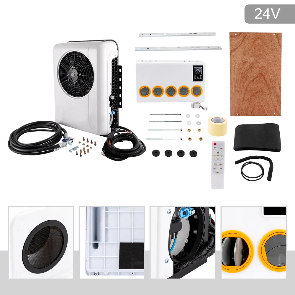 950W 24V Truck Air Conditioner 12000BTU Split AC Fits Semi Trucks Bus RV Caravan 24V Universal Truck Air Conditioner Kit Split AC 10238BTU For Semi Trucks Bus RV Specifications Applicable Models: Car (Cab Within 6 ㎡ /64ft²) Color: Black, White Voltage: 24V Rated Power: 950W Condition: New Material: Copper, Aluminium, ABS Installation Position: Inside the Cab; Outside the Cab Refrigerating Capacity: 1000W-3000W (3400-10238BTU) Oil: 90ml-120ml/0.02-0.03gal POE68 (included) Speed Range: 1000-3000rpm Way of Use: Direct Replacement Number of Pieces: 2 Outdoor Unit Size: 49*21*66cm/19.3*8.3*26inch Indoor Unit Size : 49*33cm/19.3*13inch length of high and low pressure hoses:3 meters Installation Remove the outer casing. Select the installation position and mark the punch position. (Select 5 installation points) Punch holes at the mark points. (Tool: an 8mm/0.3inch drill) Use a pull riveter to fix the pull rivet nut at the marked hole. Fixed the damping pad and sleeve at the marked points on the external machine. Fixed the external machine. Install the internal machine: install an expansion valve. Fixed internal machine mounting plate. Fixed the internal machine. 3/8inch pipe (high-pressure pipe) connected to the condenser. Connect internal and external machine wires and power cord. Connect internal and external pipes, and fixed the evaporation box. Connect internal and external wires. Install the drainage pipe. Vacuum for 15-20 minutes. The power cord is connected to the battery. Install the outer casing. Winding tape to fix the internal and external machine connecting pipe and the internal and external machine connecting wire. The installation is complete. Key Features Good Cooling Effect: The parking air conditioner is a kind of in-car air conditioner. It uses the on-board battery DC power supply (24V) to make the air conditioner run continuously to adjust and control the temperature, humidity, flow rate, and other parameters of the ambient air in the car, to fully meet the comfortable cooling needs of the truck driver. Saving Energy: The parking air conditioner works with a truck battery without an engine. Meanwhile, it adopts digital frequency conversion and allows you to use the energy-saving mode when you sleep at night, saving you lots of energy. Long Endurance: It can work continuously for about 6 to 8 hours on a full charge, which can meet your daily needs. Highlights Brand New, With High Quality Direct Replacement Trouble-free Installation Stylish Appearance Strong and Durable Exquisite Workmanship Easy to Clean Stable Performance Long Service Life Remote Control Notes We strongly recommended professional installation. Please contact us if you have any questions. Please allow the slight difference caused by the shooting light and 1-3cm error due to manual measurement, and make sure you do not mind before ordering. Fits (As a Reference) For car (Cab Within 6 ㎡ /64ft²). Package Included 1* Air Conditioner Kit 1* Remote Control Other Accessories for Assembly Payment Delivery details Terms of sales About us Contact us Payment We accept ebay payment 。 Fees such as import duties, taxes are not included in the item price or shipping costs. These charges are the buyer's responsibility. Delivery details Shipping: 2-9 working days to: USA Terms of sales We maintain high standards of excellence and strive for hundred percent customer satisfaction. Feedback is very important to us. We hope that you contact us immediately before you give neutral or negative feedback, so that we can address your concerns. It is impossible to address issues if we do not know about them! About us Your satis faction is our ultimate goal. We work hard to earn your trust and future business. Our certified technicians have tested each item before shipping. The unit comes with 1 year limited warranty on all manufacturing defects. a) If you receive a defective item, you may return it or ask for a discount. Please contact us within 14 days after you receive the package. b) What you returned must be intact and in its original packaging as re? u. Customer is responsible for shipping costs of the returned item. c) We will cover the cost of shipping back t with the shipping rate indicated in the registration page. We will send you a new unit or refund the full payment you paid. Thank you. Contact us Business Hour Business Hour: Monday To Friday: 8:30 AM to 5:00 PM (Beijing China time) Due to time zones, our reply to your questions may not be immediately. But within above working time, we will reply your email within 24 hours. If it's non-workdays, please kindly be patient and wait till Monday. Please contact us with ebay message. Please feel free to contact us if you have any questions. Monday To Friday: 8:30 AM to 5:00 PM (Beijing China time) Due to time zones, our reply to your questions may not be immediately. But within above working time, we will reply your email within 24 hours. If it's non-workdays, please kindly be patient and wait till Monday. Please contact us with ebay message. Please feel free to contact us if you have any questions.