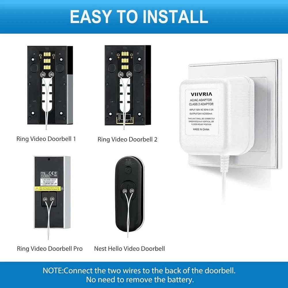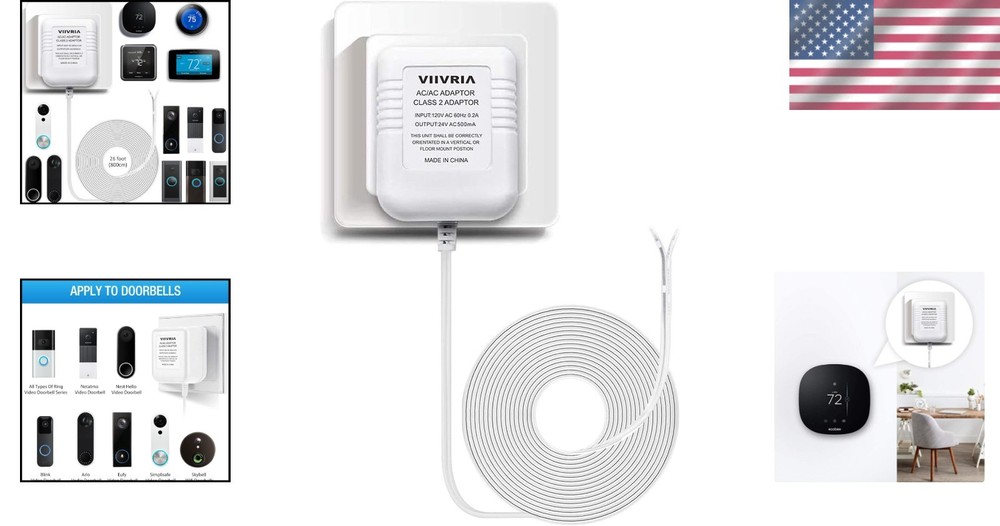 AC 24V Transformer & C Wire Adapter for Ring and Smart Thermostats, 8M Cable ‹ › ‹ › ‹ › ‹ › ‹ › ‹ › ‹ › ‹ › ‹ › ‹ › ‹ › AC 24V Transformer & C Wire Adapter -Designed for Ring and Smart Thermostats -8M Cable Length for Enhanced Flexibility Product Features: Compatible with popular smart thermostats including Nest (st/2nd Gen), Ecobee, Honeywell, and Sensi. Powers doorbells like Ring Video Doorbell, Ring Video Doorbell 2, Ring Video Doorbell Pro, Nest Skybell, and more. Constant AC 24-volt power ensures uninterrupted operation of your devices. Easy installation along walls from your outlet to the doorbell and thermostat, without the need for existing doorbell or complex wiring. 8M (35 inch) long cable eliminates distance concerns between the outlet and your Honeywell Smart Wifi Thermostat. Safe and certified battery backup, allowing you to charge directly from an outlet without removing your thermostat. AC output of 24V/500mA meets diverse powering needs efficiently. Why Choose Our AC 24V Transformer? Elevate your home connectivity and convenience with our AC 24V Transformer & C Wire Adapter. Designed with elegance and functionality in mind, this adapter provides seamless, safe charging for your smart thermostats and leading doorbell systems, ensuring you never miss a moment. Installation is a breeze, allowing you to set everything up in mere minutes. The generous 8M cable length offers flexibility and convenience, ensuring your devices have a steady power supply without the hassle of complicated setups. Our commitment to quality is underscored by a 80-day and dedicated customer support from a professional team specialized in transformer design and technology. Don't settle for less—experience the ultimate in smart home efficiency with our AC 24V Transformer & C Wire Adapter. Order yours today and transform your home's connectivity! Shipping Free & Fast Shipping - We offer free shipping to most of the USA with a normal delivery time of 3-7 days. However, due to the current situation, additional delivery time (up to 3 weeks) may be required for some items. Alternative Carriers - We may use alternative carriers (e.g. USPS, FedEx, UPS, etc.) to ensure your package arrives safely and on time. Due to the use of multiple carriers, we are unable to provide a tracking number automatically. Handling Time - Orders are processed and shipped within 1-2 business days of receiving cleared payment. Shipping Restrictions - Shipping to Alaska, Hawaii, Puerto Rico, Guam, and other US territories may incur shipping charges or delivery restrictions. Please contact us before ordering, or your order can be refunded/cancelled. State Restrictions - There may be restrictions based on your state of purchase. For example, certain items may not be shipped to California due to state regulations. Contact for Tracking Updates - If you require tracking updates or have any concerns about the delivery of your order, please feel free to contact us, and we will be happy to assist you. Return 30-Day Hassle-Free Returns - We want you to be completely satisfied with your purchase. If you are not, you can return the item within 30 days of receiving it for a full refund or exchange. Easy Return Process - To start a return, simply contact us and we will provide you with a prepaid return shipping label and detailed instructions. Restocking Fee - There are no restocking fees for returns. However, the buyer is responsible for return shipping costs if the return is not due to a seller's error. Refund Processing Time - Refunds will be processed within 5 business days of receiving the returned item in its condition. Payment We accept all major credit cards, PayPal, and Apple Pay for your convenience. Your payment information is secure and encrypted to ensure a safe and seamless transaction. Please complete your payment within 3 days of purchase to avoid any delays in shipping. Feedback Your feedback is extremely important to us. We strive to provide the best products and customer service possible. If you are satisfied with your purchase, please take a moment to leave us a positive review. If you have any concerns or issues with your order, please contact us before leaving negative feedback. We are committed to resolving any problems and ensuring your satisfaction. Contact Us If you have any questions or concerns, please feel free to out to our customer support team. You can contact us through the eBay messaging system. We are available Monday to Friday, 9:00 am to 5:00 pm EST, and we will do our best to respond to your inquiry within 24 hours. Buy it now and enjoy a pleasant shopping experience! Unit Quantity: 12.3 ounces Primary Current Rating: 0.5 A Secondary Current Rating: 24 Volt Transformer Number of Outlets: 1 Primary Voltage Rating (AC): 24 V Secondary Voltage Rating (AC): 24 V Type: Power Transformer Number of Phases: 1 Current Conversion: AC to AC Mounting Style: Wall Mount Item Height: 8 Centimeters