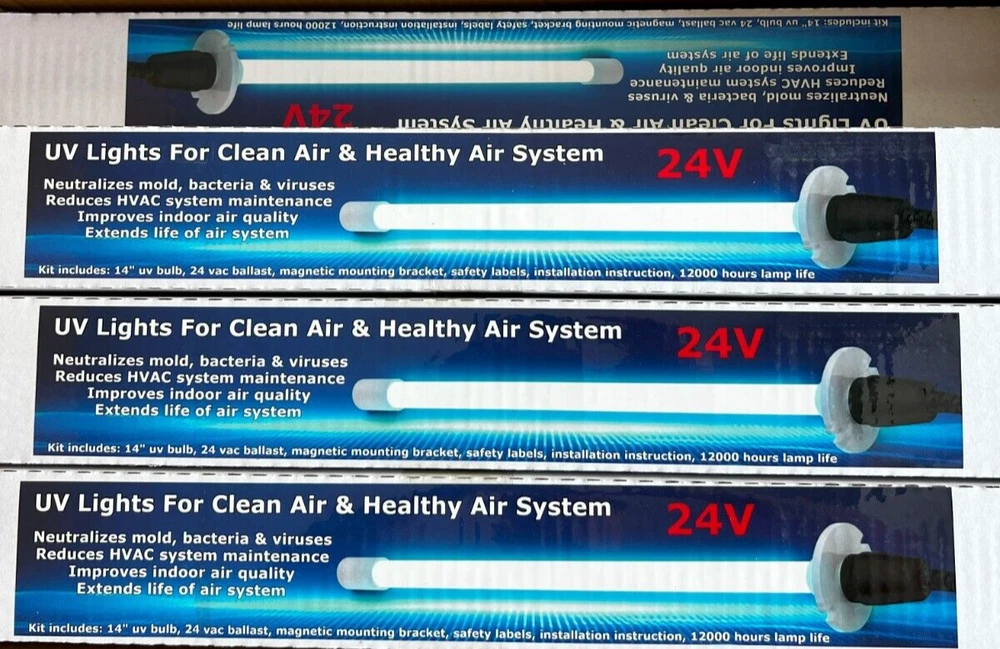 24V VOLTS POWER INPUT -Power supply! (needs to be hard wired to 24v transformer) 14" Uv light germicidal bulb Magnetic bracket for easy installation The most popular Germicidal UV Light system in the world because of its reliability, ease of installation, innovative features, and quality components Powerful UV-C light kills germs continuously in the air and on surfaces inside the air system Clean coils save energy and extend the life of air system Stock #170