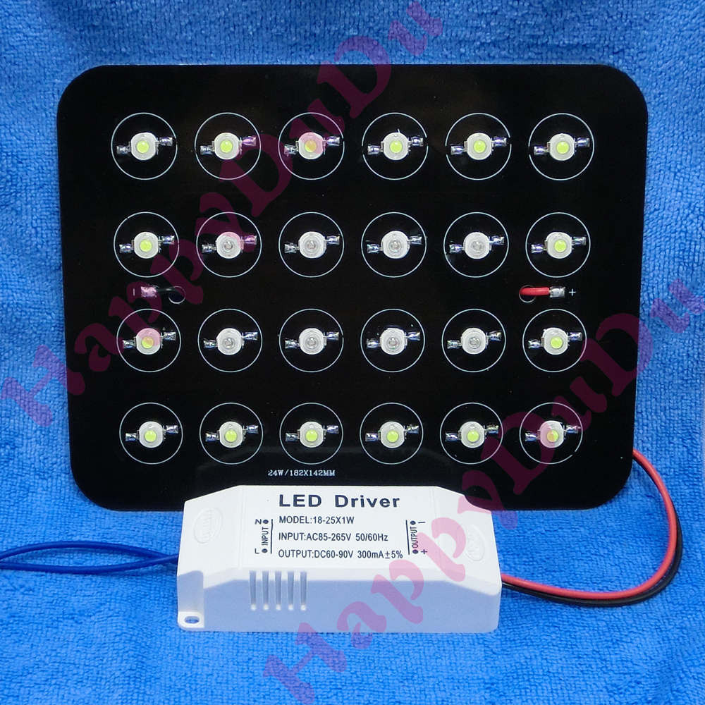 Dear friend, welcome to your visit. PS: Dear friend, if you need a tracking number, please choose to use Standard Int'l Shipping. Item Description: 24W High Power LED Lamp Light Bulb + Aluminum Base Plate PCB + AC Driver DIY KIT 100% New 24W LED PCB Fatures: PCB Size: (L)182 x (W)142 x (T)1.5mm LED Fatures: Light Color: Cold White / Royal Blue / Dark Red / Red / Green / Yellow / Purple / UV / Pink / Warm White Color Temperature: Cold White(10000~15000K) / Pure White(6000~6300K) / Warm White(3000~3200K) Wave Length: Royal Blue(450~455nm) / Deep Red(660nm) / Red(625~630nm) / Green(520~525nm) / Yellow(585~588nm) / UV(365~370nm) / Purple UV(395~400nm) / Full Spectrum (400~840nm) AC Driver Fatures: AC Input Voltage: 85V~265V DC Output Voltage: 60V~90V DC Output Current: 300mA Driver Size (without wire) : (L)95 x (W)40 x (H)25mm LED AC Dimming Driver for 18W: AC Input Voltage: 85V~265V DC Output Voltage: 36V~65V Driver Size (without wire) : (L)73 x (W)37 x (H)23mm Payment: Thank you for your understanding, we will only accept PayPal payments, you can use credit card through PayPal. Shipping service: l Items will be shipped after your payment is cleared. l Please make sure your PayPal address is accurate, we only ship the items to your PayPal address. l It is international shipping Service. ★ To USA: the shipping service is ePacket delivery by China Post, usually takes 7-15 business days from China to USA. ★ To other country: the shipping service is A or B . A . Economy Int'l Shipping (Hongkong Post), without tracking number, usually takes 12-28 business days from China to other country. B . Standard Int'l Shipping (Hongkong Post), with tracking number, usually takes 12-28 business days from China to other country. l We are happy to combine shipping on the same order, please contact us when you have finished your purchases. Contact us: l Dear buyer, we are very pleased to serve you, your satisfaction is my greatest happiness. l If you have any questions or if you are not satisfied with your purchasing, please contact us at anytime via eBay message. We will reply within 12 hours, We appreciate your patience and understanding, thank you very much.